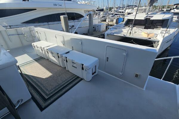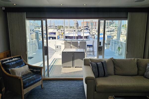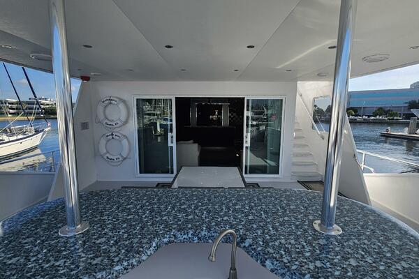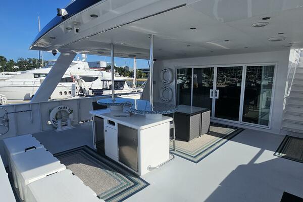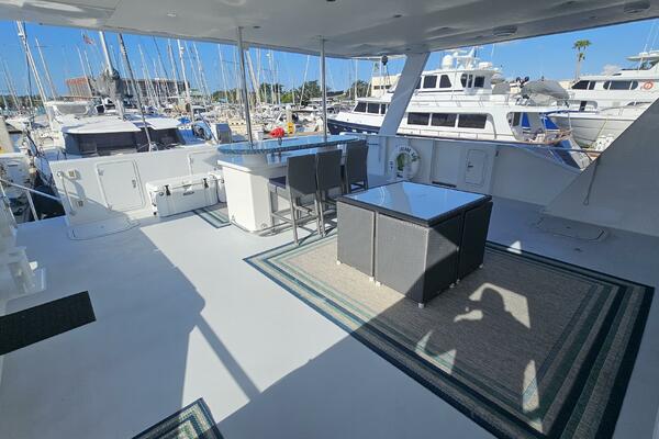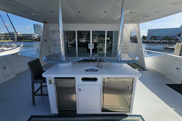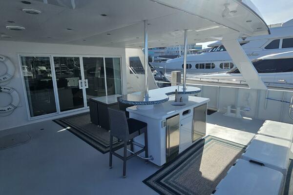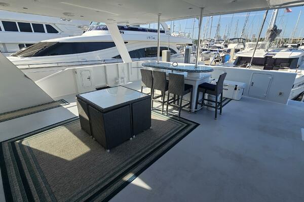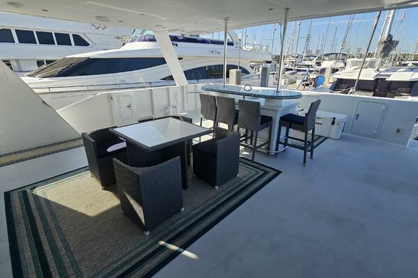 There is a jacuzzi on the aft swim platform and with 2 full wet bars outside on the flybridge and back deck, She will be sure to entertain your guest in style.