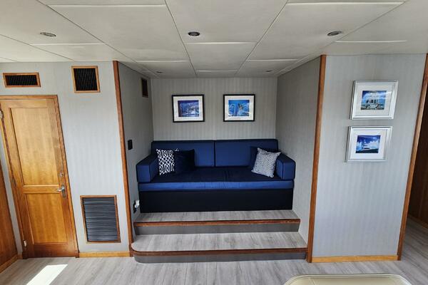 She has 4 staterooms with ensuite heads and also a main deck day head. There is also a large storage area that could be configured into a crew's quarters in the bow. It is currently used for storage of fishing equipment, redundant parts, toys, etc.