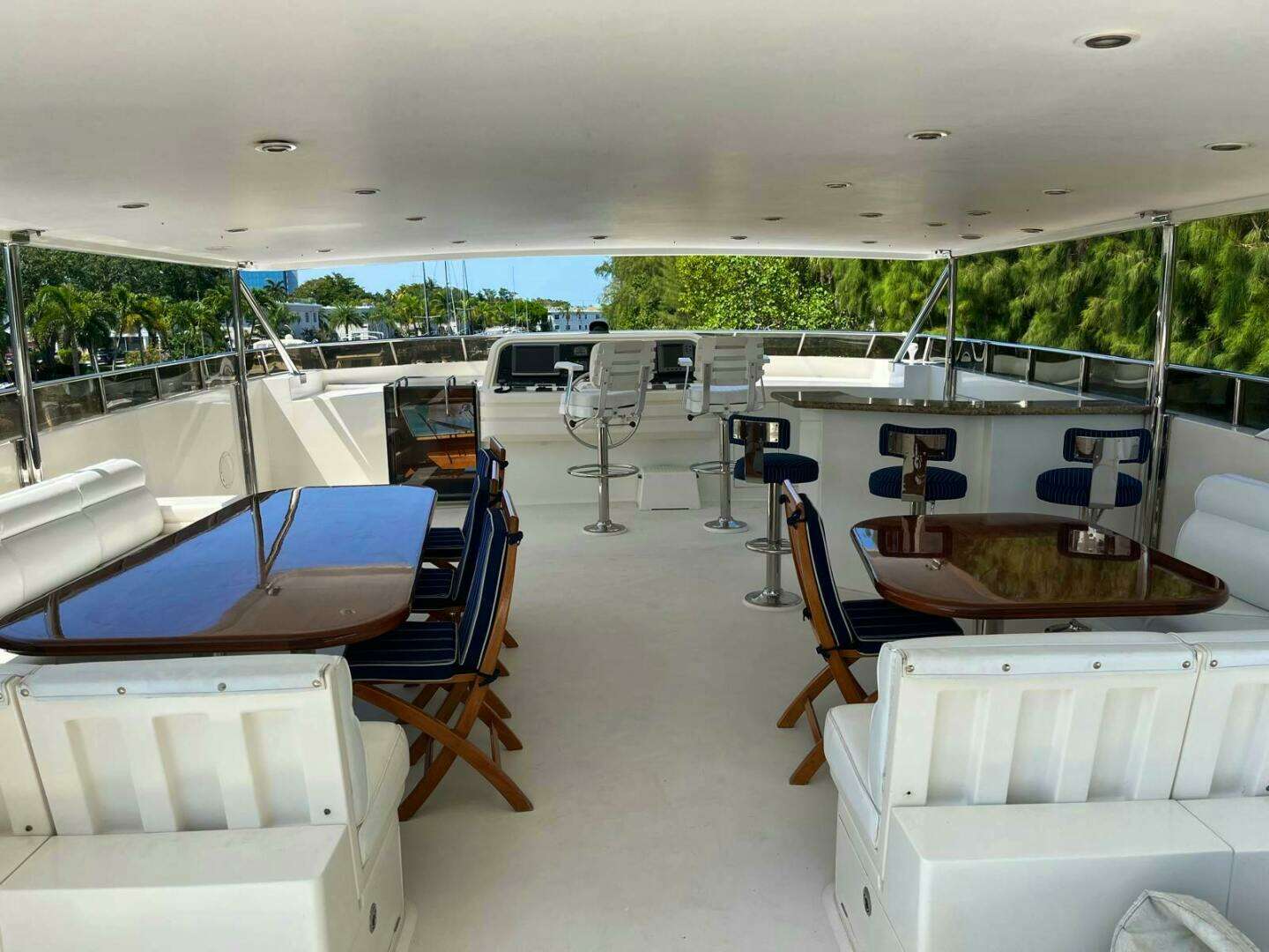 Staterooms are on the lower deck including a full beam master, VIP, twin berth stateroom and library with single berth and pullman.