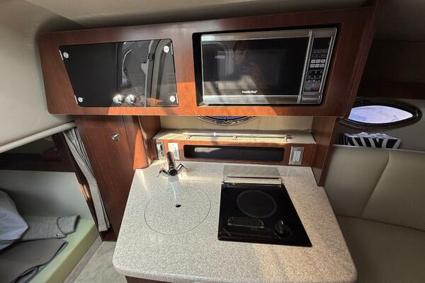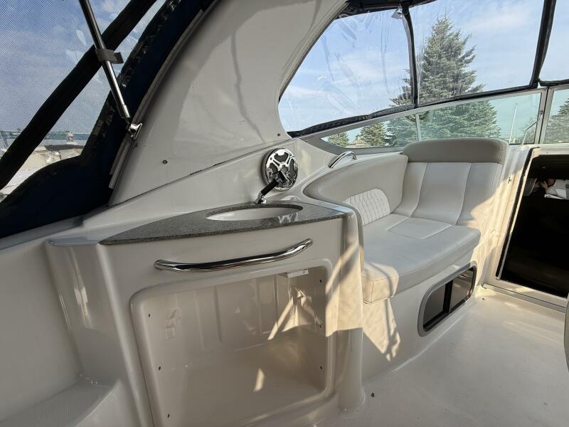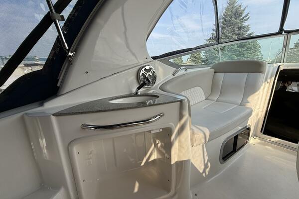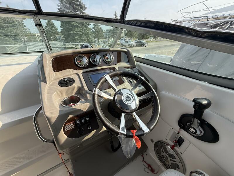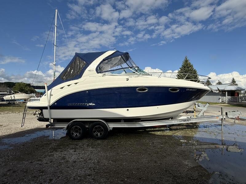 The Chapparal 270 makes an excellent option for those looking for a well-optioned trailerable boat. There are two cockpit seating options and a swiveling helm seat makes lounging or entertaining seamless. An integrated swim platform creates a seamless look. The cabin has sleeping for four, a well-appointed galley, and AC/Rev. cycle heat makes this a great option.