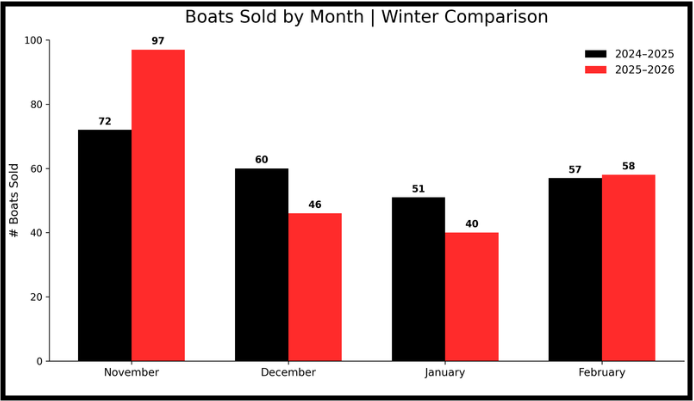 We tracked brokerage data across Canada to understand how the market is evolving heading into the 2026 boating season. Comparing this winter (Nov–Feb) to the previous, analyzing hundreds of Canadian brokerage sales - a few trends are becoming clear: