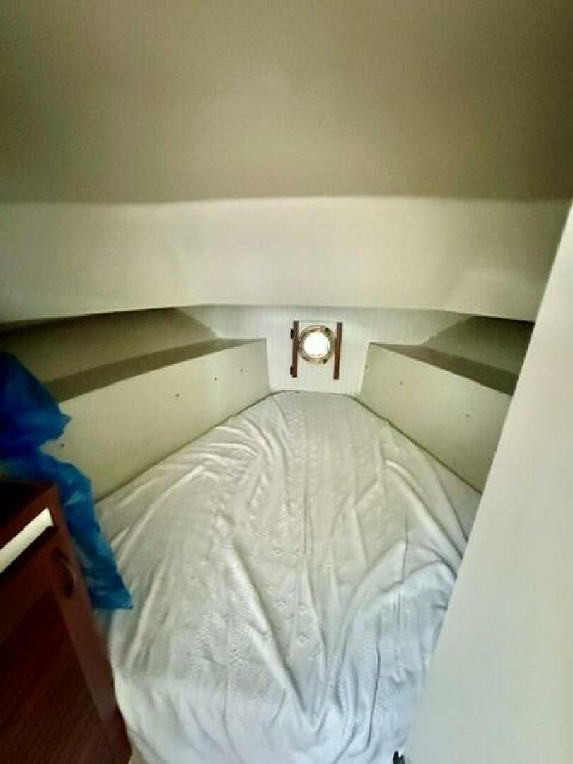 A popular model for Stamas, the 32 Sport Fisherman is a sturdy flybridge fishing boat with a roomy cockpit and practical cabin accommodations. She’s built on a solid fiberglass modified-V hull with moderate beam, and a well-flared bow makes for a dry ride in a chop. With the lower helm open to the cockpit, the layout of this boat is ideal for anglers (although a sliding glass bulkhead enclosure was optional). A dinette opposite the helm is a convenient place to get out of the sun, and down below there’s a small galley to port and a head with a sink and shower opposite. Lockers separate this space from the forward stateroom with its long V-berth. The cockpit is large enough to accommodate a full-size fighting chair, and the side decks are about as wide as you’ll ever see on a boat this size. Topside, the bridge controls are well aft affording a clear view of the cockpit. Additional features include a vented windshield, bridge seating for three, and good engine access. Several engine options were offered over the years. Among the most popular, a pair of 260hp gas inboards cruise the Stamas 32 at 18 knots (about 27 knots top), and larger 330hp gas engines cruise in the low 20s and top out at 30+ knots.