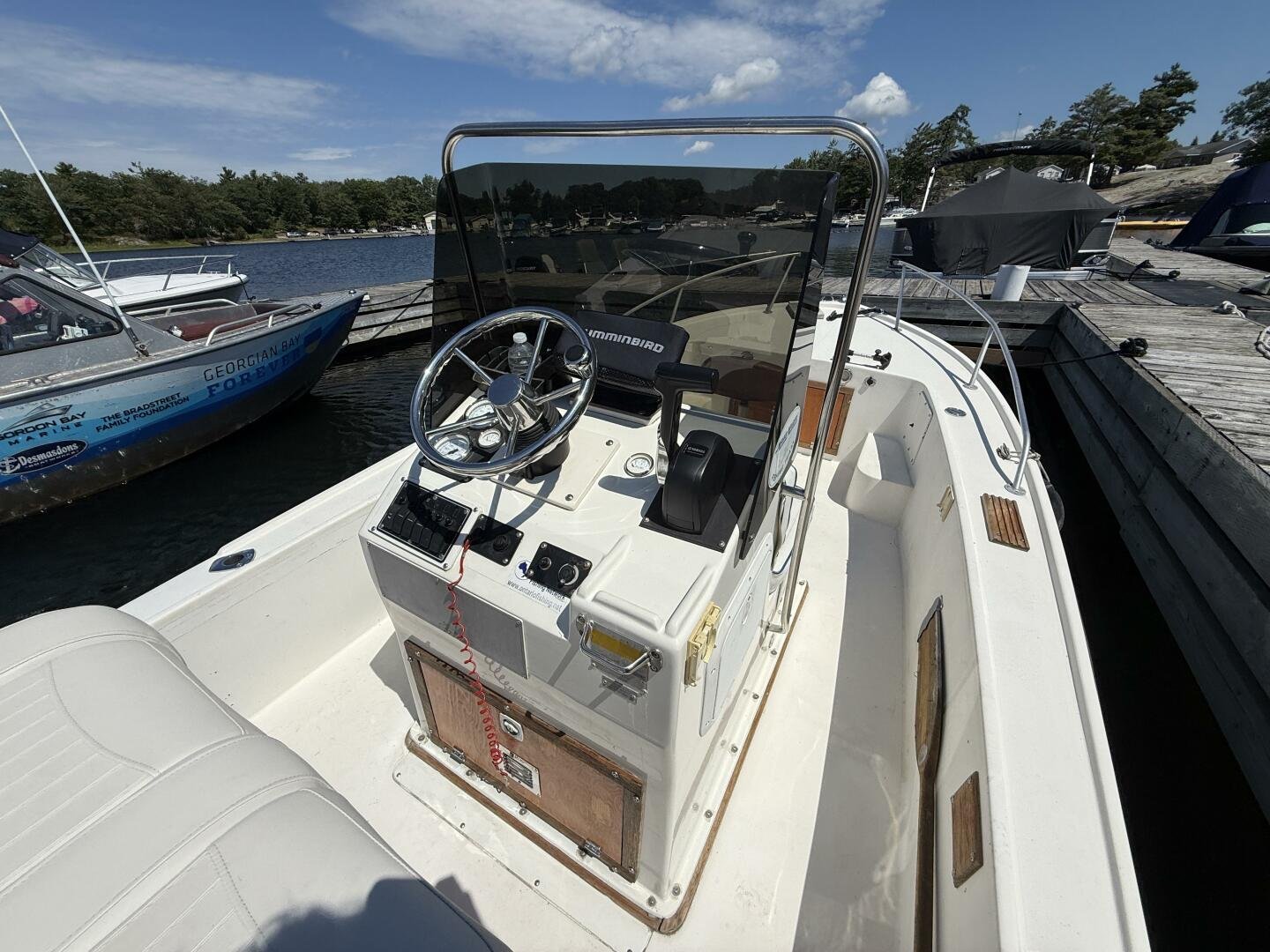 This 1983 Mako 17 has been re-rigged and repowered with a Yamaha 115 Vmax. This small centre console makes a great cottage runabout, transporter, or fishing boat!