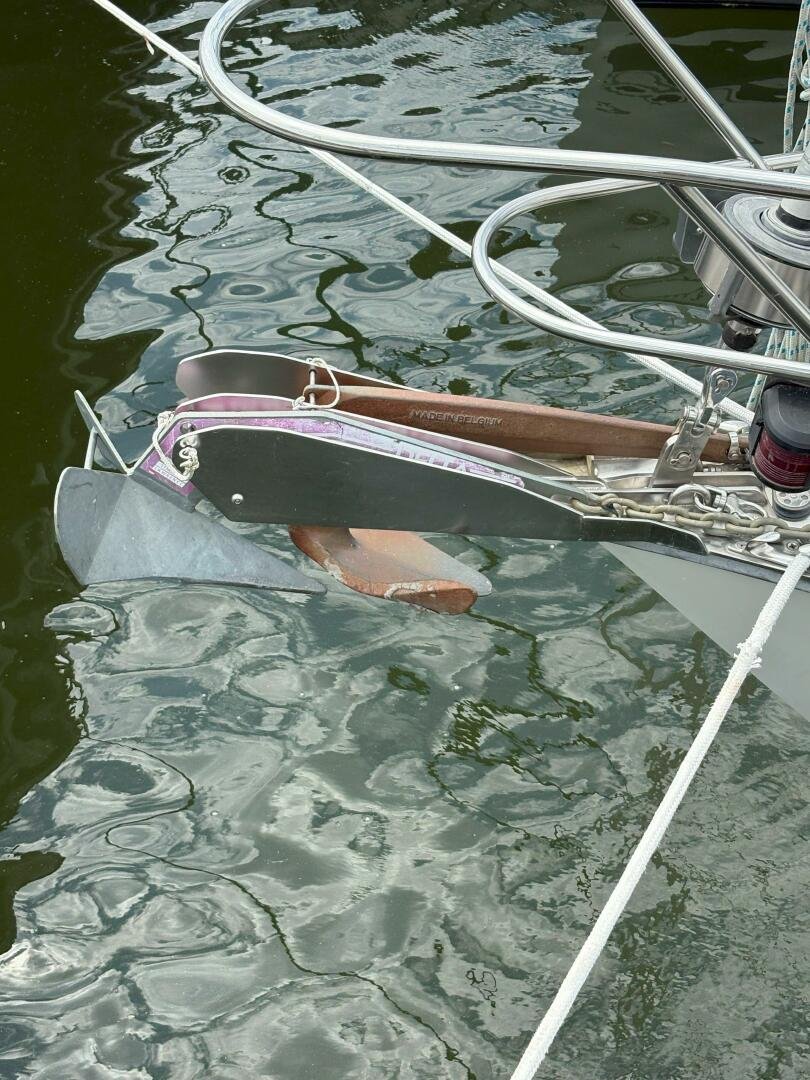 Bow & stern rails with double lifelines & gates. Teak dorade boxes with stainless cowl vents & guards. Large anchor locker with vertical capstan power anchor windlass. Custom anchor roller. All lines led aft through line stoppers to 4 2 speed winches. (1 is self tailing) Self tailing oversized primary winches. Harken battcar mainsail system. Rigid boom vang. Triple spreader rig. Hydraulic backstay adjuster.