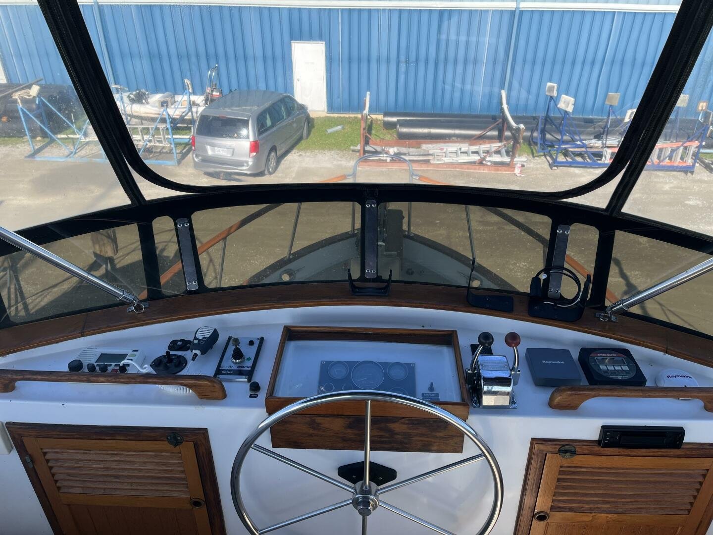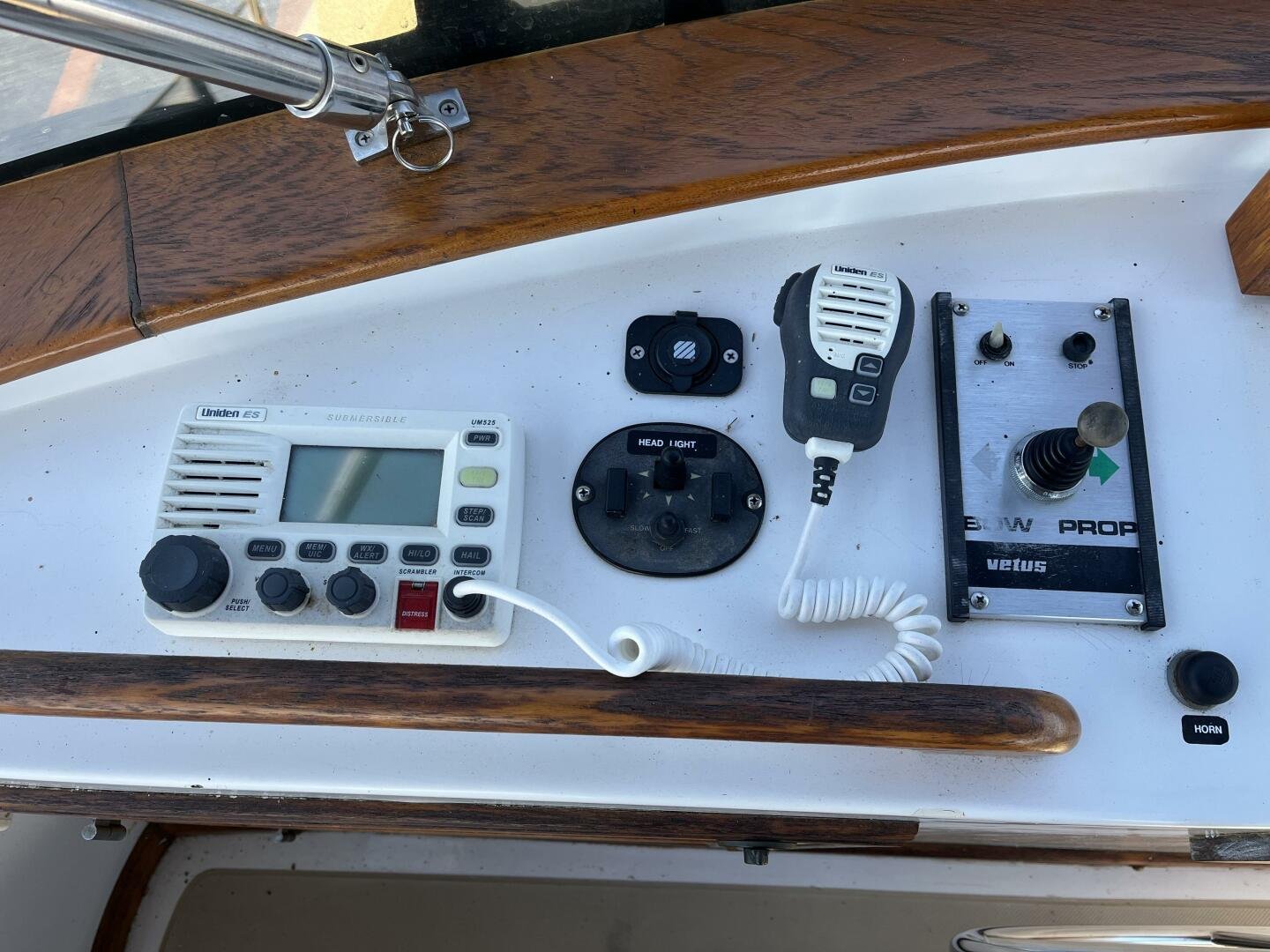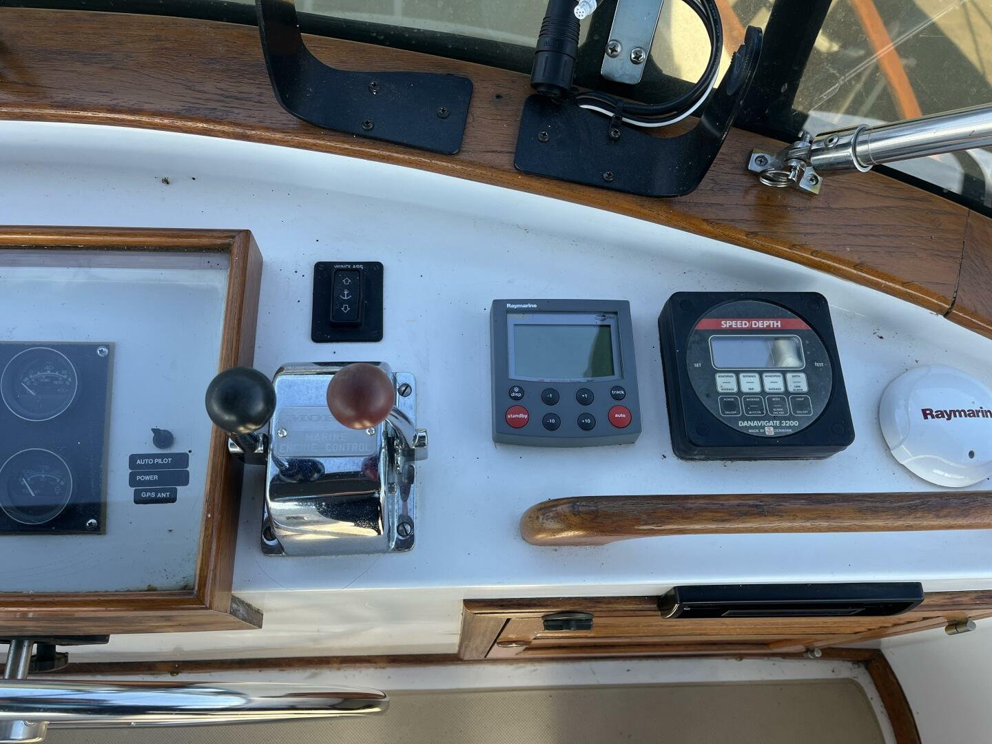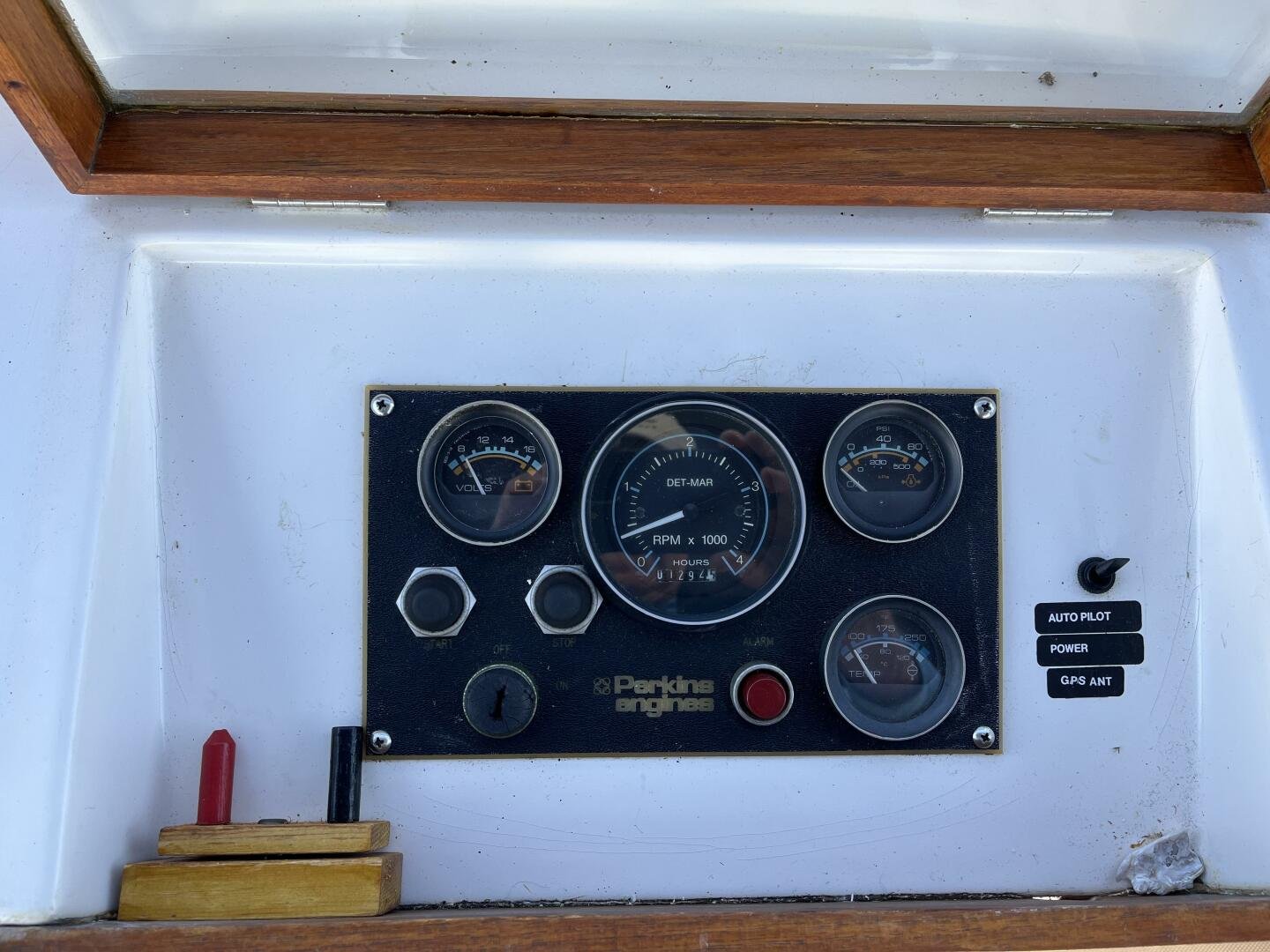 There are 8 deep cycle house batteries-1 bank for the fridge, & 1 bank for the house. The engine & generator have their own starters. Marine battery charger hooked up through shore power. Dana plus speed & depth finder. Original radar. Autohelm dual station 6001 autopilot. Updated GPS plotter. Dual station VHF radios. Compass. Loud hailor.
