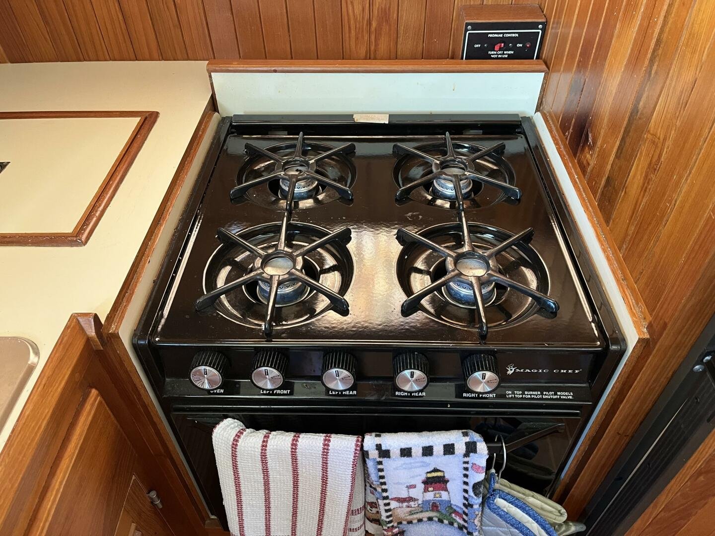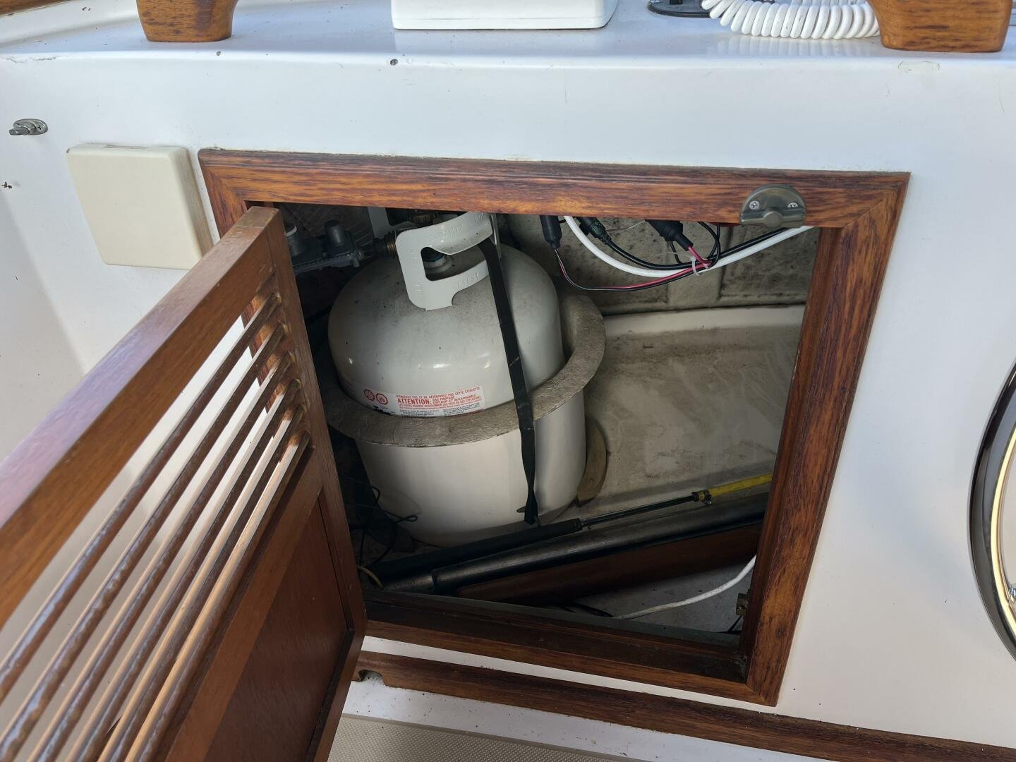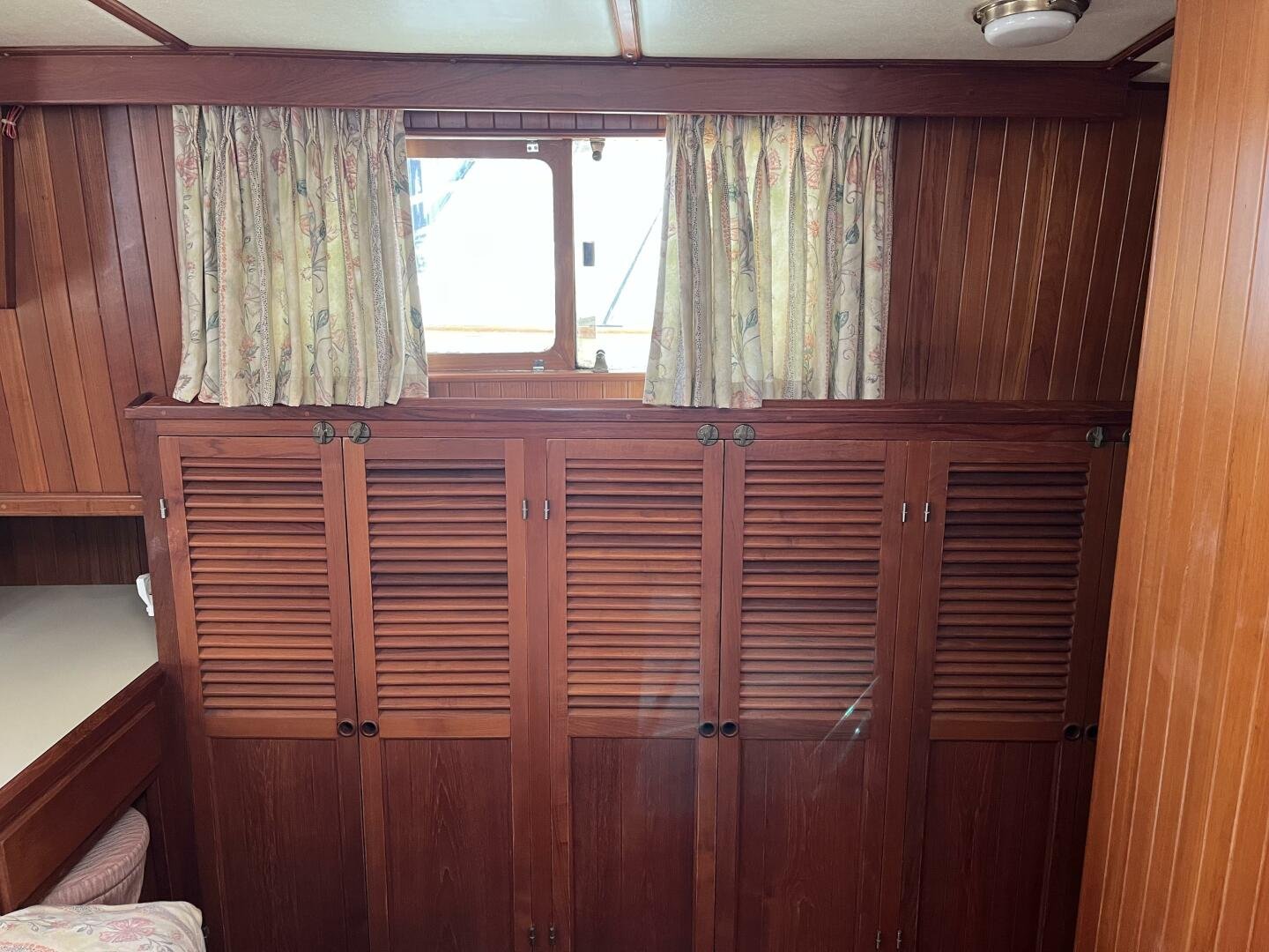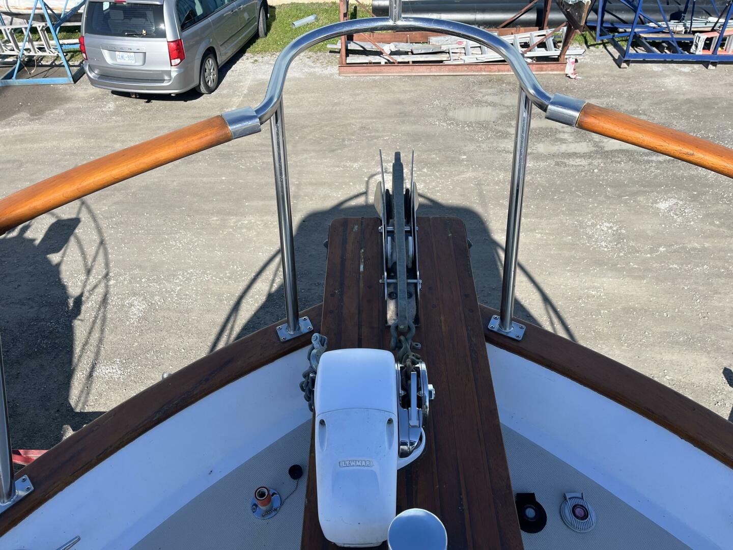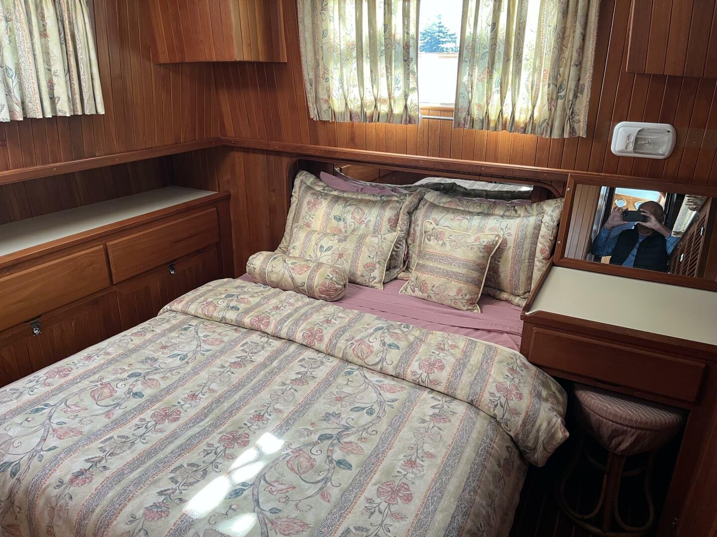 There are 8 deep cycle house batteries-1 bank for the fridge, & 1 bank for the house. The engine & generator have their own starters. Marine battery charger hooked up through shore power. Dana plus speed & depth finder. Original radar. Autohelm dual station 6001 autopilot. Updated GPS plotter. Dual station VHF radios. Compass. Loud hailor.