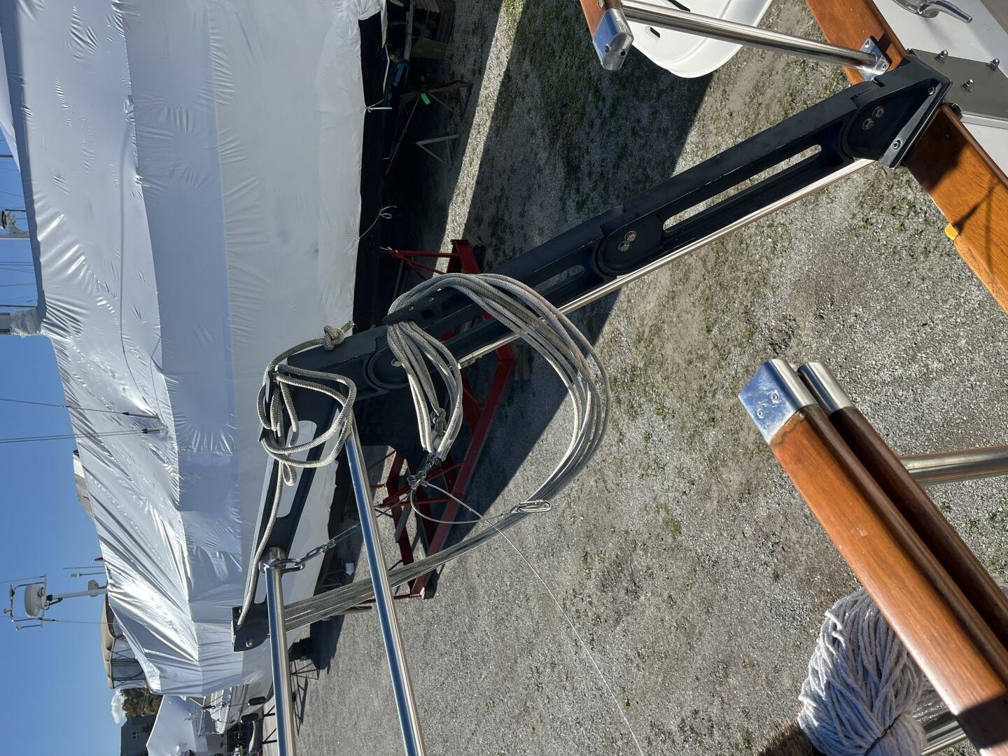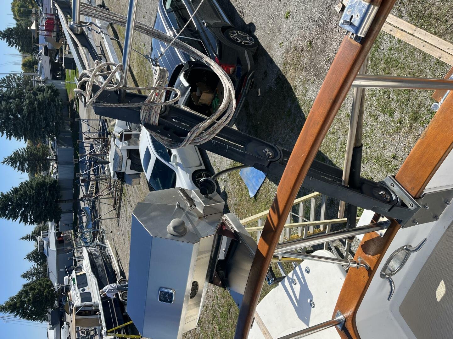 15 KG plow anchor with 100M of chain. Spare 10KG plow anchor. Lewmar windlass. 10'Zodiac with 10hp Mercury outboard. The davits were reinforced to carry the dinghy & motor safely. Propane BBQ. Safety gear