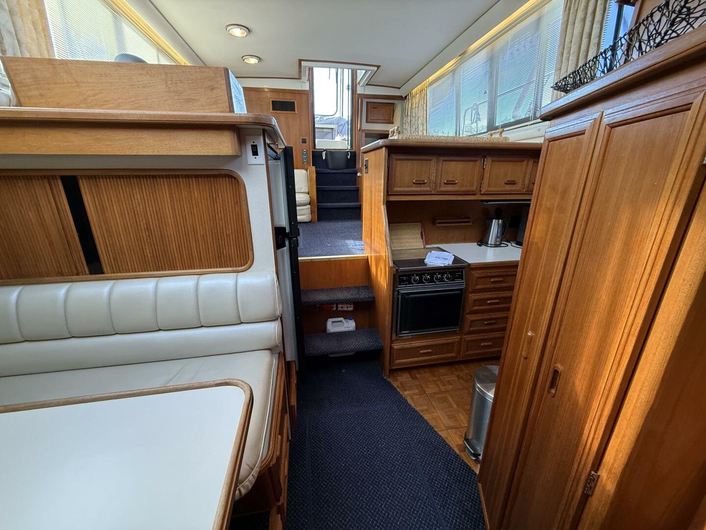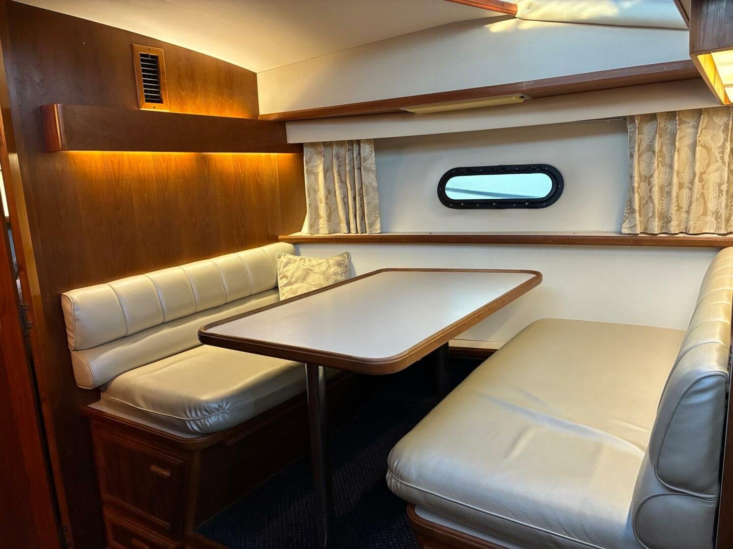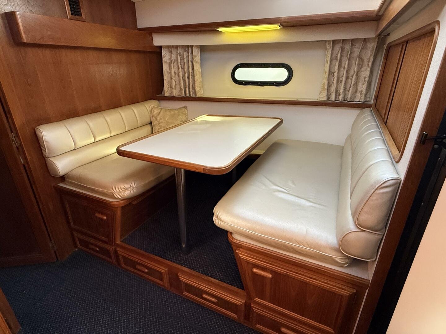 Dinette: Newer upholstery with comfortable seating for four. Converts to a double berth, expanding the boat’s sleeping capacity.