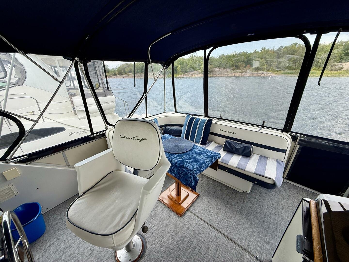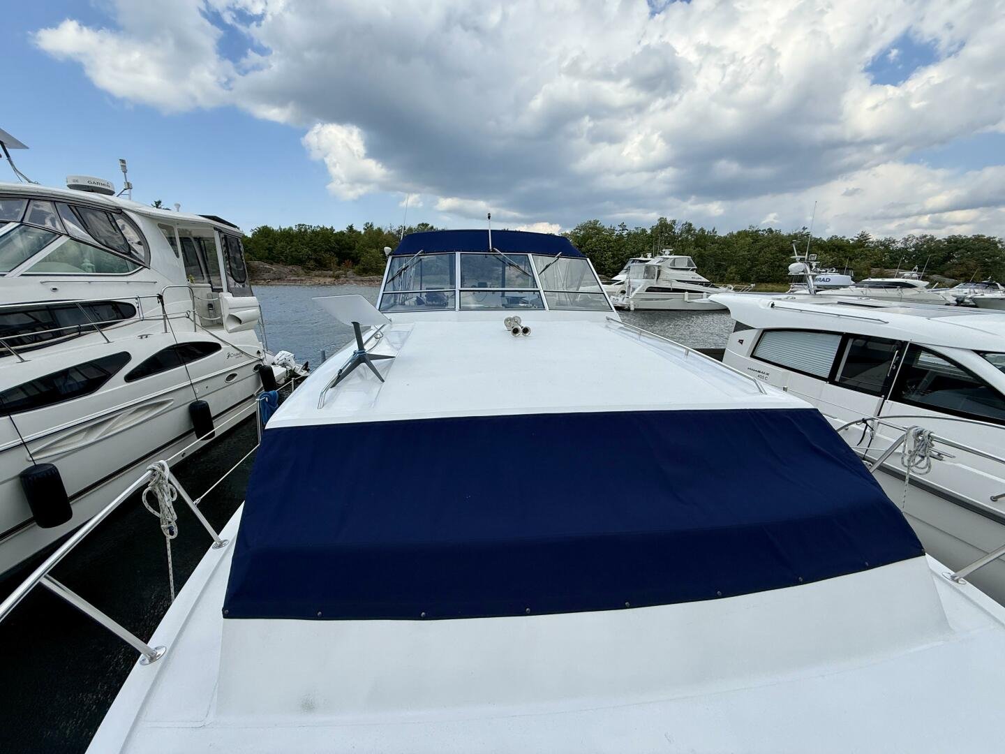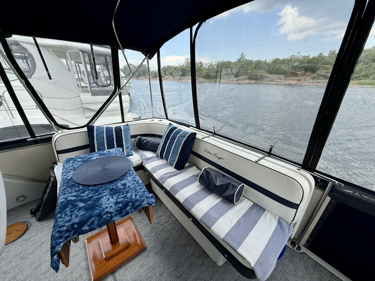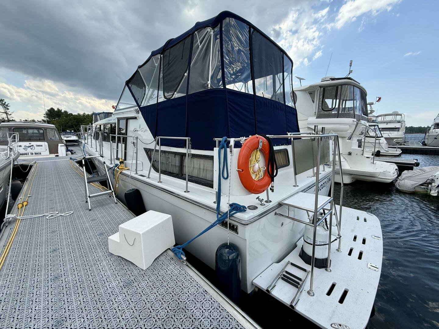 The Chris-Craft 381 Catalina is well built motor yacht, with a fantastic layout for cruising or living aboard. This example has been well-maintained and upgraded over the years, truly showing the pride in ownership. An extended swim platform with custom stairs leads to a great cockpit with a new full canvas enclosure and fridge. Down below you have a spacious salon with a built-in bar. The forward cabin features an en-suite head, while the aft boasts a full king walkaround, plenty of storage, and an en-suite head with a separate shower + tub.