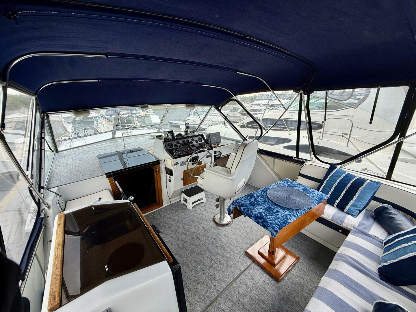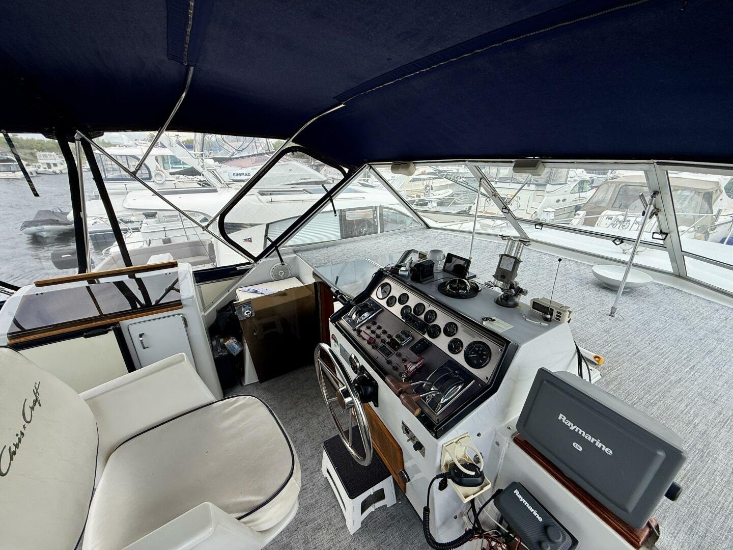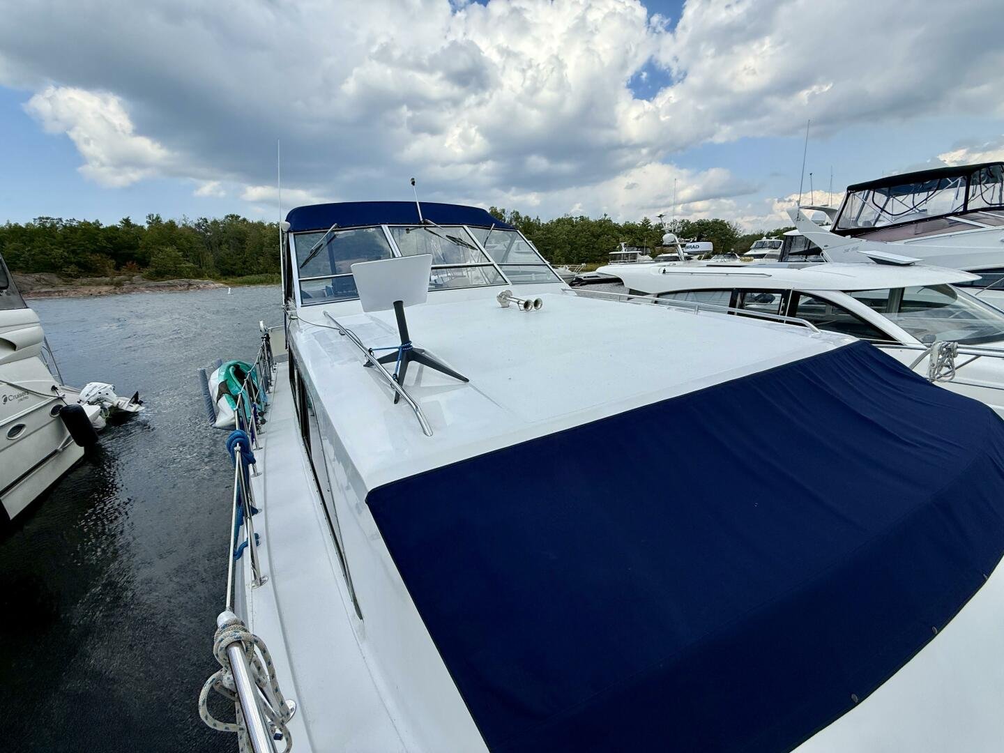 The Chris-Craft 381 Catalina is well built motor yacht, with a fantastic layout for cruising or living aboard. This example has been well-maintained and upgraded over the years, truly showing the pride in ownership. An extended swim platform with custom stairs leads to a great cockpit with a new full canvas enclosure and fridge. Down below you have a spacious salon with a built-in bar. The forward cabin features an en-suite head, while the aft boasts a full king walkaround, plenty of storage, and an en-suite head with a separate shower + tub.