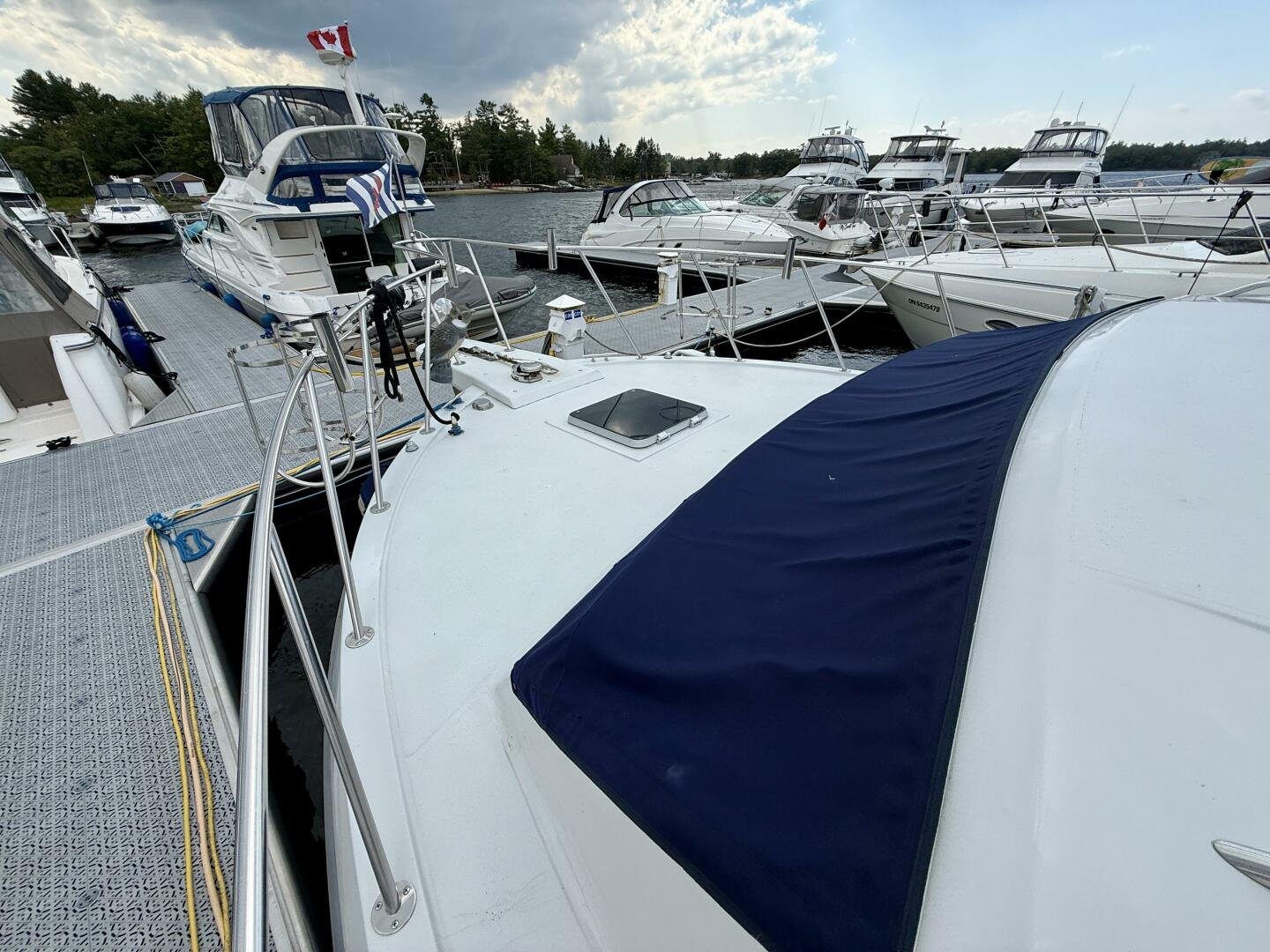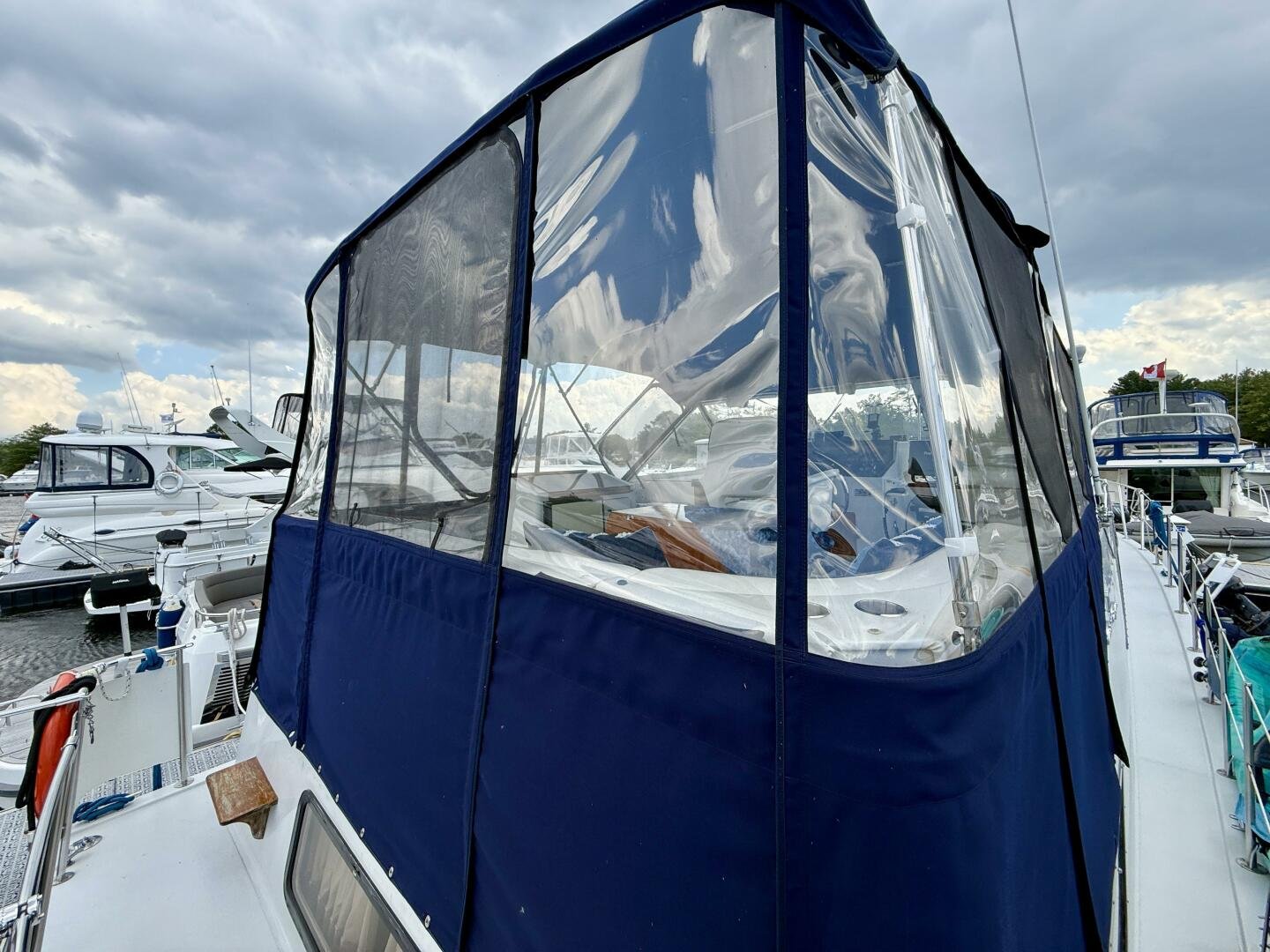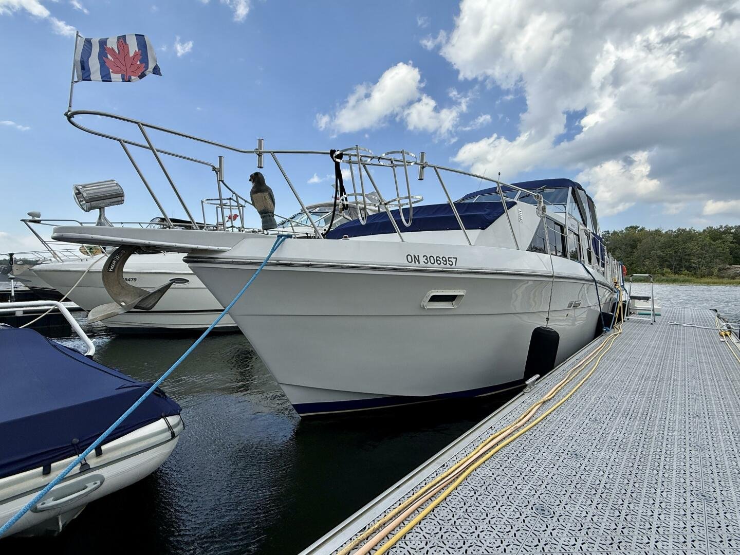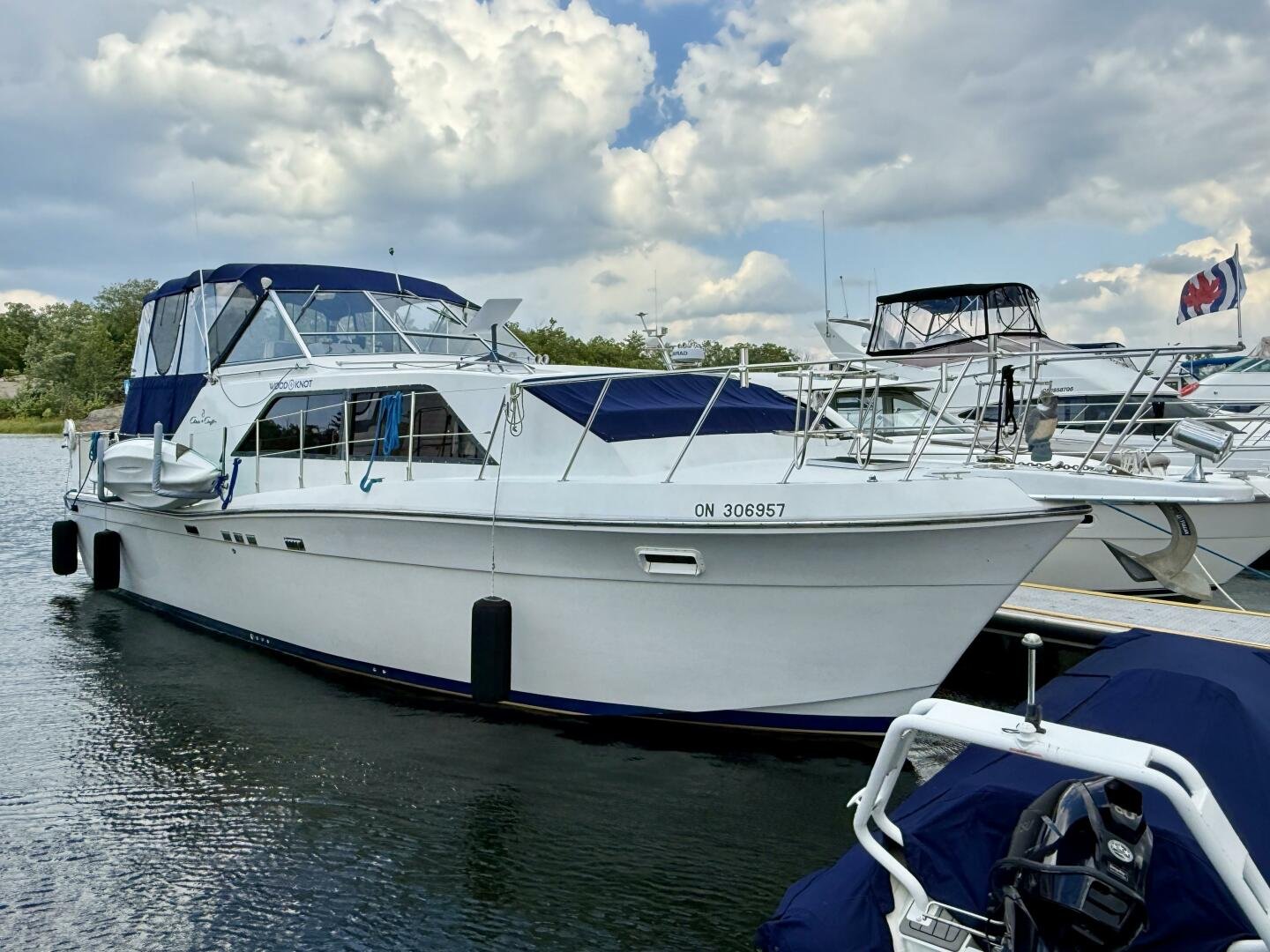 The Chris-Craft 381 Catalina is well built motor yacht, with a fantastic layout for cruising or living aboard. This example has been well-maintained and upgraded over the years, truly showing the pride in ownership. An extended swim platform with custom stairs leads to a great cockpit with a new full canvas enclosure and fridge. Down below you have a spacious salon with a built-in bar. The forward cabin features an en-suite head, while the aft boasts a full king walkaround, plenty of storage, and an en-suite head with a separate shower + tub.