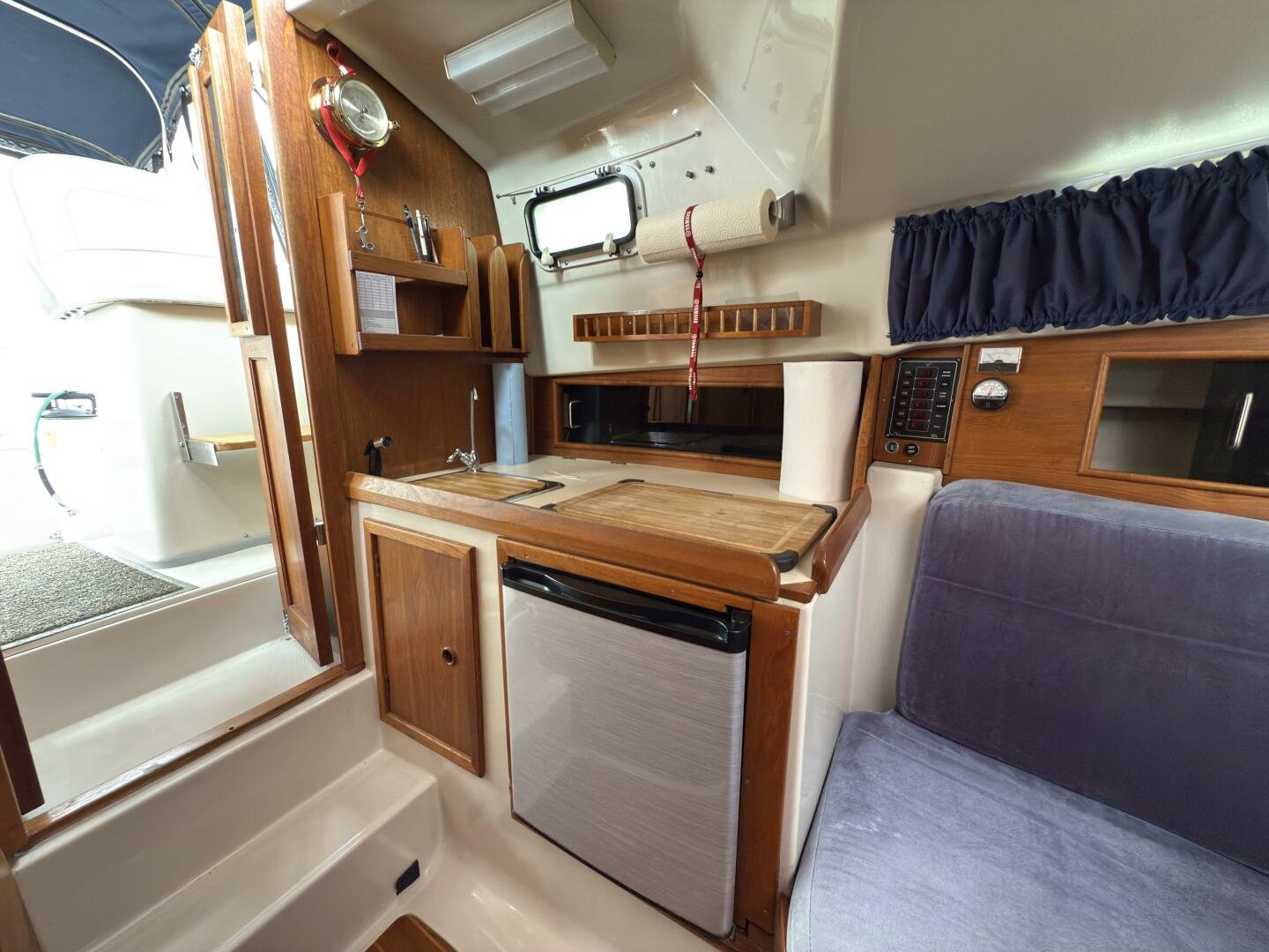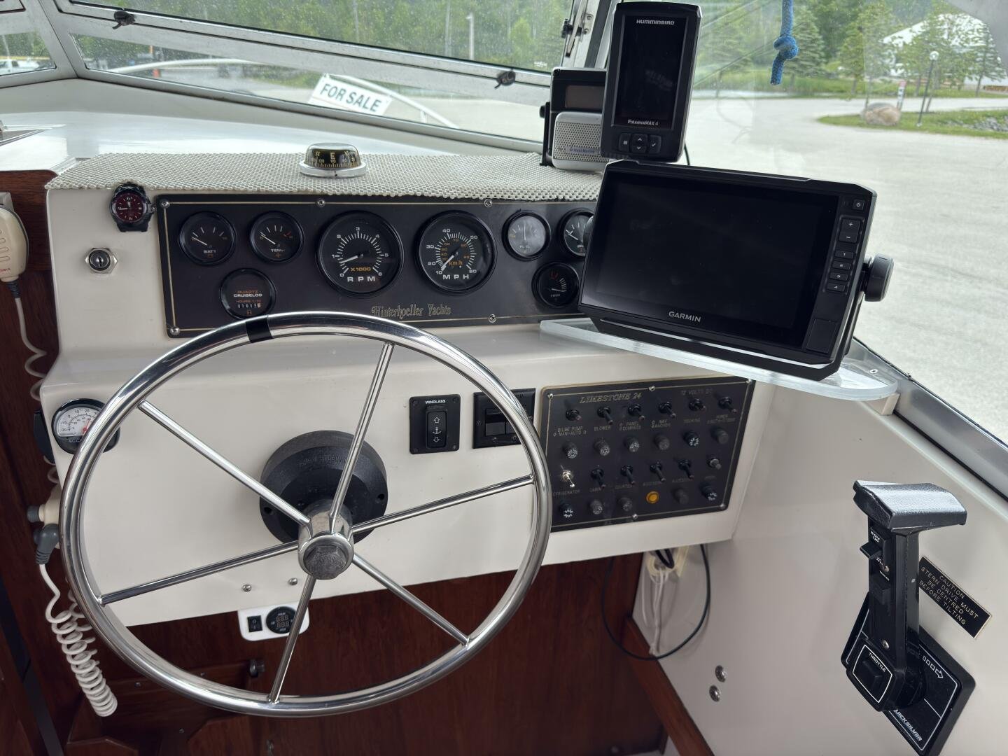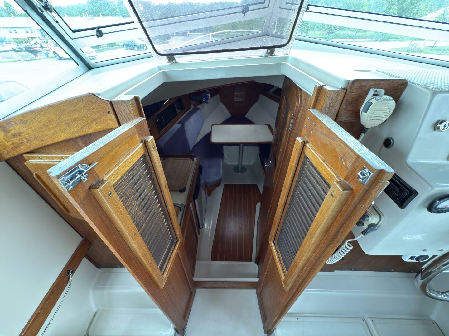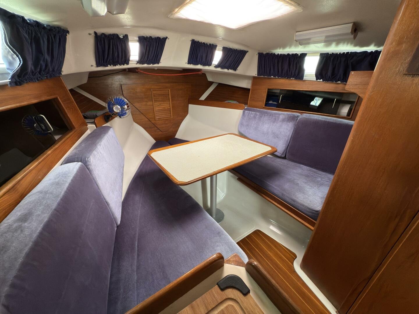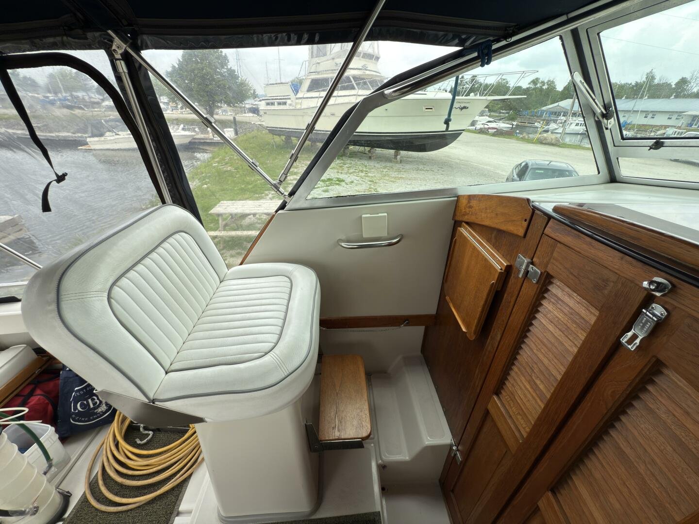 This particular boat has been lovingly maintained and it shows — the gelcoat, canvas, upholstery, and overall condition present very well inside and out.