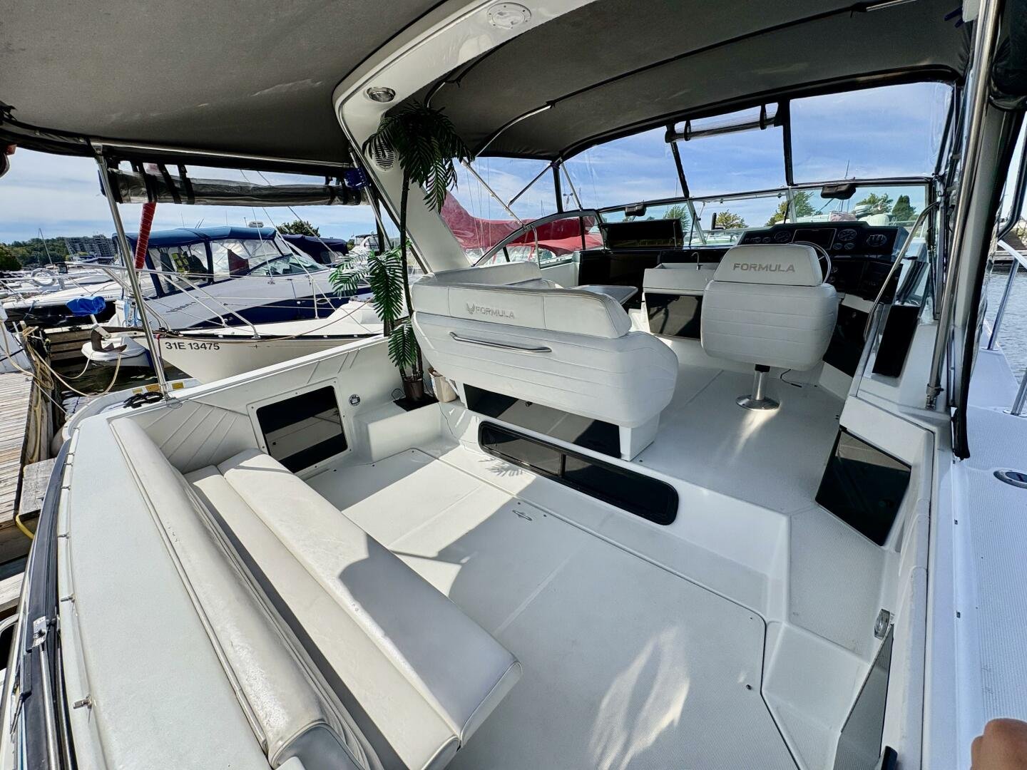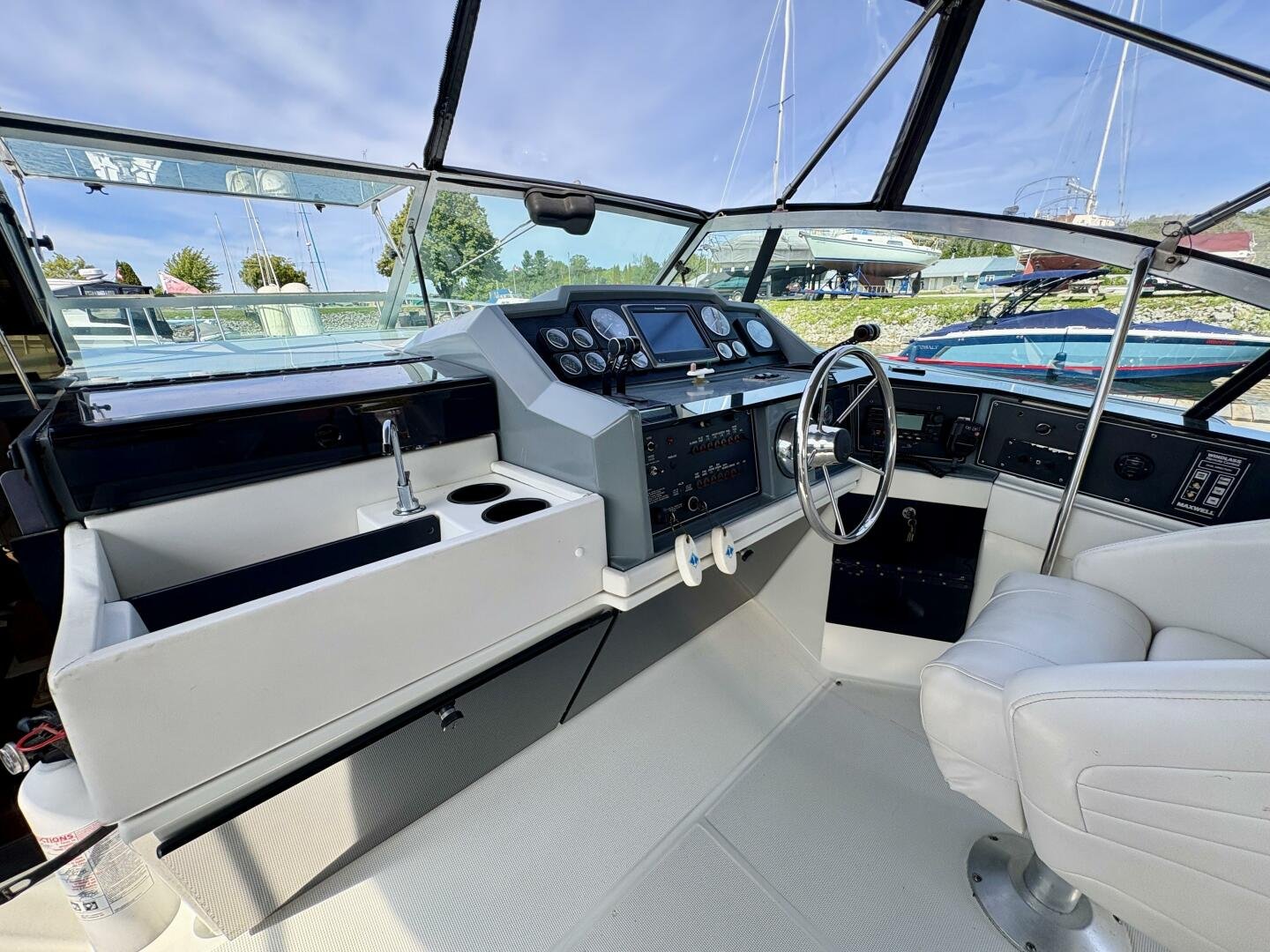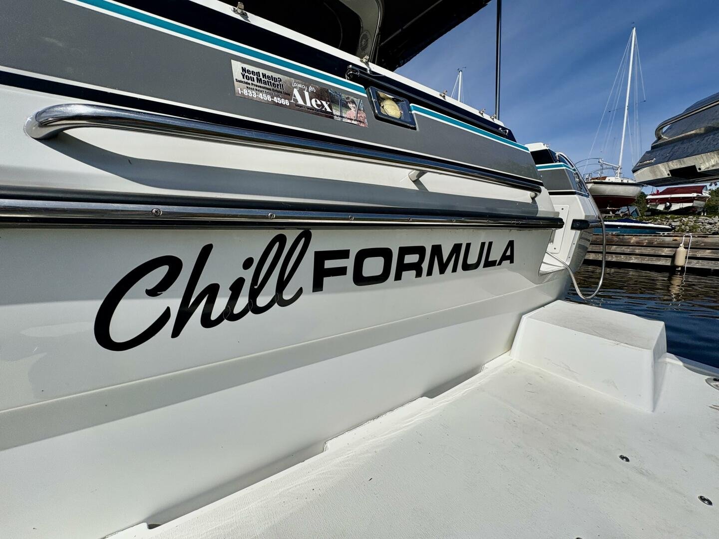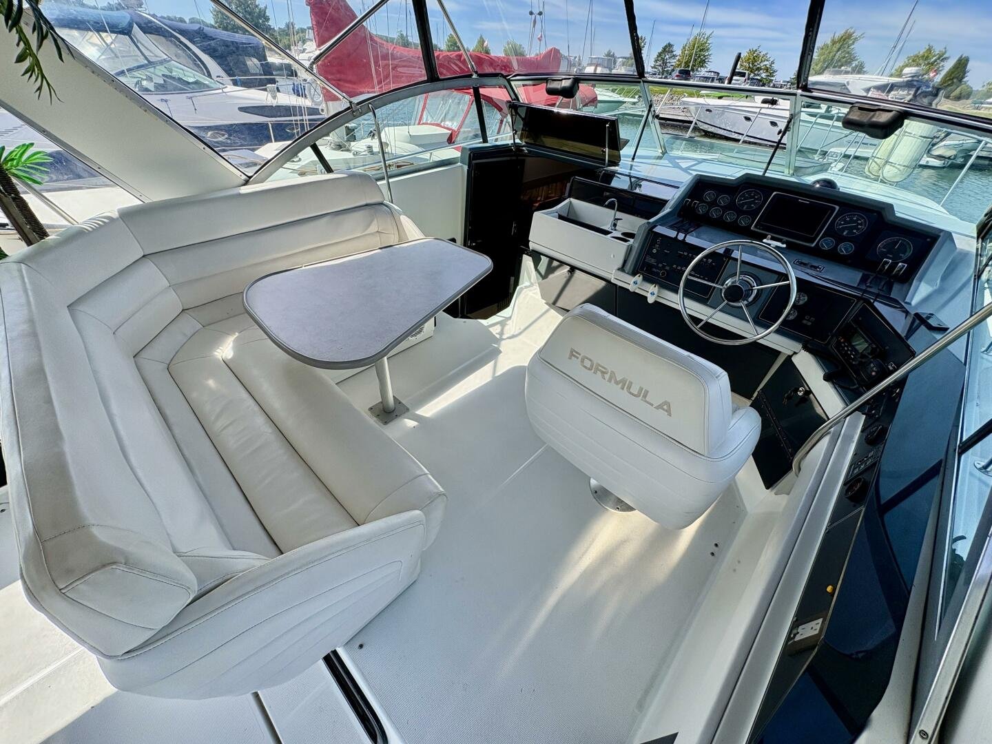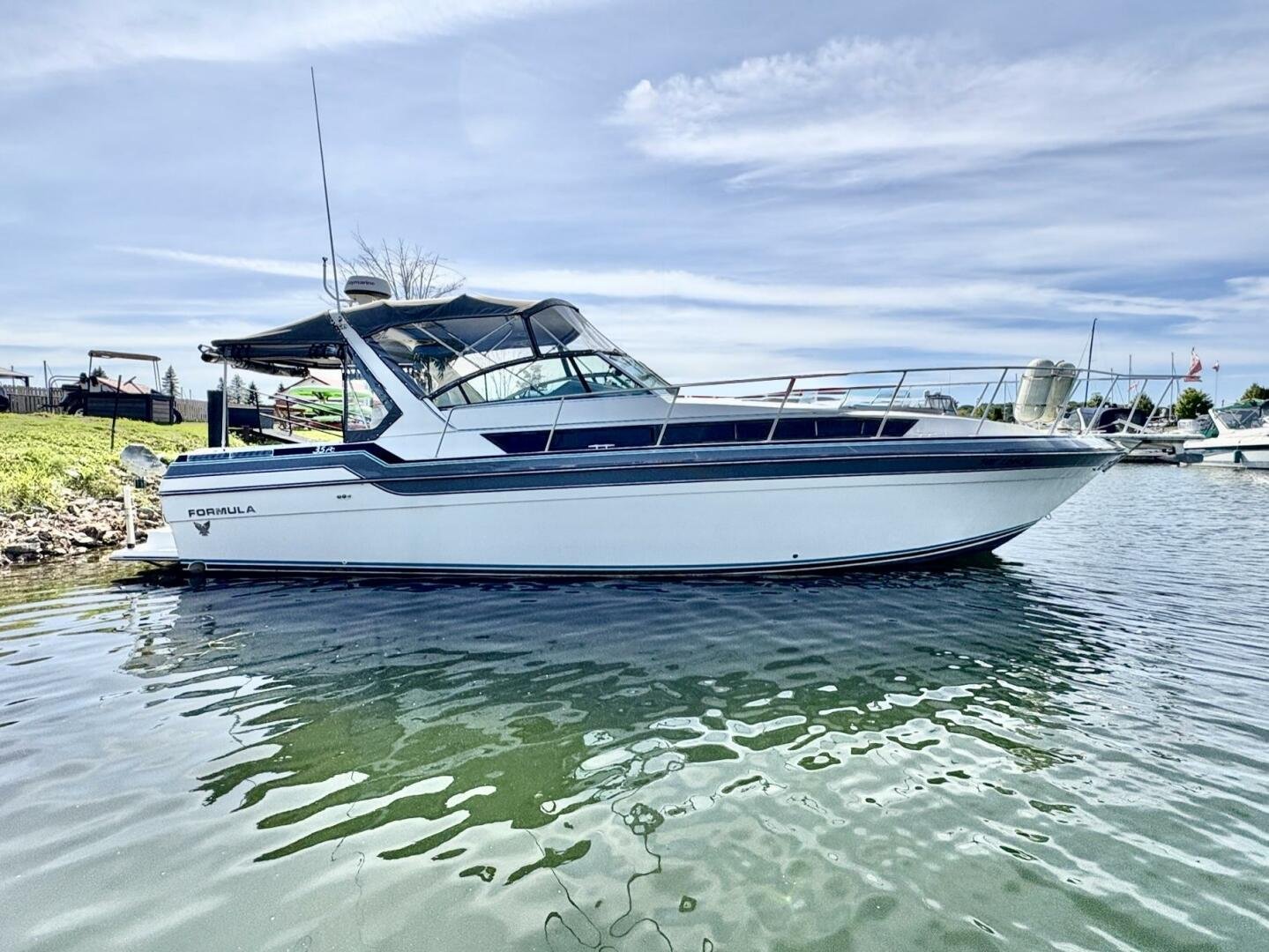 This 1989 FORMULA has been extremely well cared for with many updates over the years including; A custom made cherry wood interior, Newer canvas with full camper back and bow sun pad done by Canadian Yacht Tops, 10kg plow anchor with Maxwell windlass and 200ft of chain, Vacuflush head with custom built STAINLESS STEEL holding tank, NEW 16k BTU Dometic air-conditioner, NEW cockpit upholstery, NEW Raymarine 9" aSeries Touch-Screen, NEW Raymarine Quantum Digital Radar, NEW Standard Horizon VHF, Carburetors rebuilt, NEW stereo, speakers and amps.