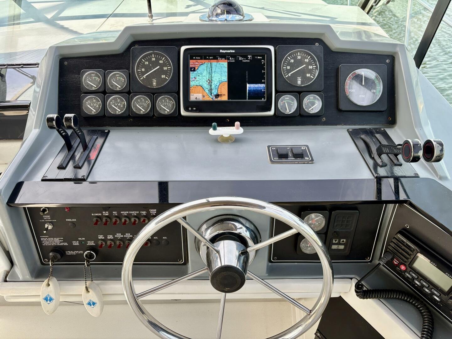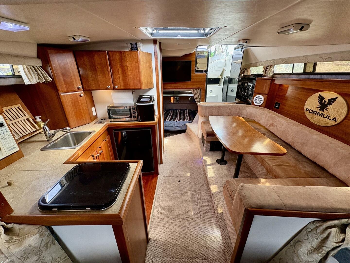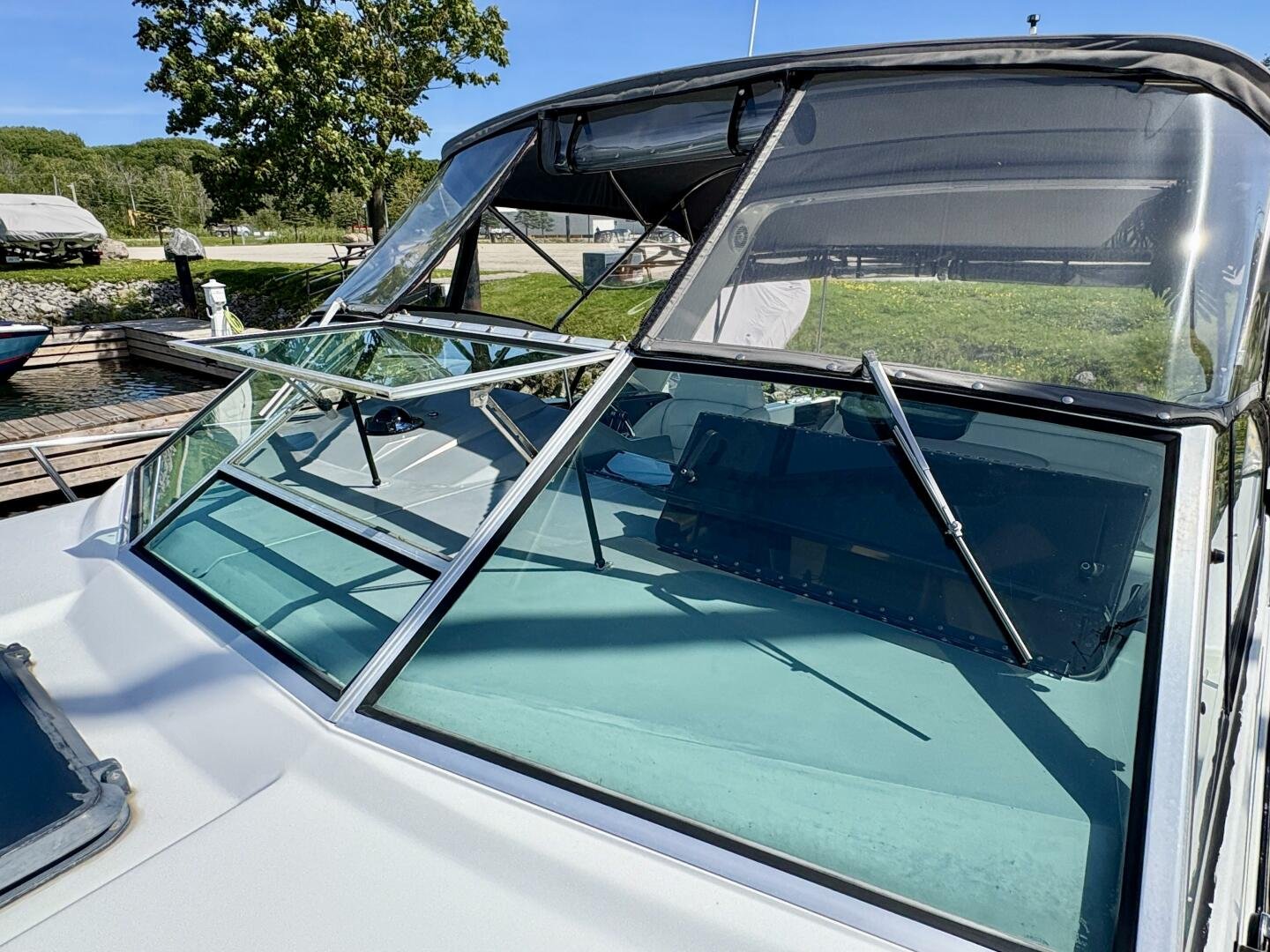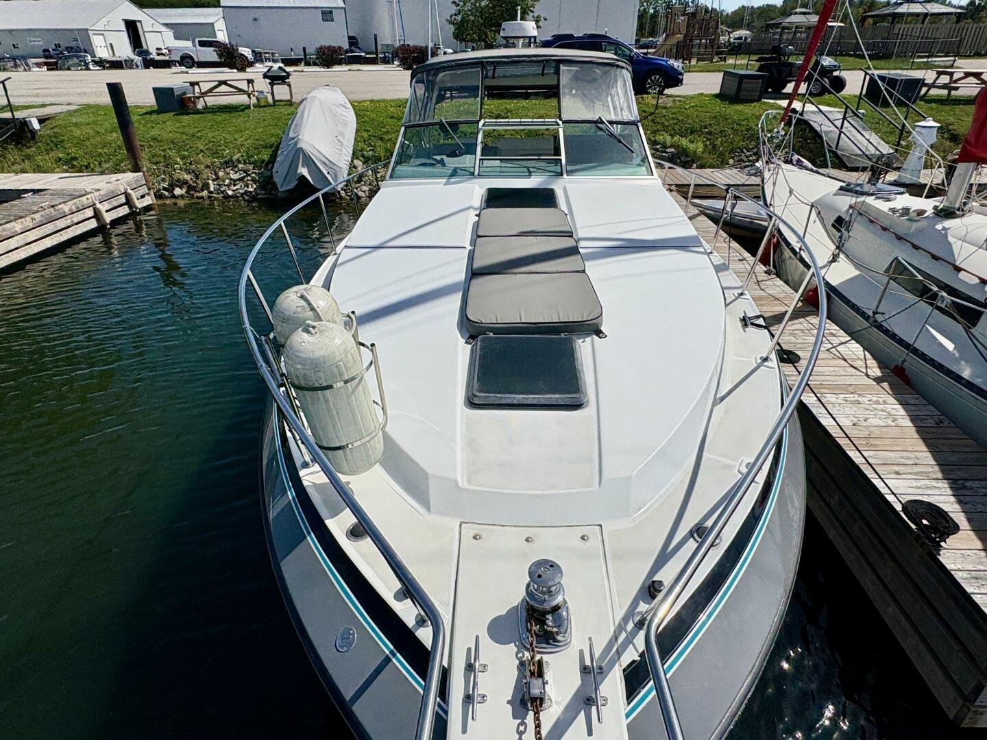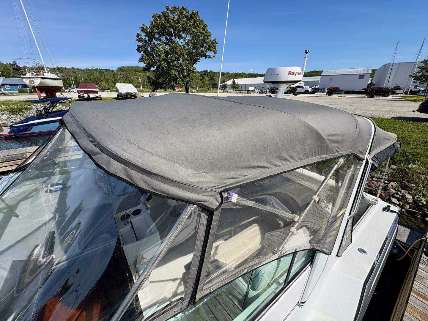 This 1989 FORMULA has been extremely well cared for with many updates over the years including; A custom made cherry wood interior, Newer canvas with full camper back and bow sun pad done by Canadian Yacht Tops, 10kg plow anchor with Maxwell windlass and 200ft of chain, Vacuflush head with custom built STAINLESS STEEL holding tank, NEW 16k BTU Dometic air-conditioner, NEW cockpit upholstery, NEW Raymarine 9" aSeries Touch-Screen, NEW Raymarine Quantum Digital Radar, NEW Standard Horizon VHF, Carburetors rebuilt, NEW stereo, speakers and amps.