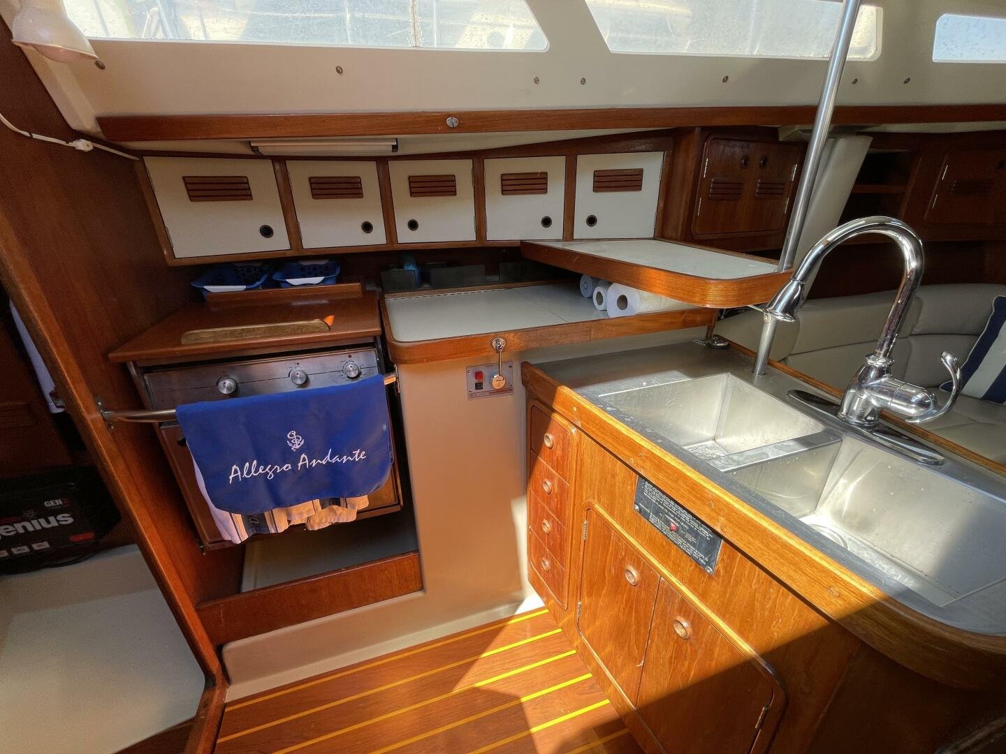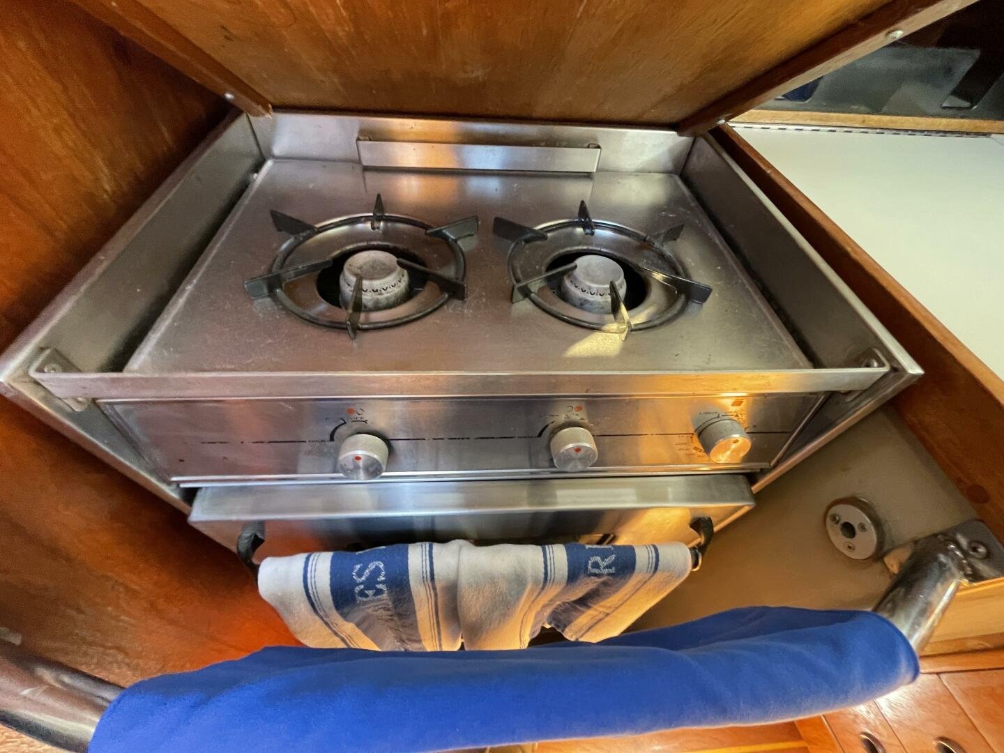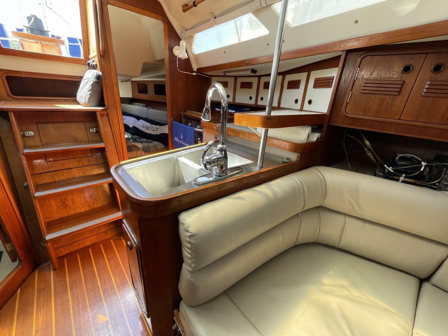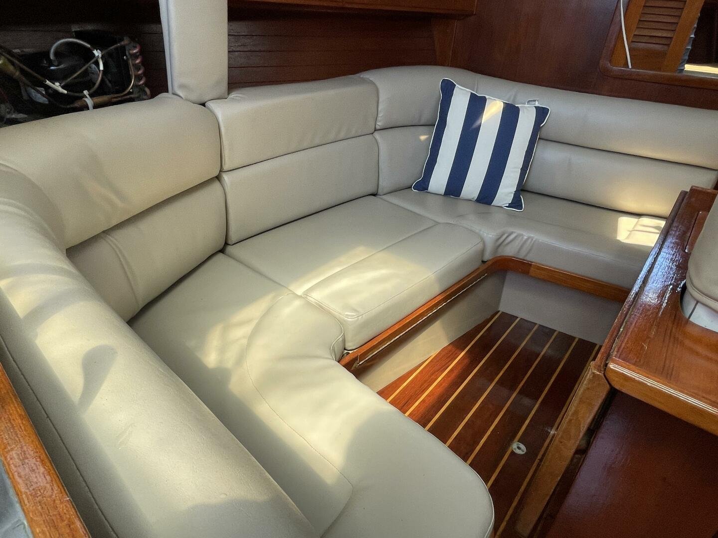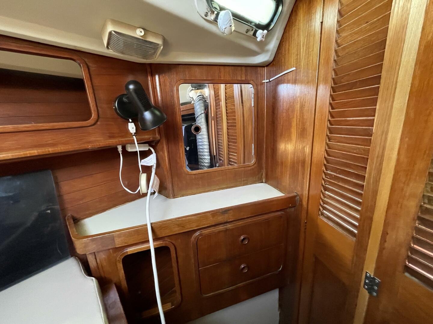 Step aboard to enjoy a spacious, fully cushioned cockpit, perfect for relaxation, below, deck the inviting salon features a beautifully maintained teak interior with newer leather cushions and new port lights. With two cabins, this vessel offers privacy and comfort for a cruising family or two couples. The well- appointed galley includes two sinks and a two-burner stove and refrigerator. While the thoughtfully designed layout includes a divided head and shower.