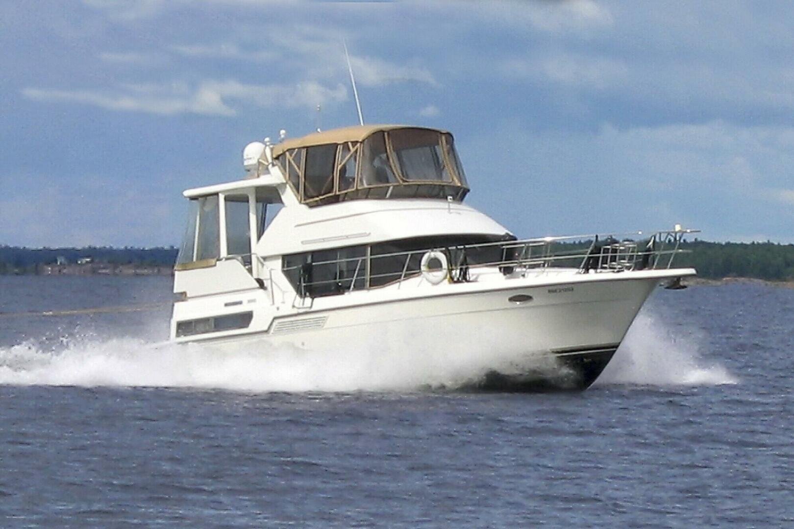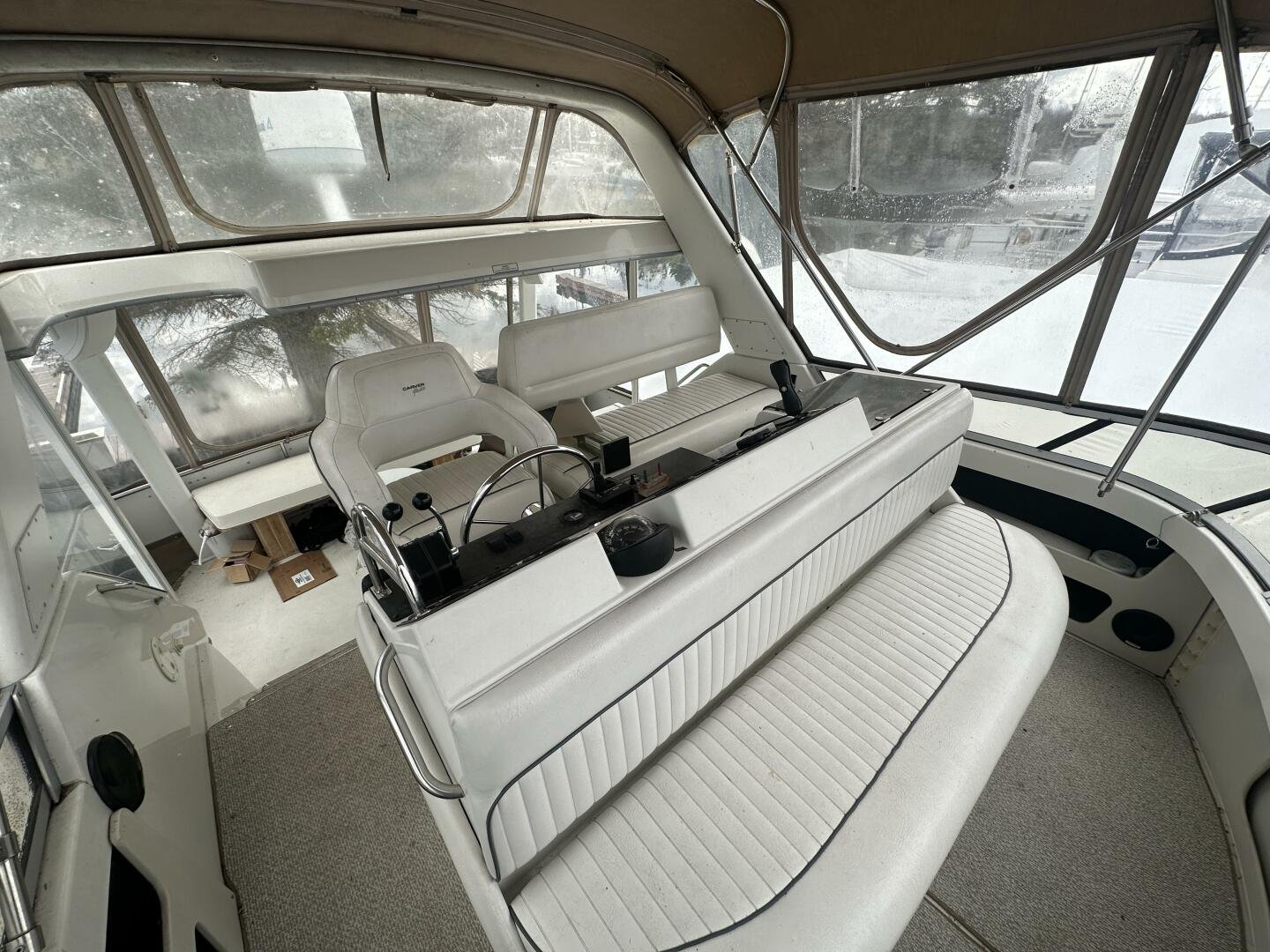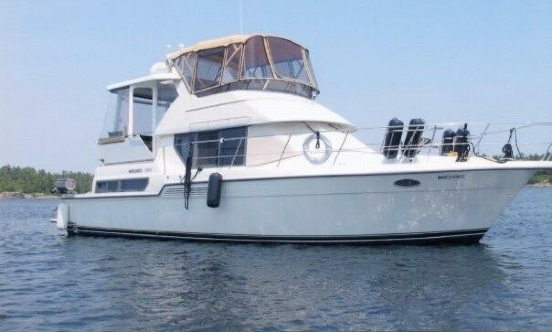 This Carver 390 CPMY has been owned by the current owner for over 15 years and has spent its time cruising the freshwater of Georgian Bay. The 390 CPMY is a desirable model with a large platform and aft cabin entrance through the cockpit. The aft area is fully enclosed letting you enjoy the space in all weather conditions.