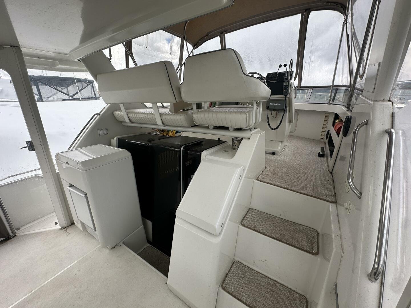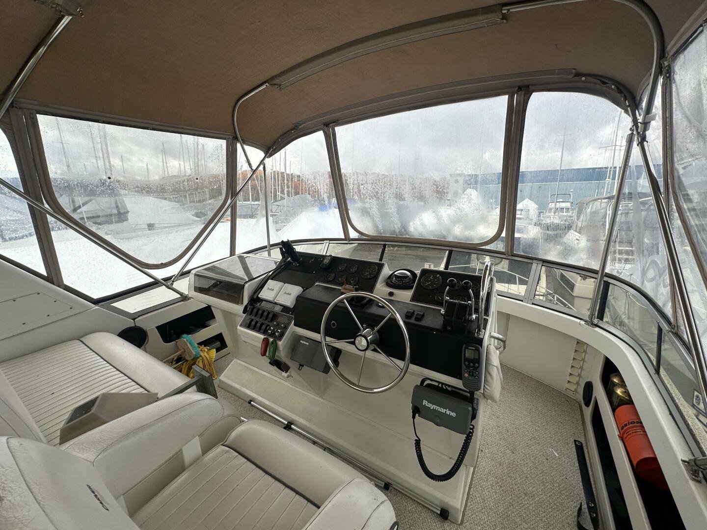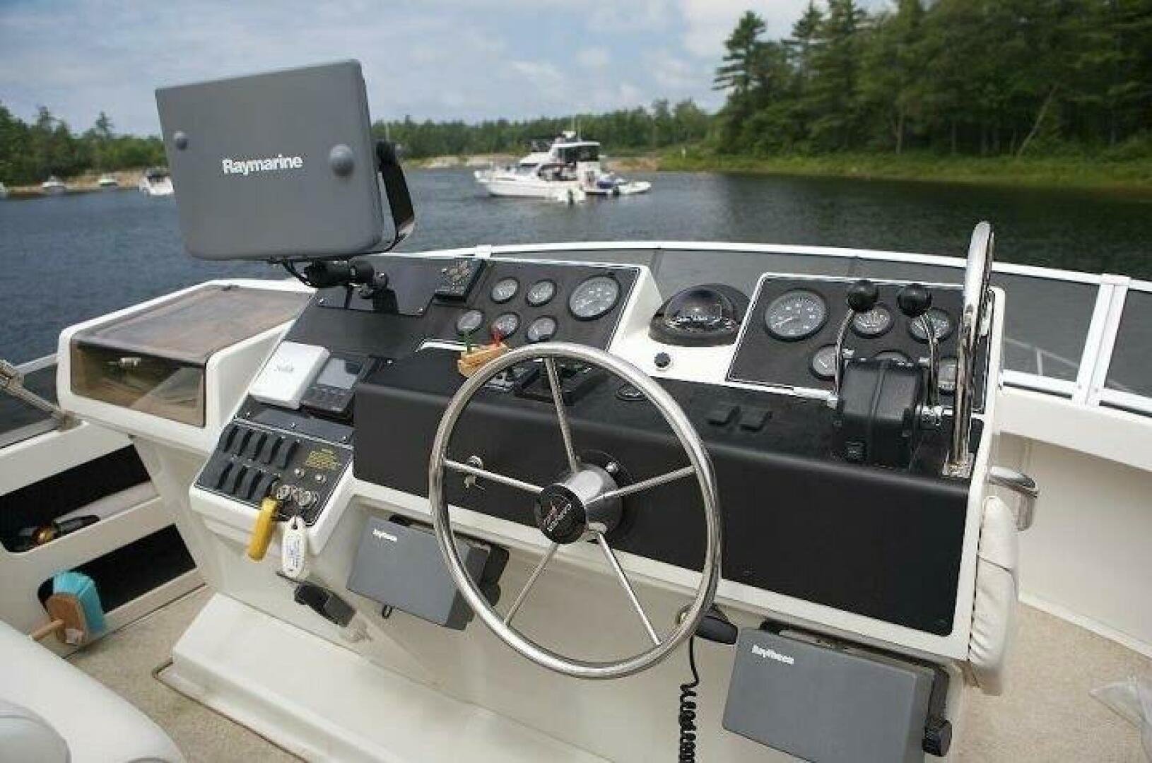 This Carver 390 CPMY has been owned by the current owner for over 15 years and has spent its time cruising the freshwater of Georgian Bay. The 390 CPMY is a desirable model with a large platform and aft cabin entrance through the cockpit. The aft area is fully enclosed letting you enjoy the space in all weather conditions.