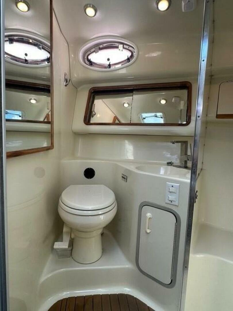 • Forward stateroom with a full-size bed for restful nights.