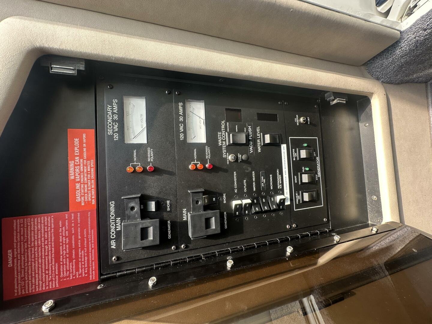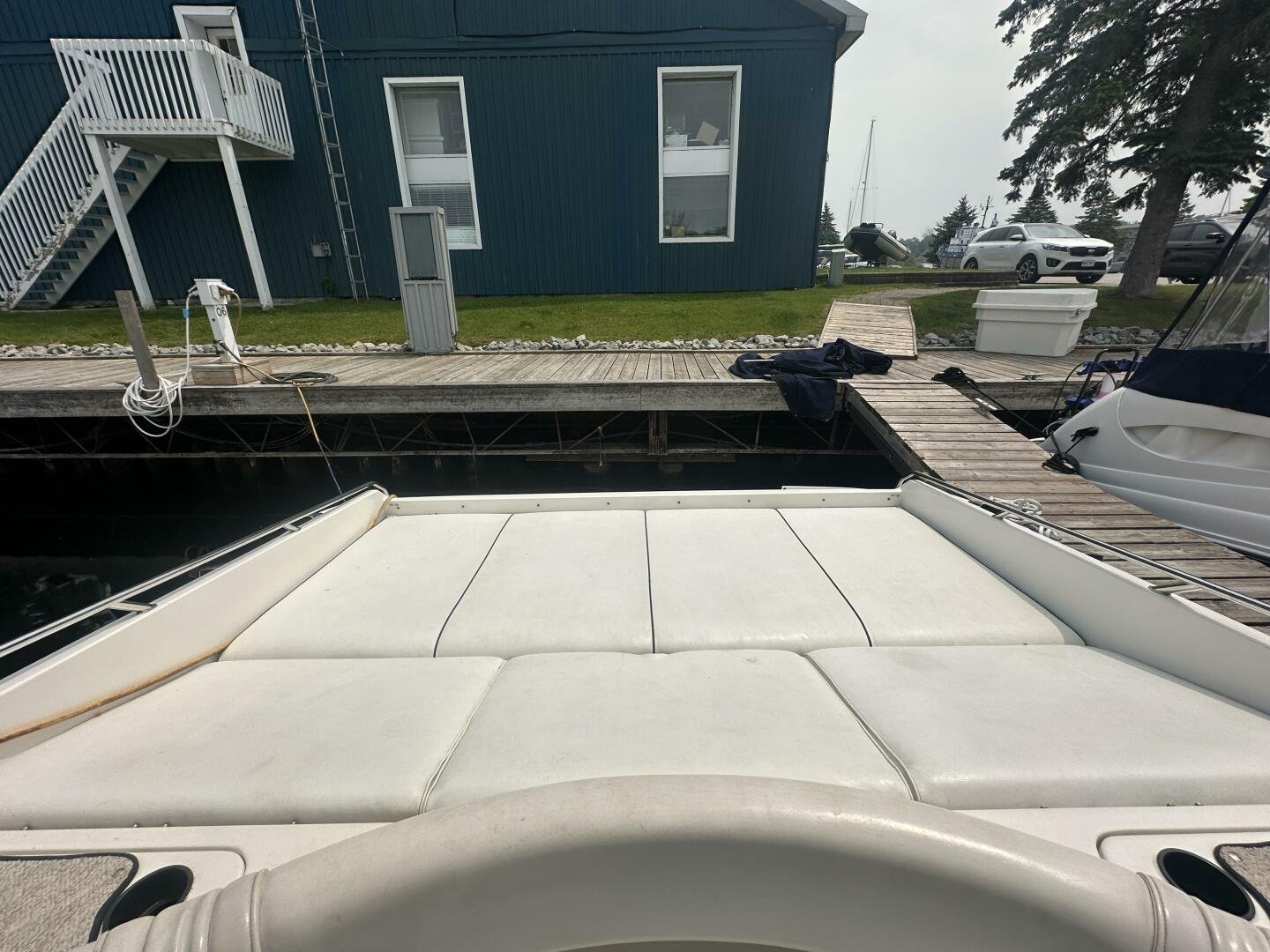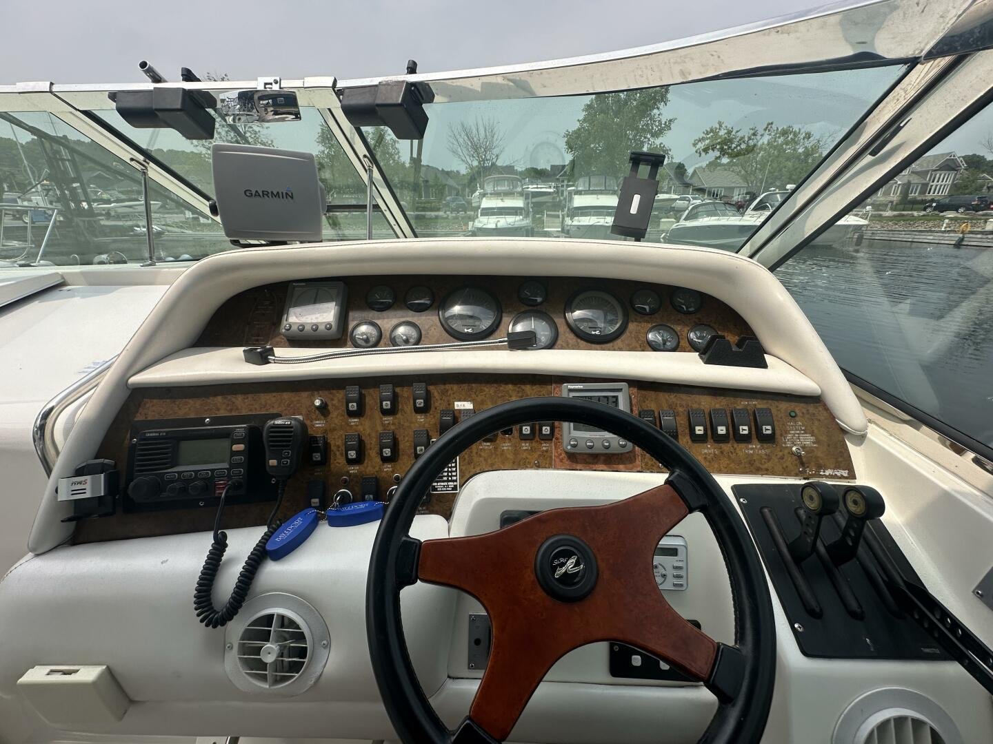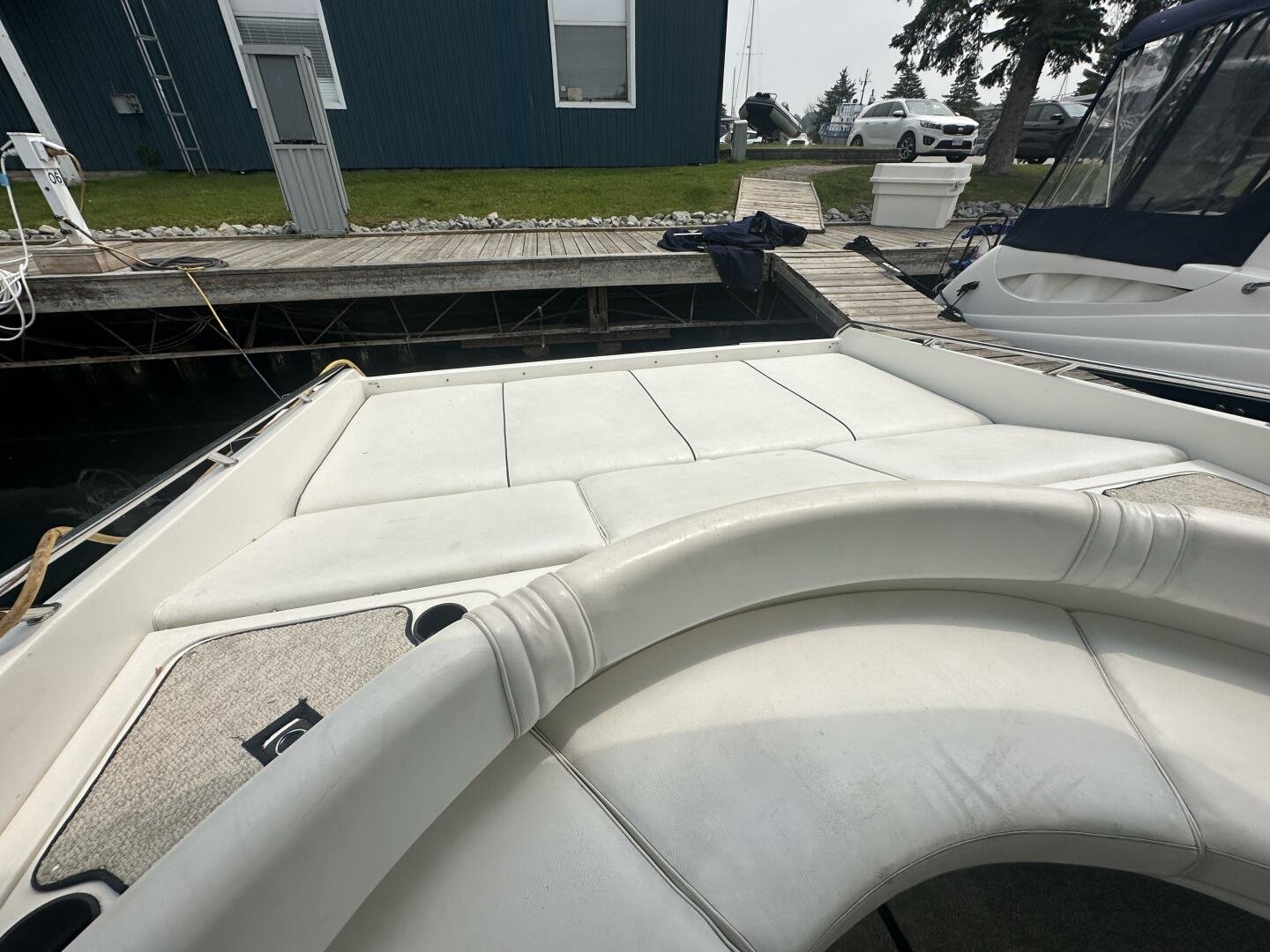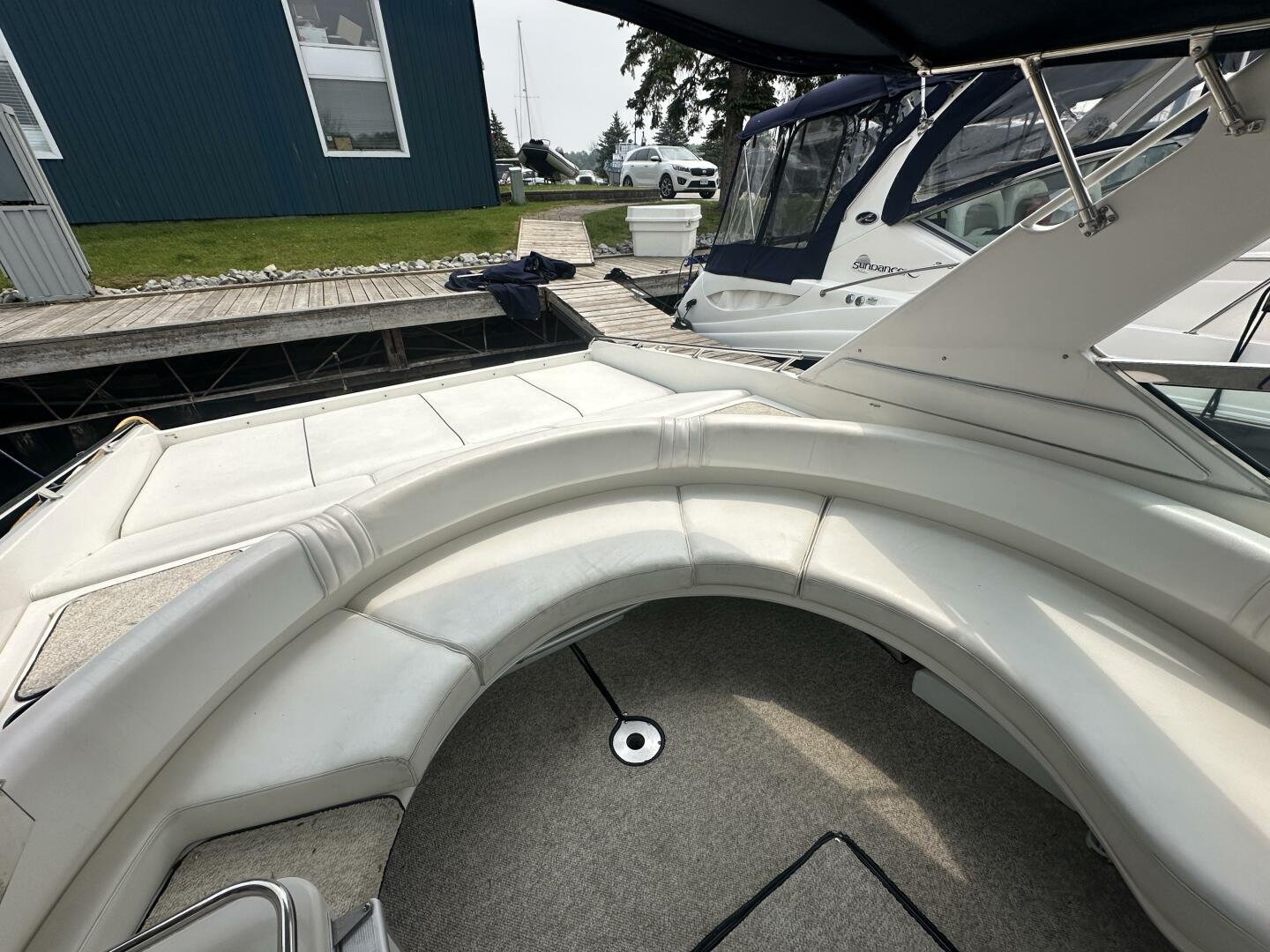 A rare and unique Sea Ray, with a large cockpit, massive sun deck, and a pair of MerCruiser 502s with 990 hours. An ideal vessel for big water cruising, day boating, and weekending. The aft cockpit features large wrap-around seating, a wet bar, and an ice maker. At the helm, you have large bench seating, autopilot, VHF, Garmin GPS, and all other controls. You will also find the controls for the cockpit AC.