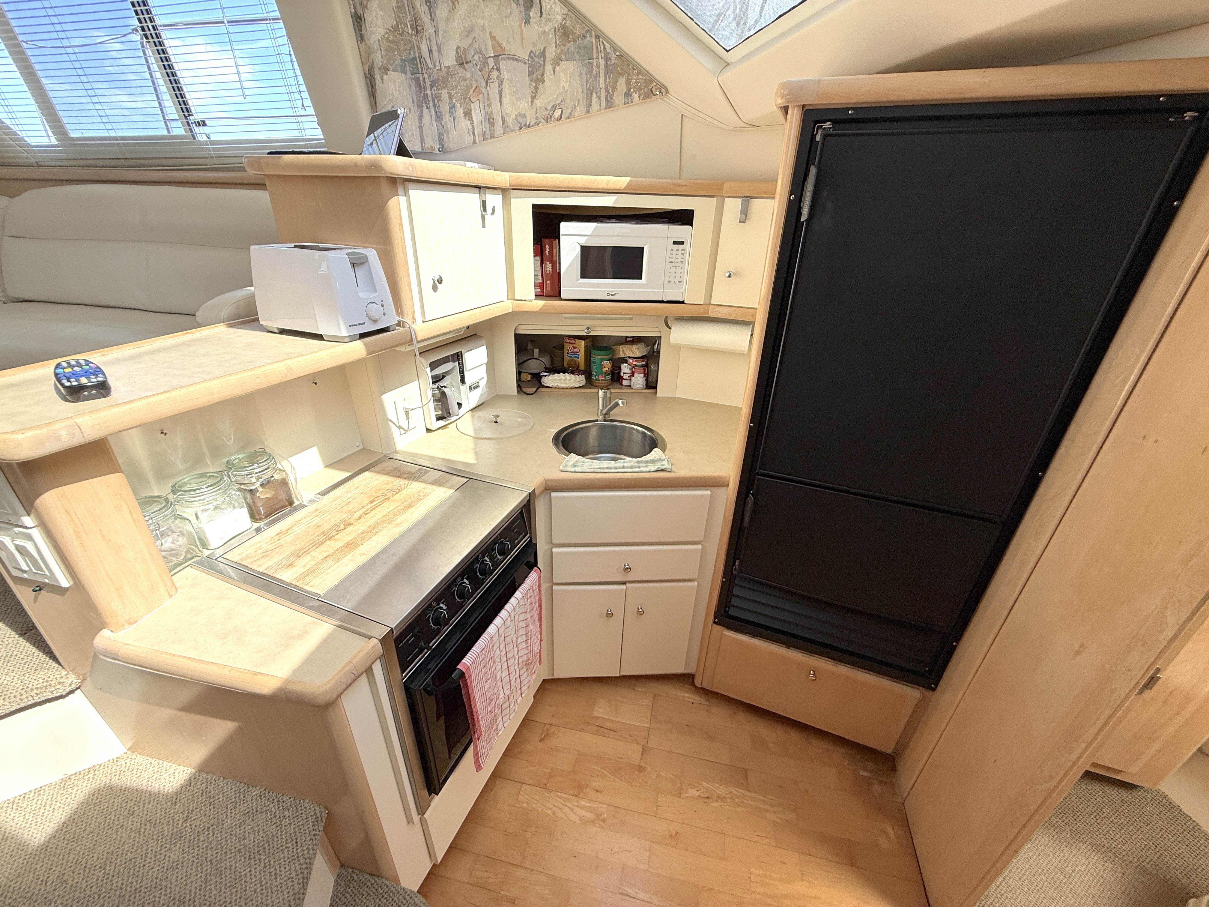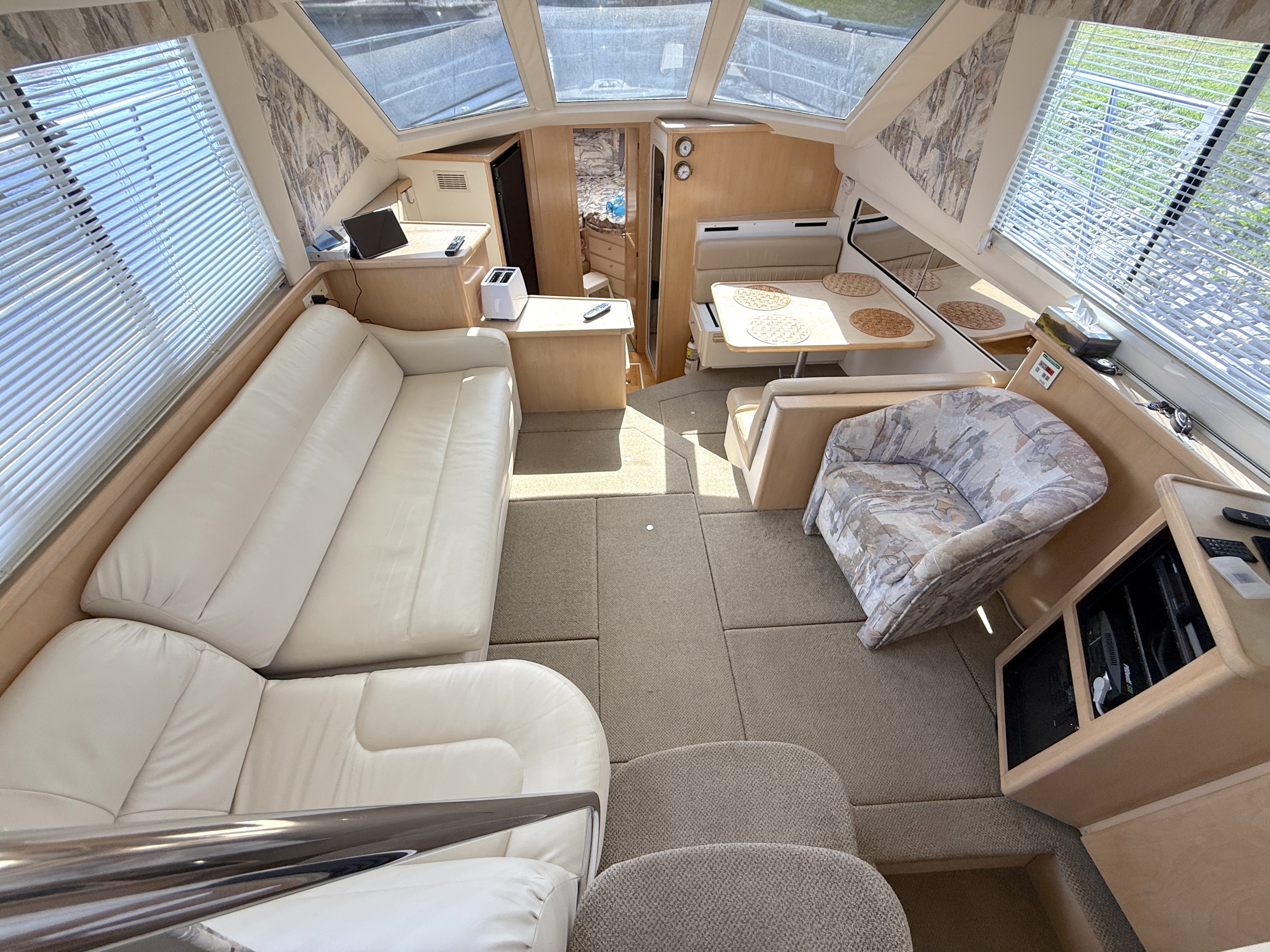 Galley-down salon with excellent natural light