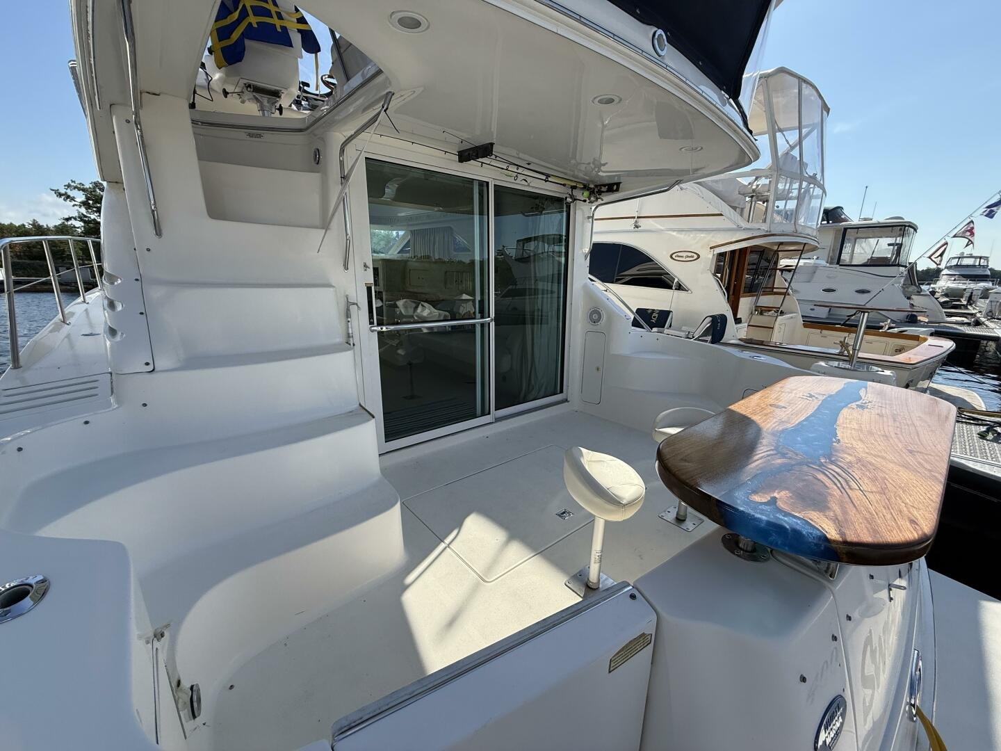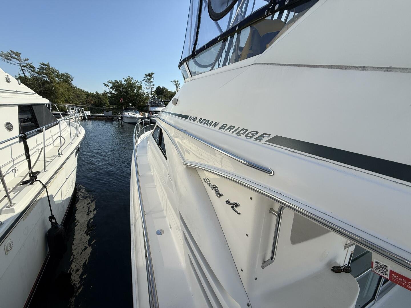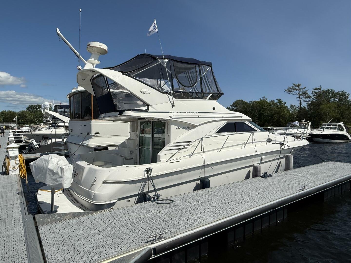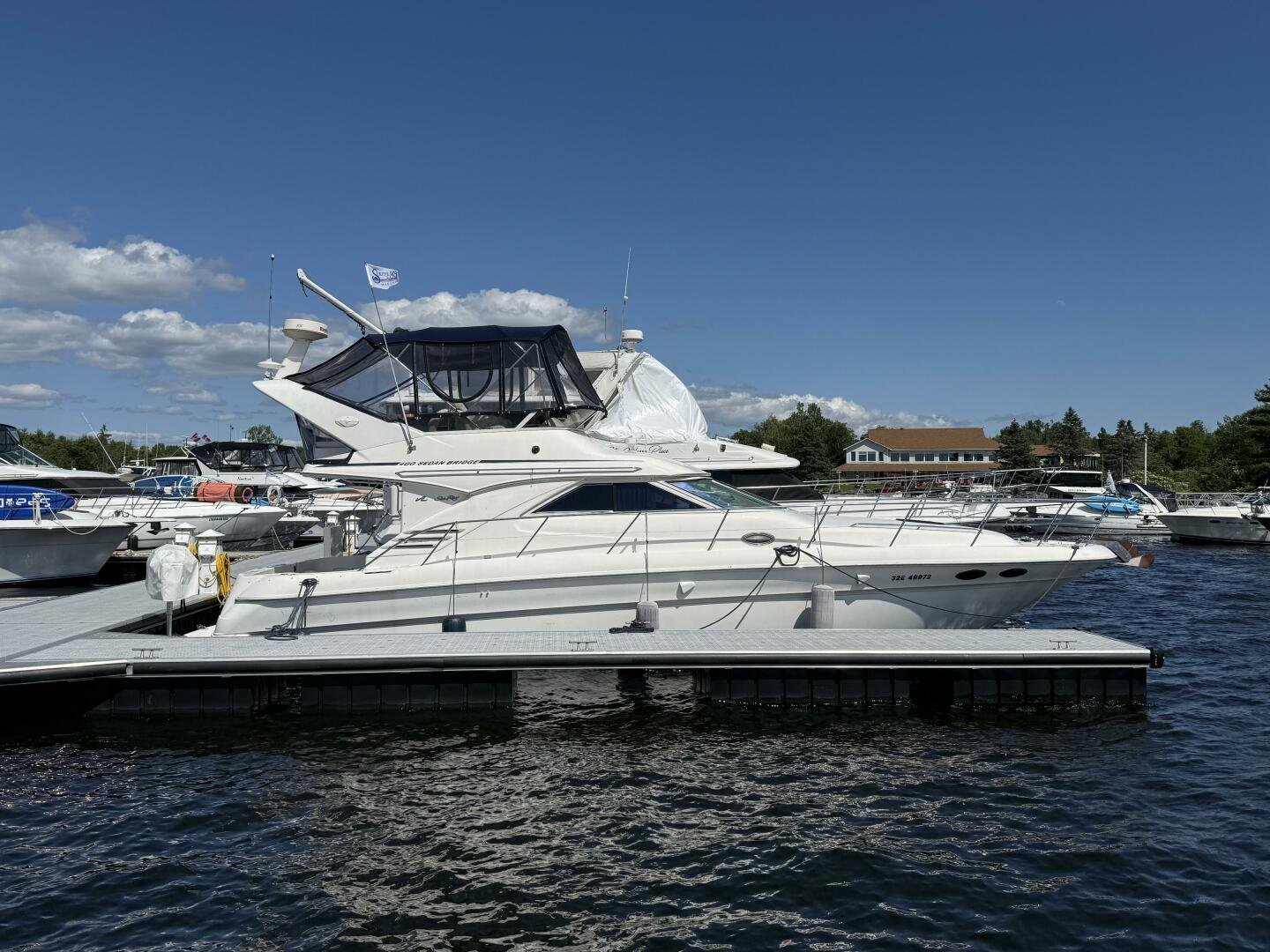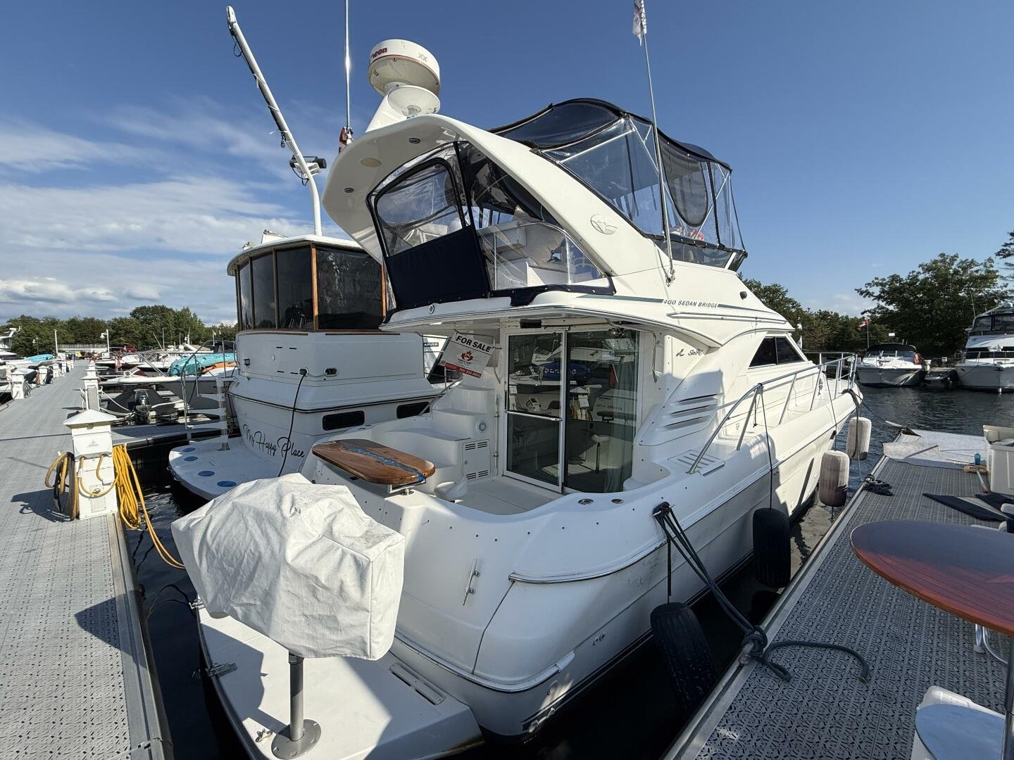 One of Sea Rays' most popular models, the 400 Sedan Bridge makes an excellent family cruiser and entertainer. Equipped with a generator, inverter, solar, heat/ac, this boat has all the comforts. The large swim platform and cockpit give you plenty of space for entertaining outdoors, while the bridge has lots of seating while being fully enclosed. A sliding glass door gives you access to an expansive salon with two couches, a raised dinette, and a well-equipped galley down. The guest stateroom converts from 2x singles to a queen berth. The main head to port features a separate shower, while the master stateroom forward has an en-suite with separate shower.