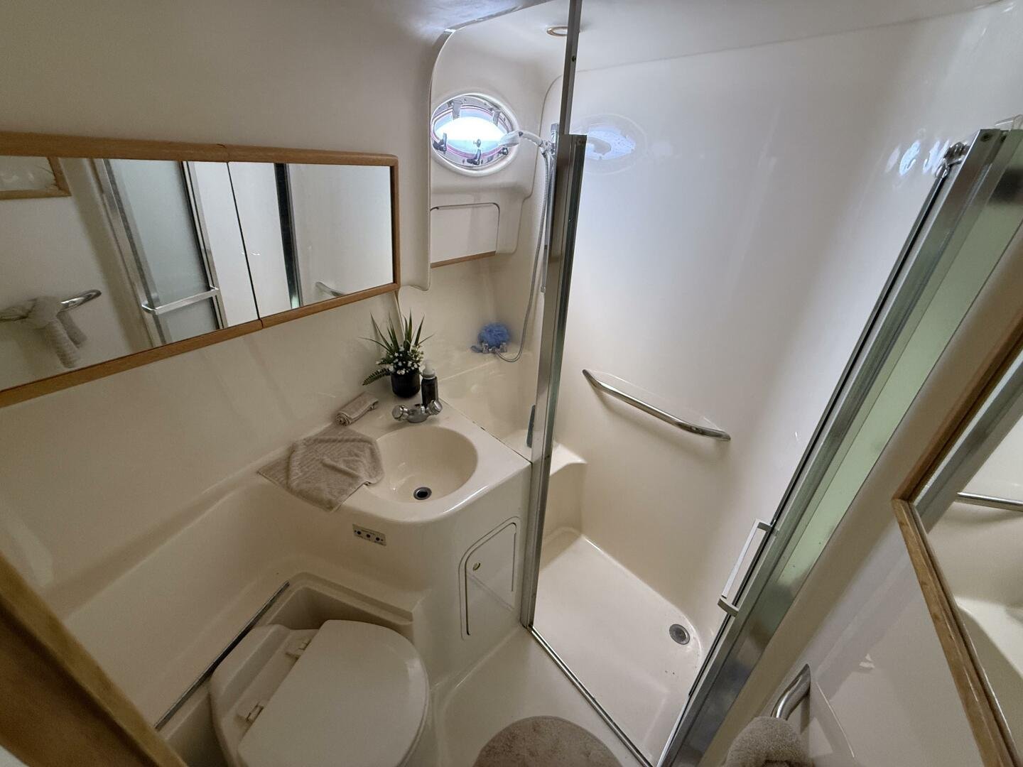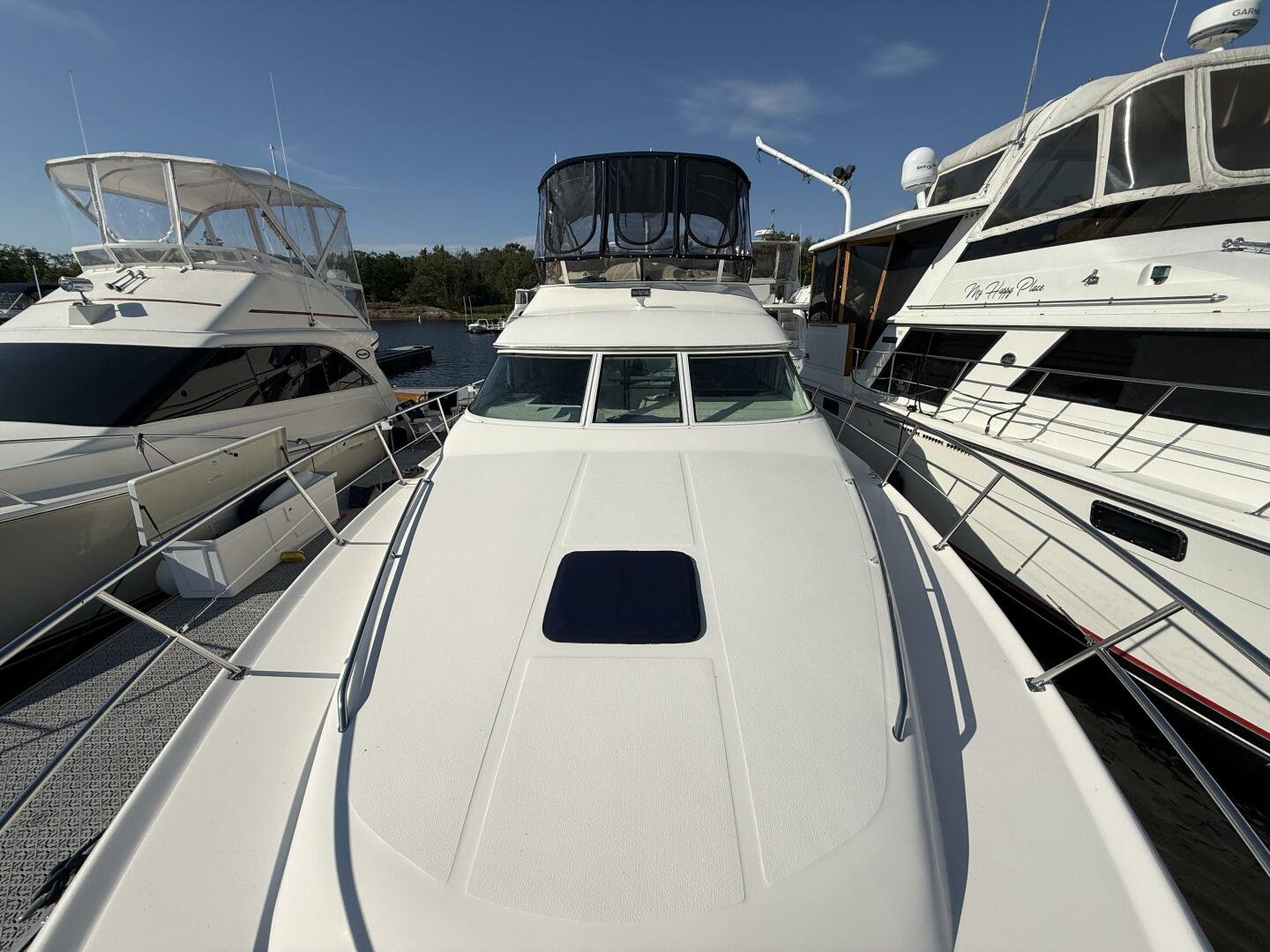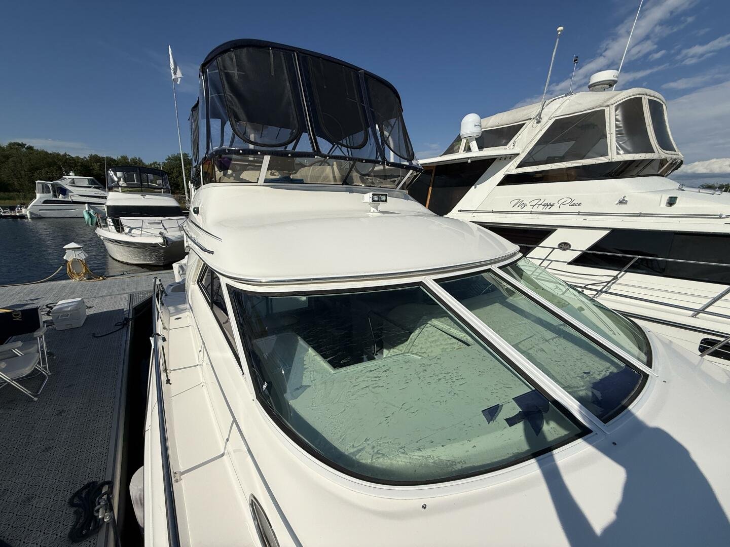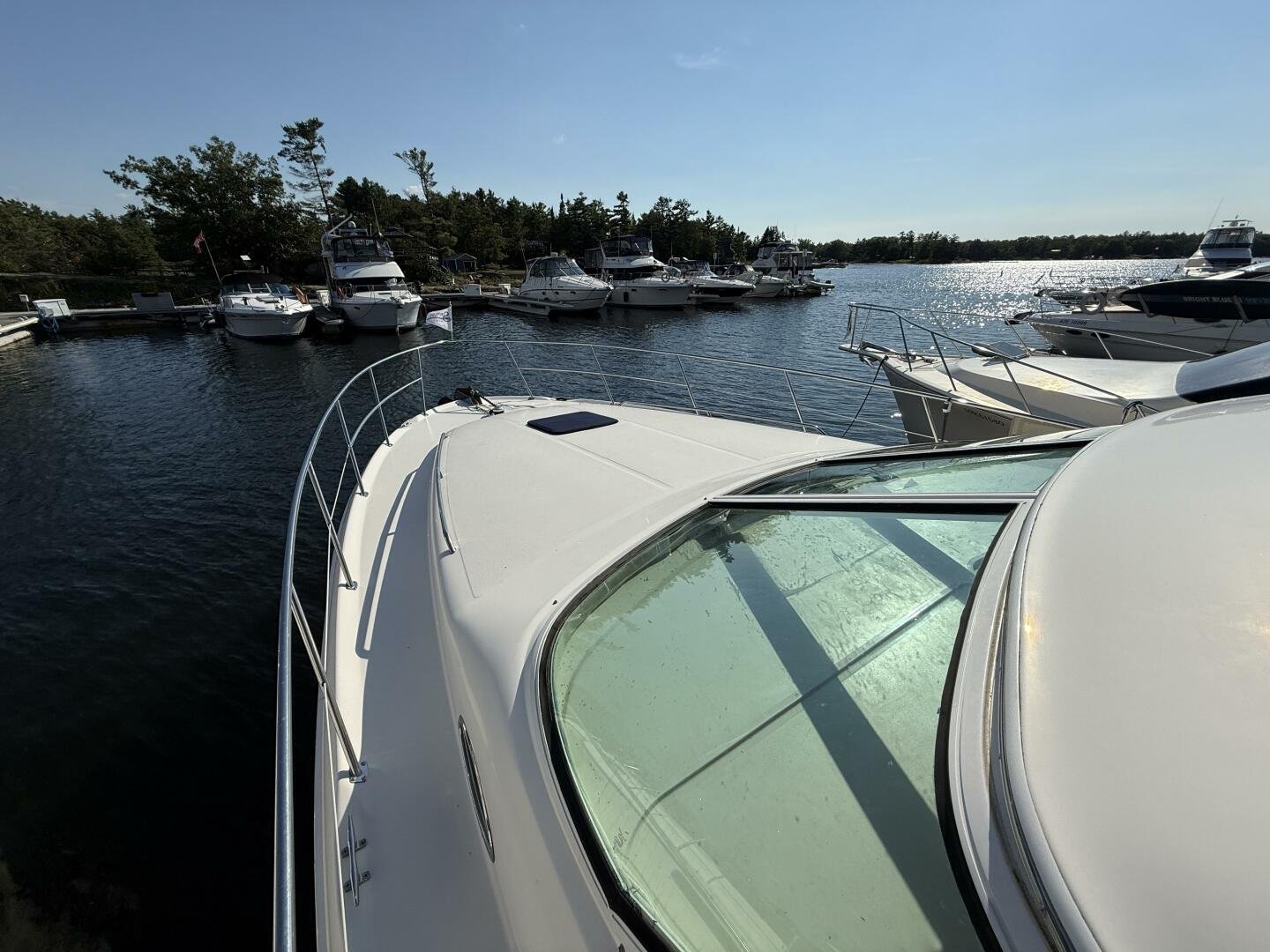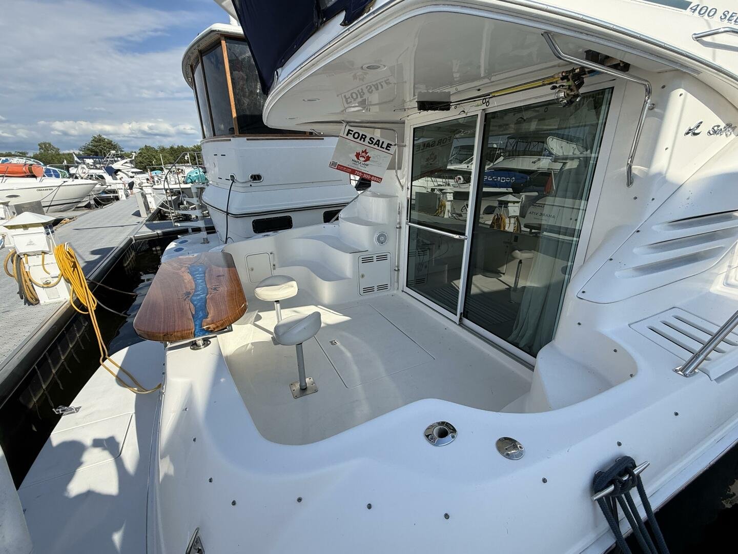 One of Sea Rays' most popular models, the 400 Sedan Bridge makes an excellent family cruiser and entertainer. Equipped with a generator, inverter, solar, heat/ac, this boat has all the comforts. The large swim platform and cockpit give you plenty of space for entertaining outdoors, while the bridge has lots of seating while being fully enclosed. A sliding glass door gives you access to an expansive salon with two couches, a raised dinette, and a well-equipped galley down. The guest stateroom converts from 2x singles to a queen berth. The main head to port features a separate shower, while the master stateroom forward has an en-suite with separate shower.