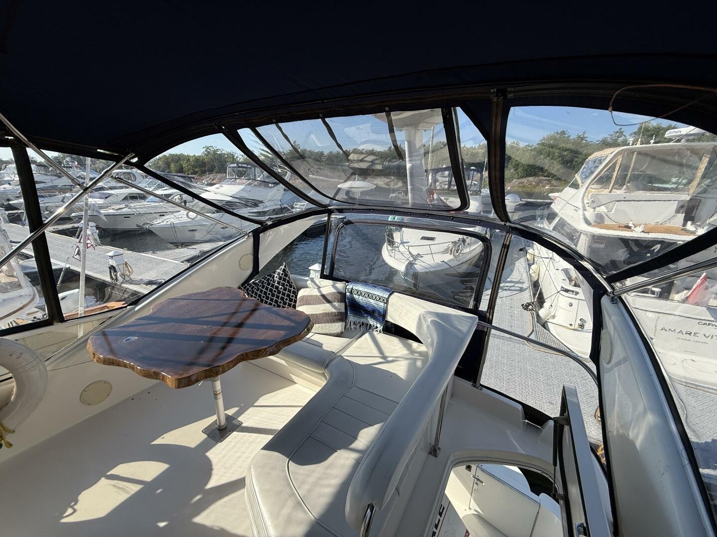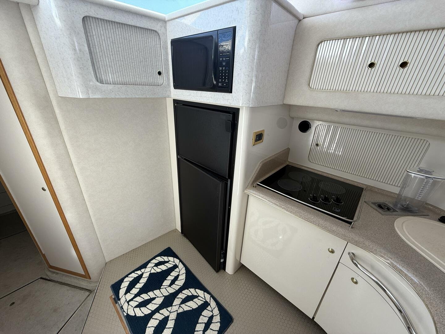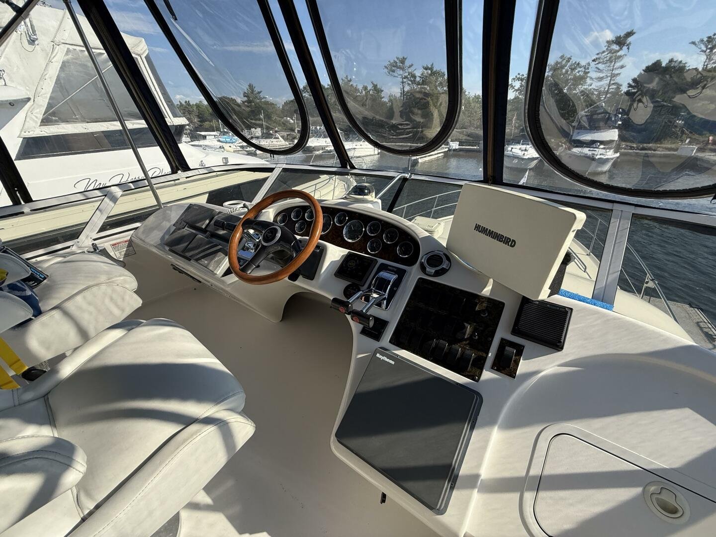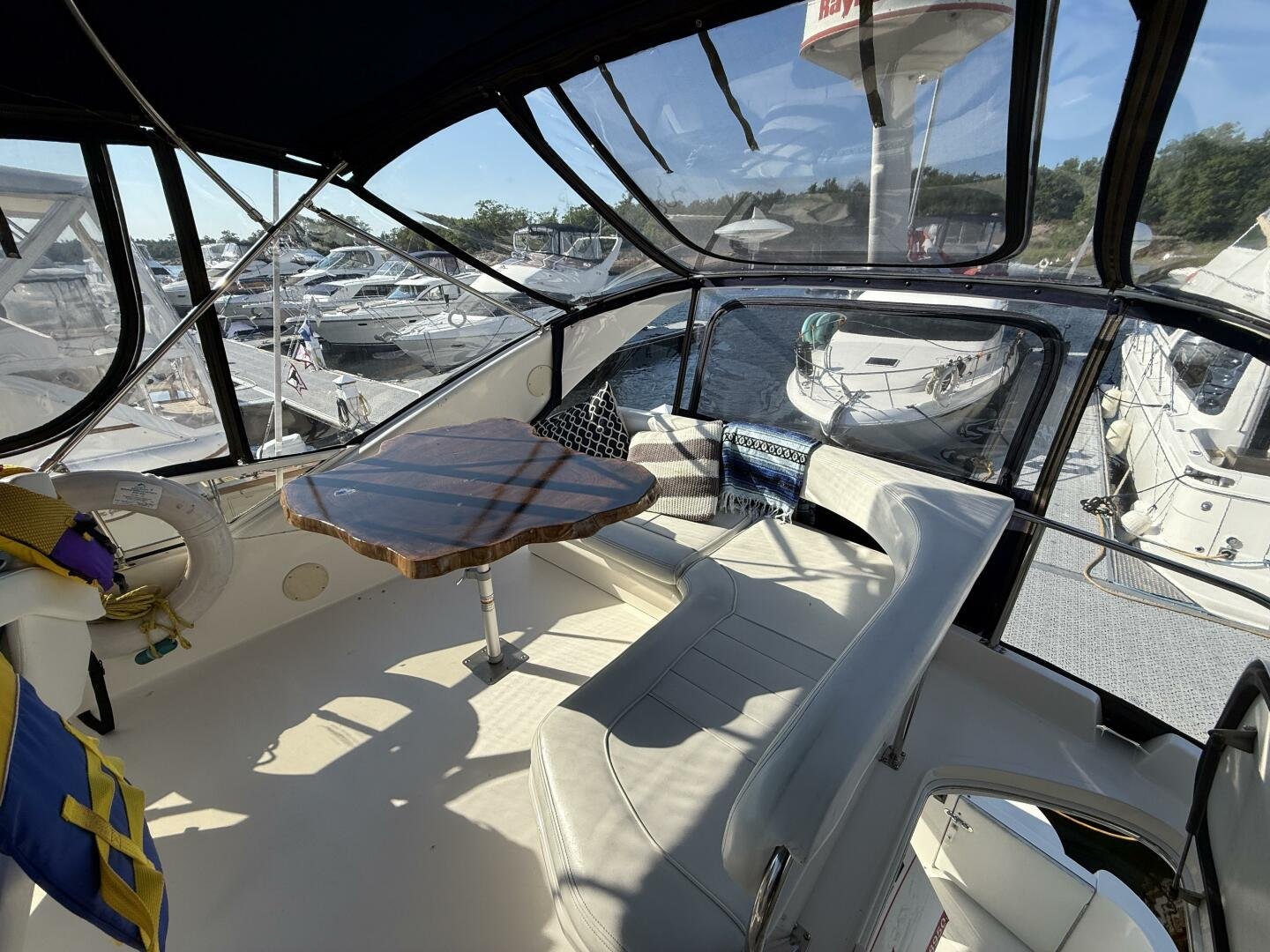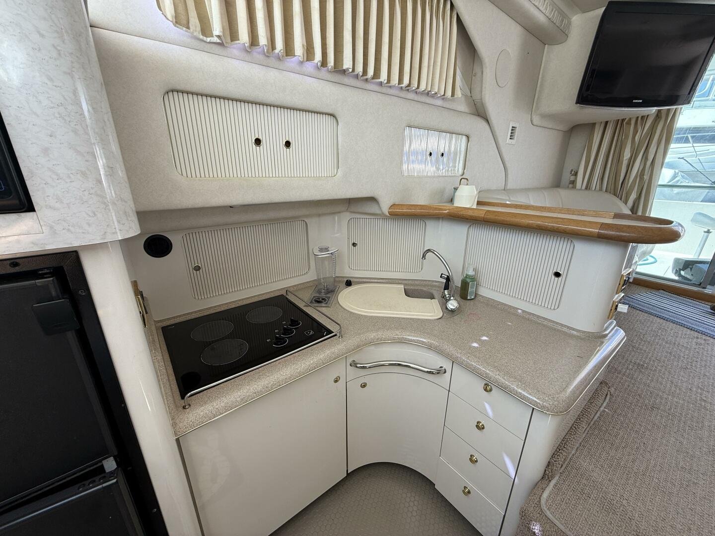 One of Sea Rays' most popular models, the 400 Sedan Bridge makes an excellent family cruiser and entertainer. Equipped with a generator, inverter, solar, heat/ac, this boat has all the comforts. The large swim platform and cockpit give you plenty of space for entertaining outdoors, while the bridge has lots of seating while being fully enclosed. A sliding glass door gives you access to an expansive salon with two couches, a raised dinette, and a well-equipped galley down. The guest stateroom converts from 2x singles to a queen berth. The main head to port features a separate shower, while the master stateroom forward has an en-suite with separate shower.