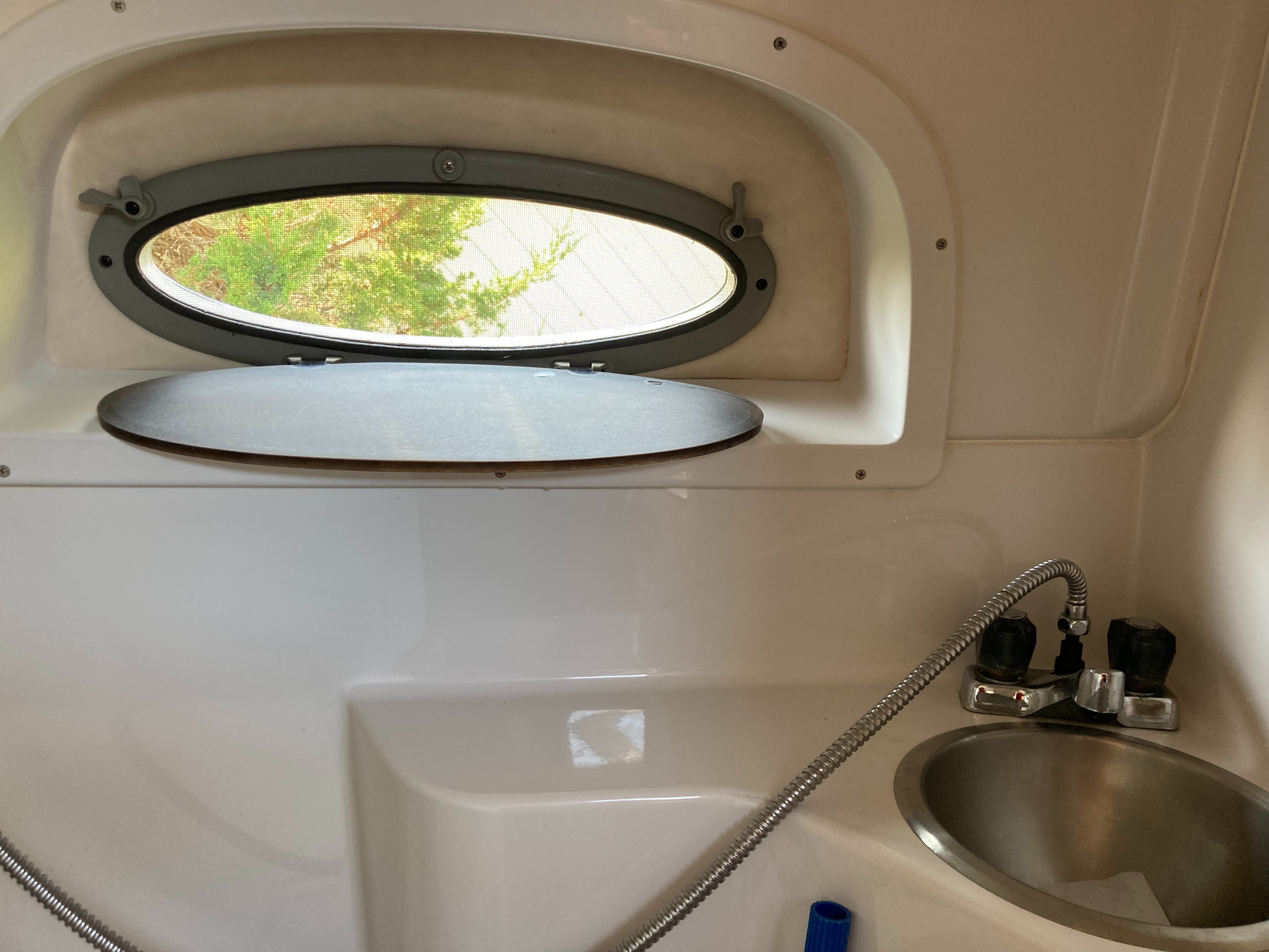 Galley featuring:Sink with pressurized waterAlcohol/electric stoveRefrigerator