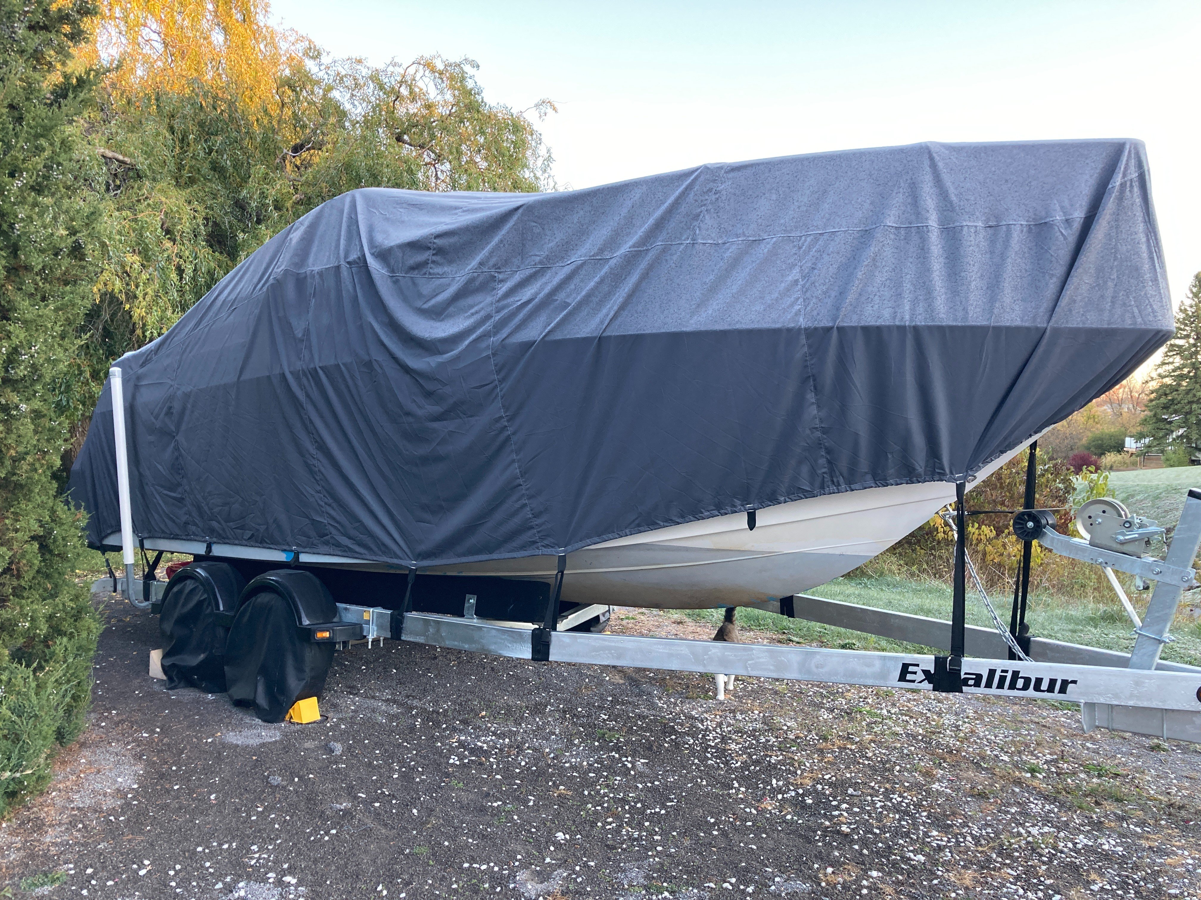 VOLVO PENTA 5.7 GS ENGINE - 500 HOURS - FULL CAMPER ENCLOSURE - 2024 EXCALIBUR TANDEM-AXEL TRAILER - CUSTOM WINTER COVER