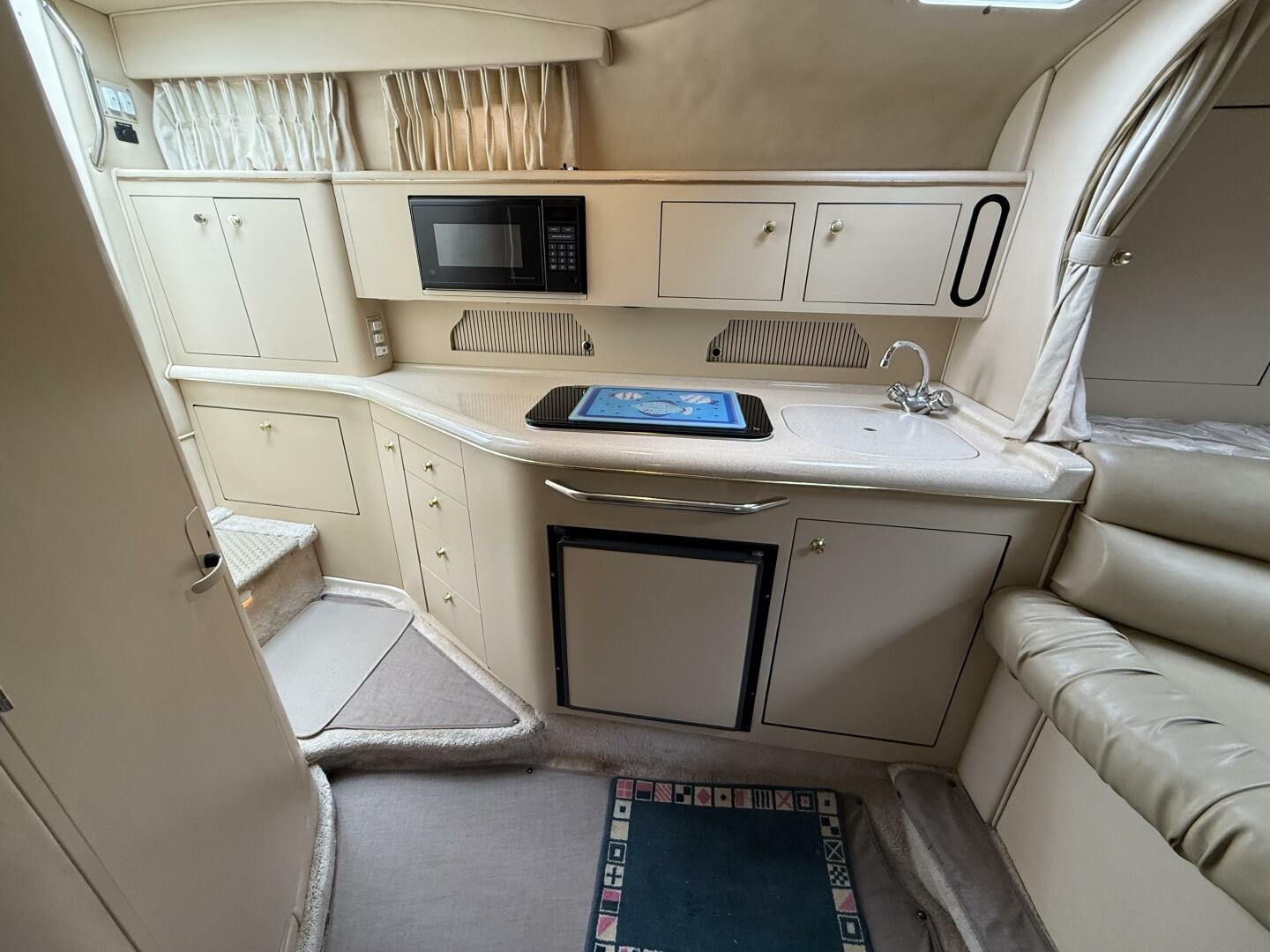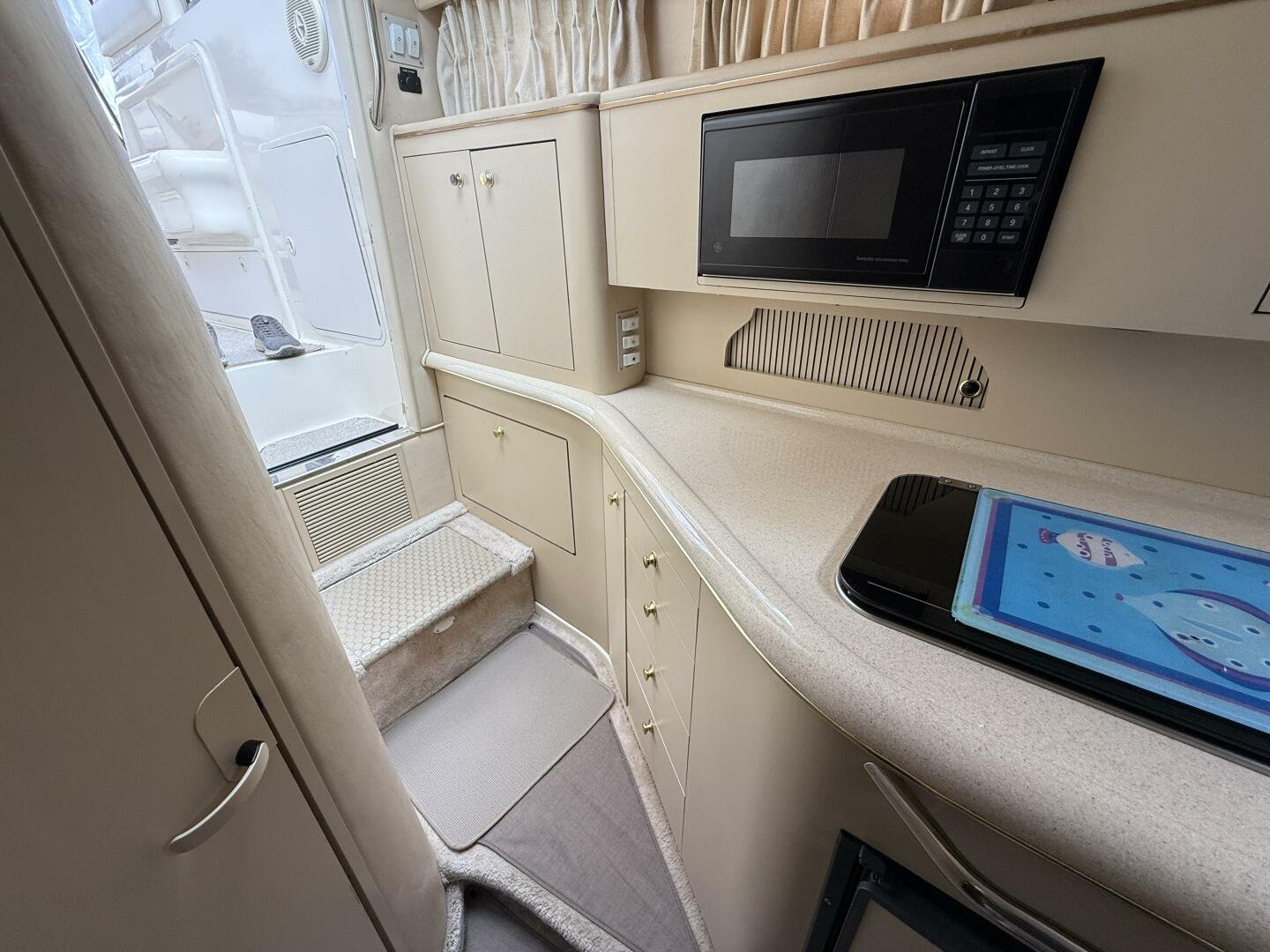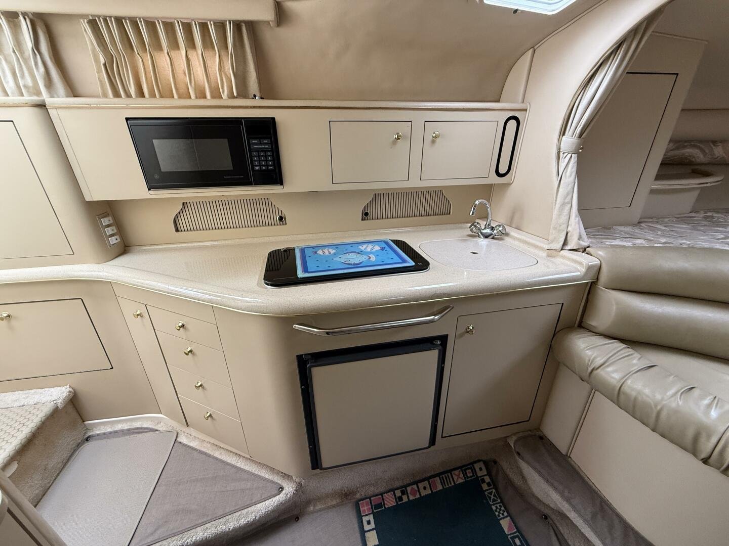 GALLEY: Port side galley with ample counterspace and storage. Large single basin sink with corian countertop