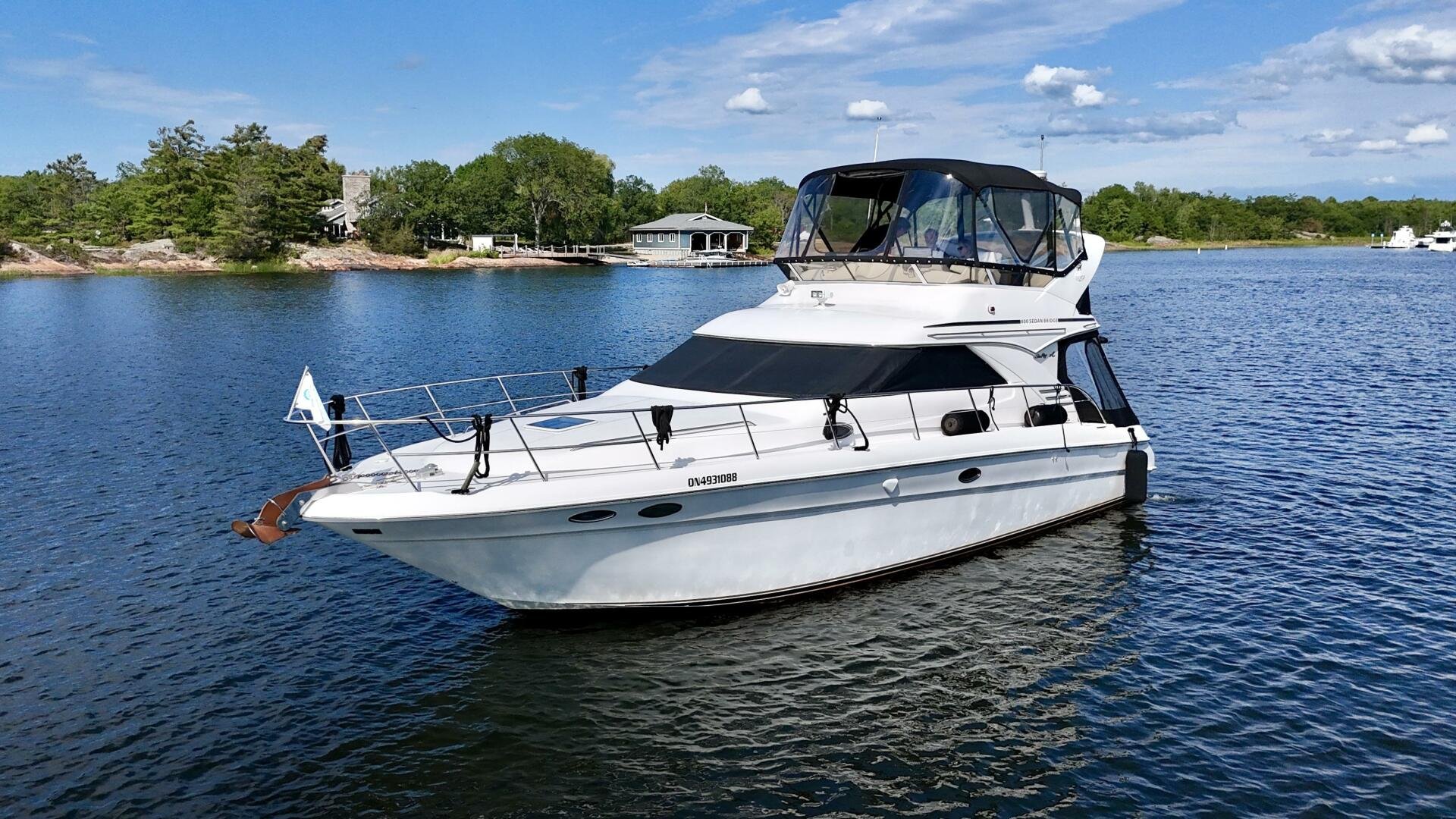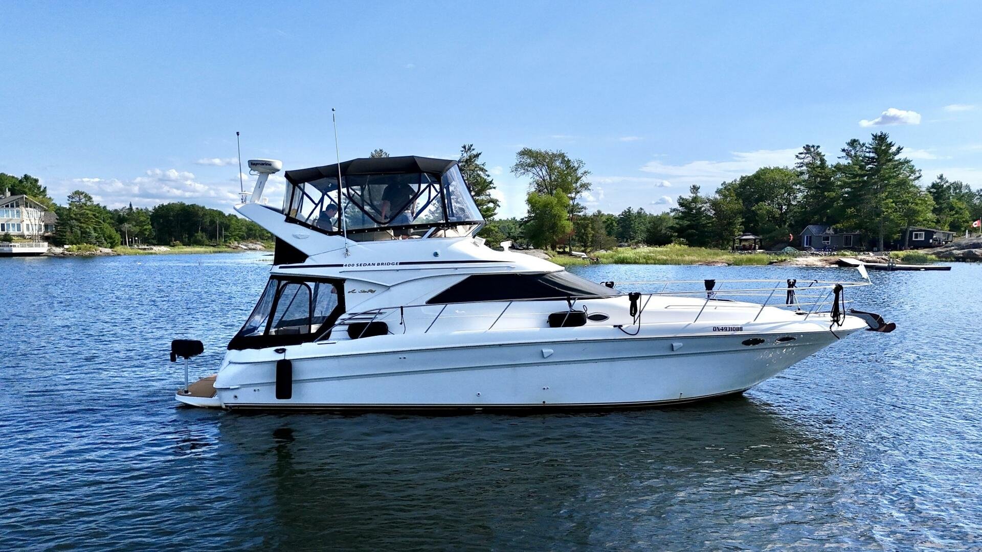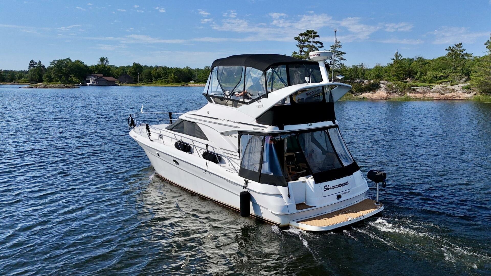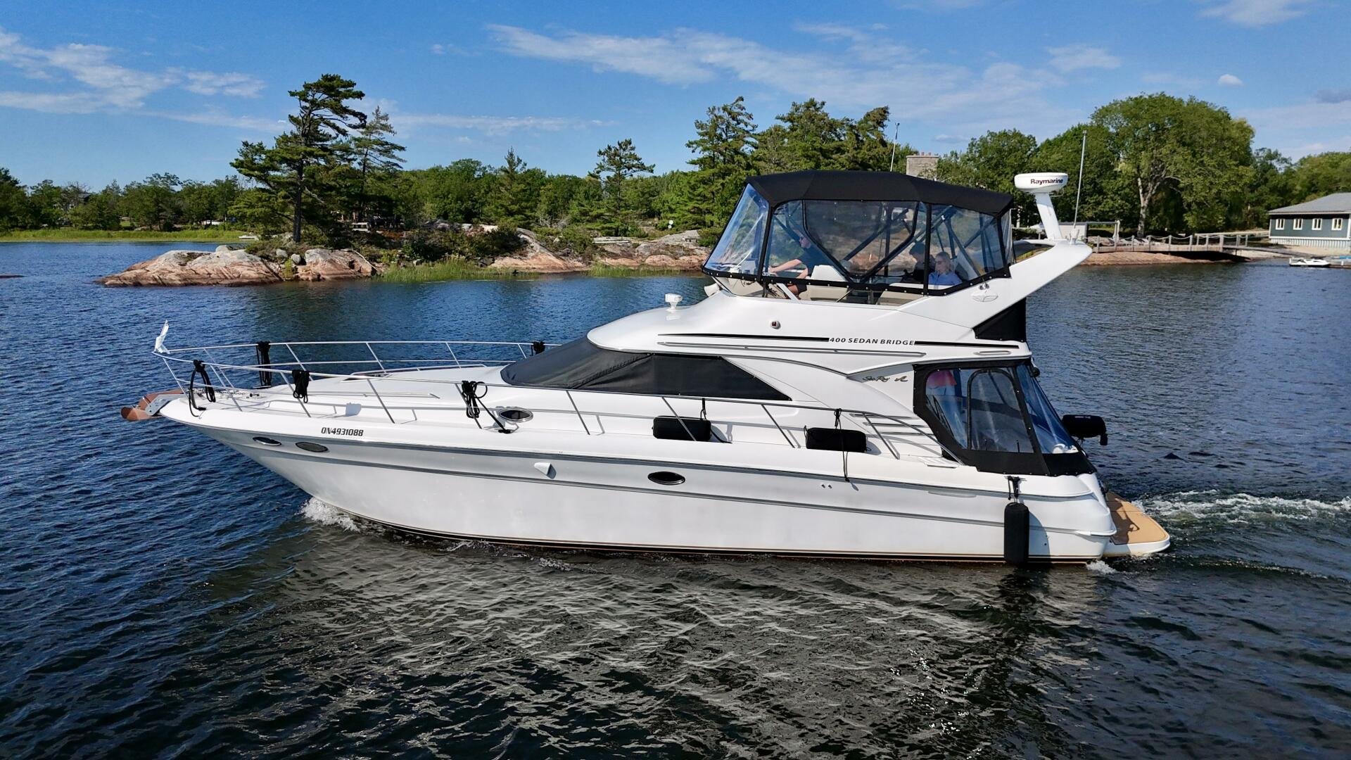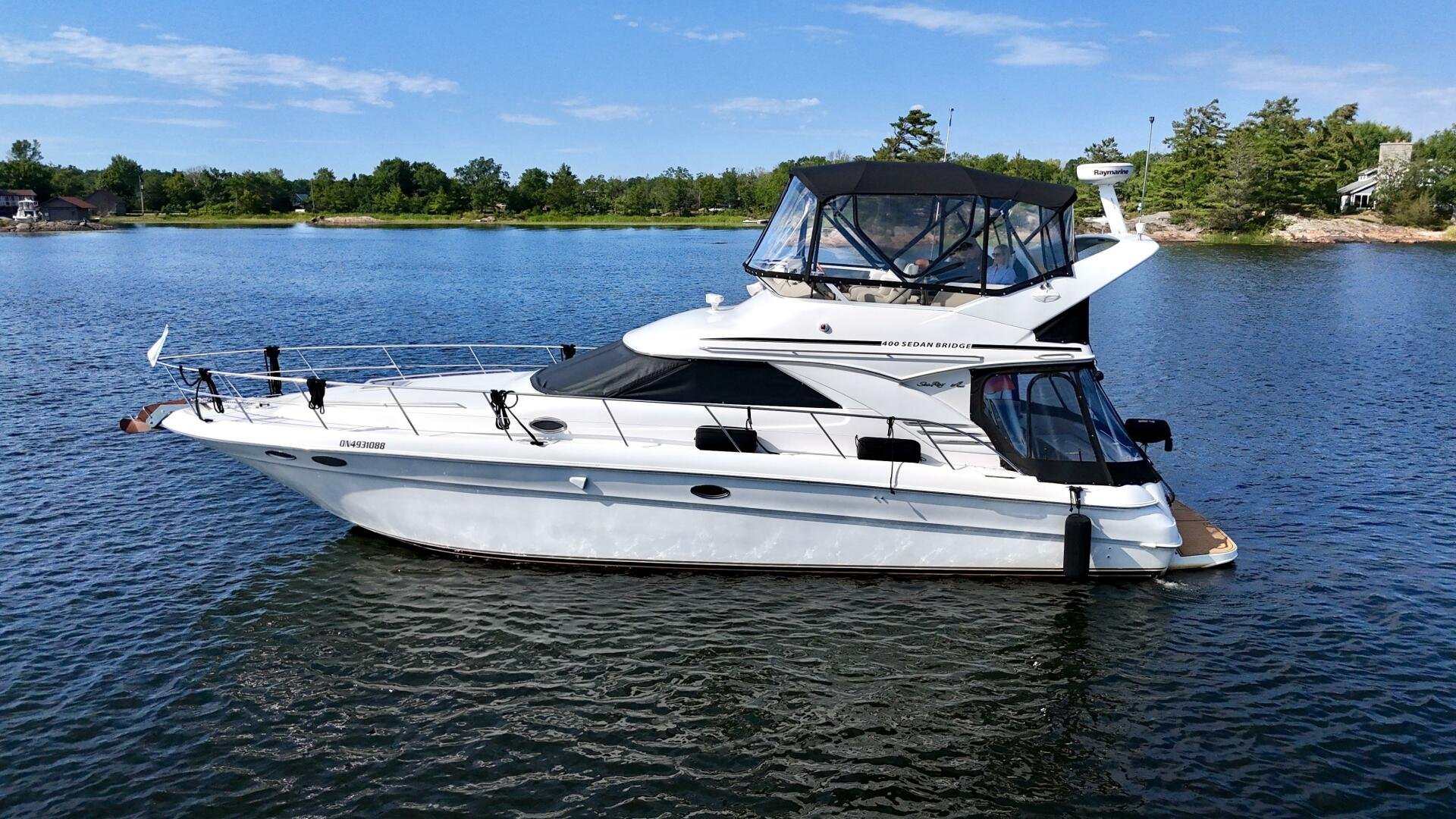 A clean, well-maintained, freshwater, Sea Ray 400 Sedan Bridge. A desirable boat and layout for cruising the Great Lakes. This example has been updated with new bridge/cockpit canvas, new interior/exterior flooring, and updated Raymarine chartplotter.