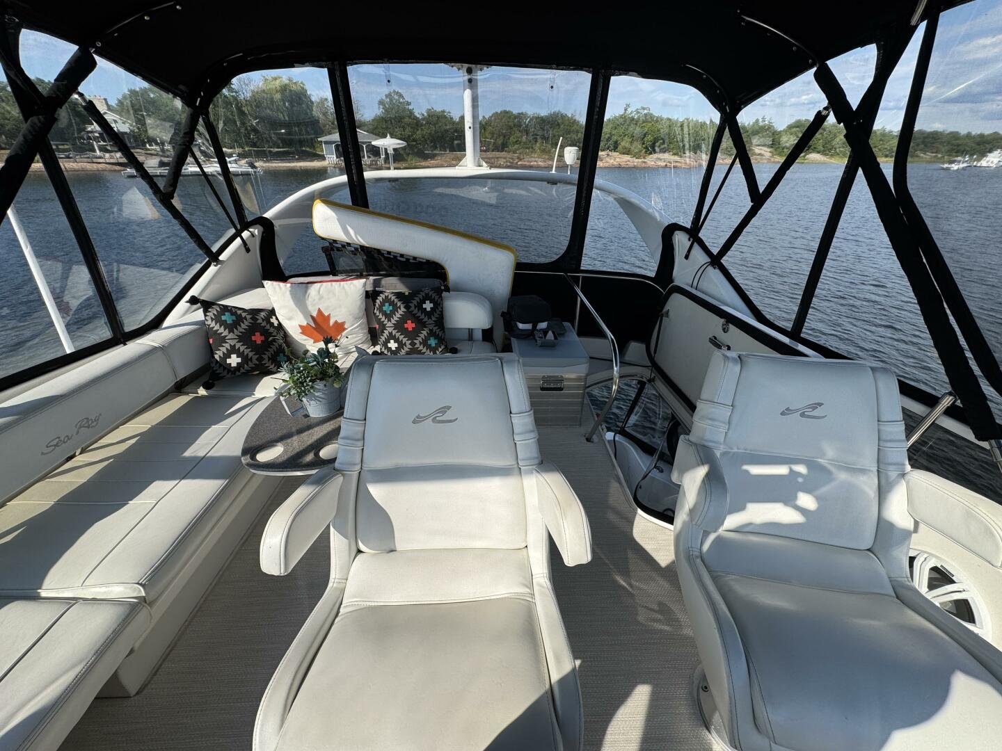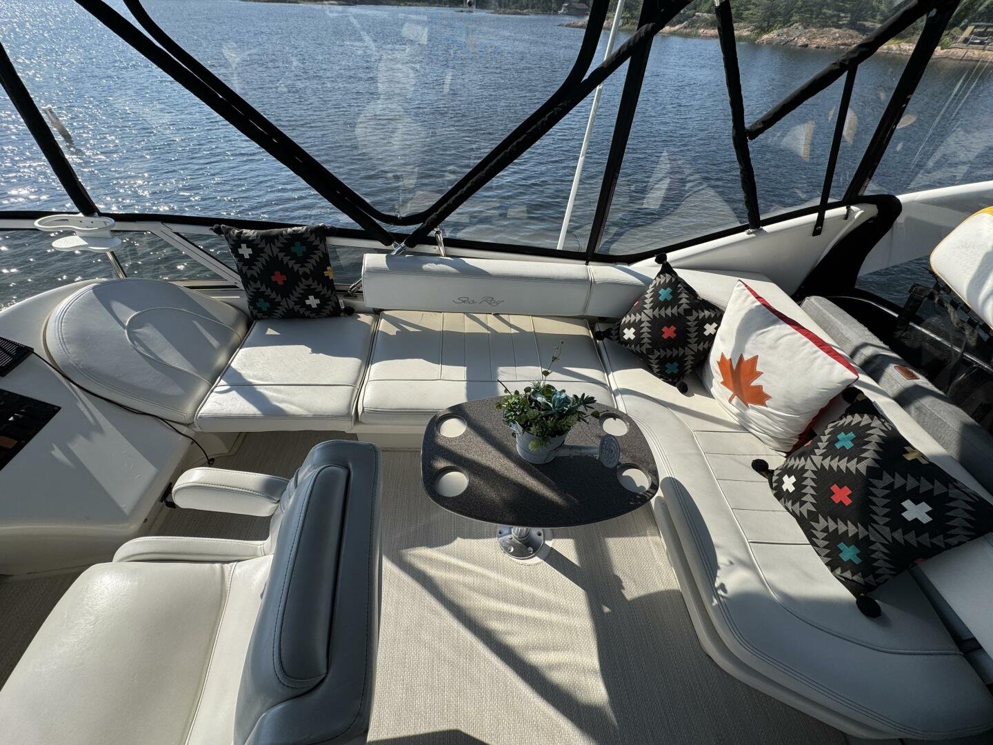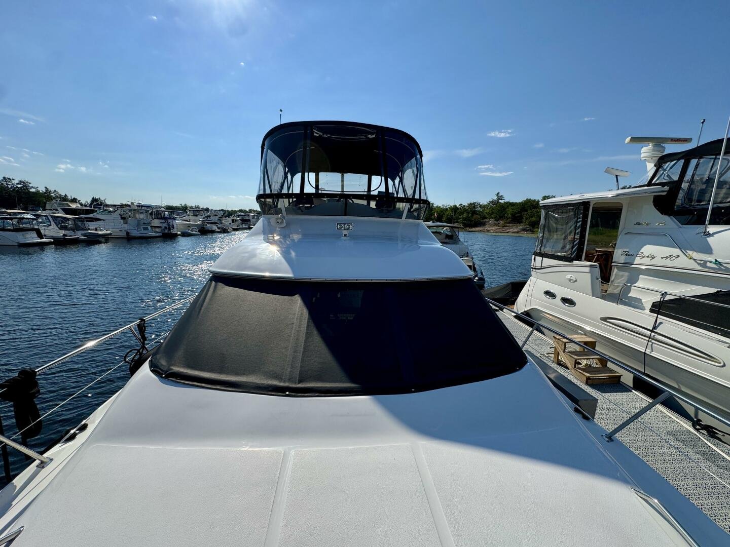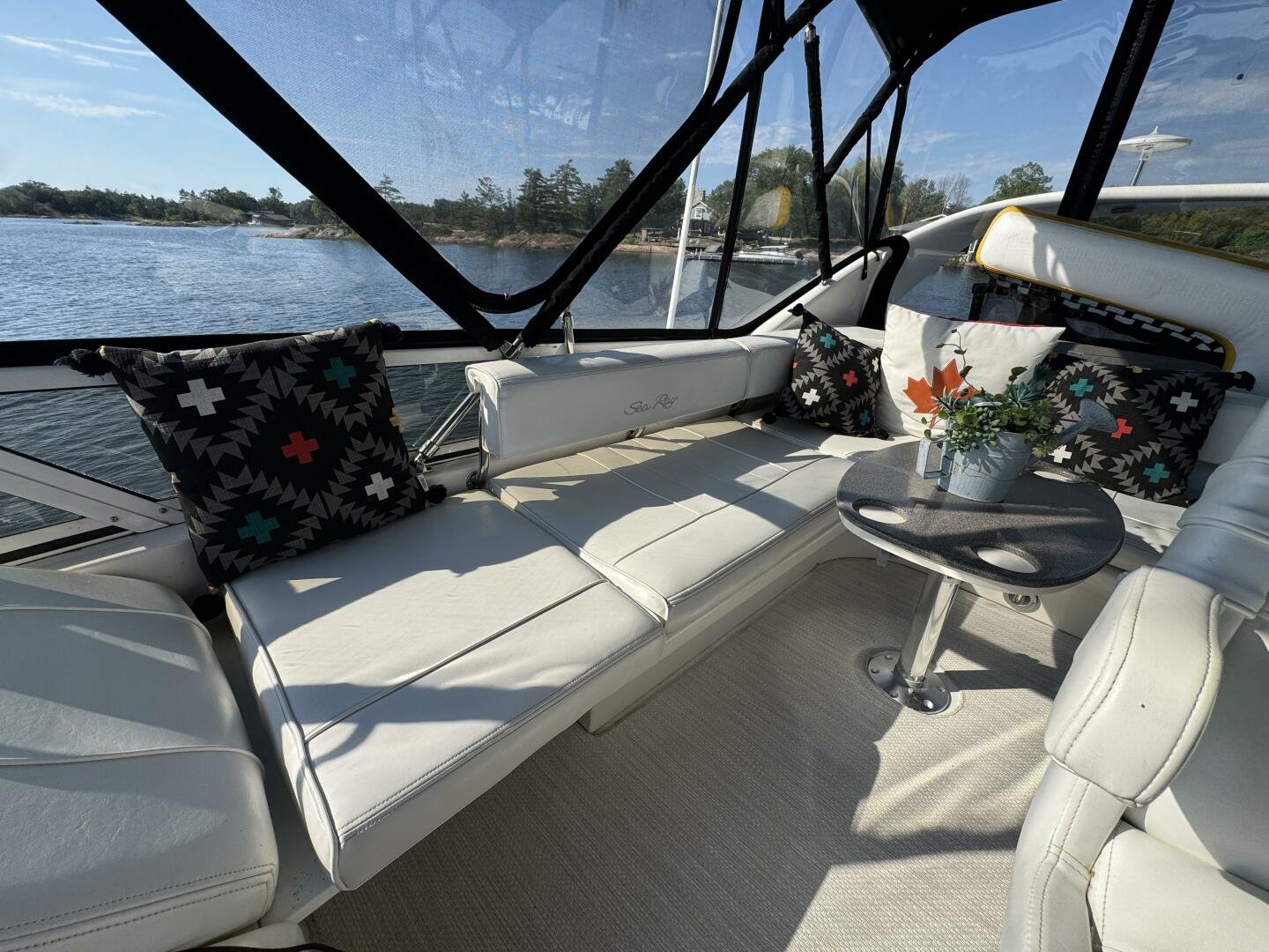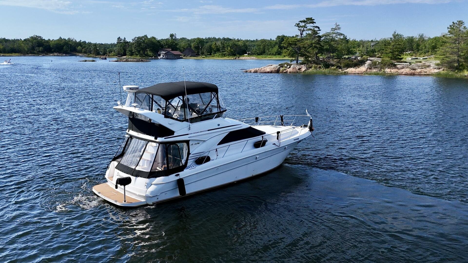 A clean, well-maintained, freshwater, Sea Ray 400 Sedan Bridge. A desirable boat and layout for cruising the Great Lakes. This example has been updated with new bridge/cockpit canvas, new interior/exterior flooring, and updated Raymarine chartplotter.
