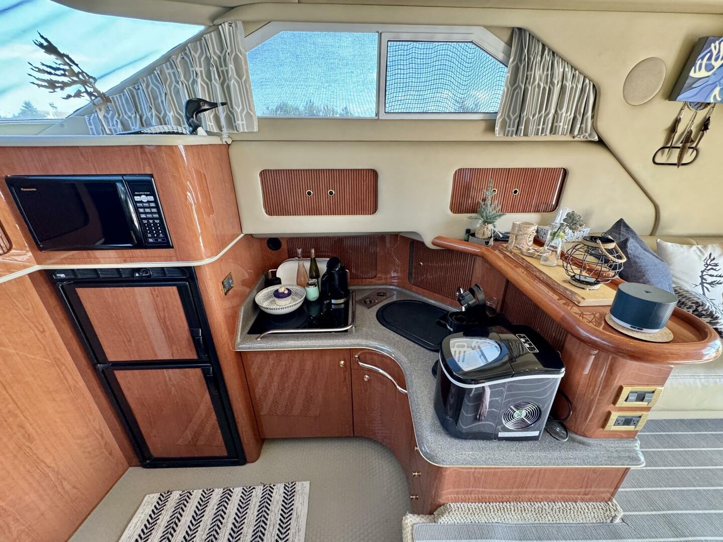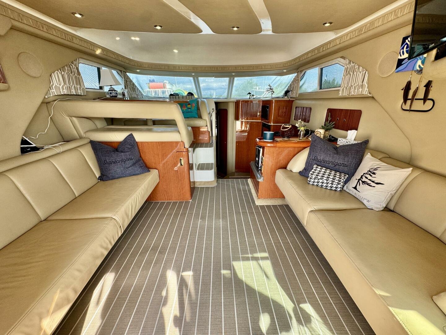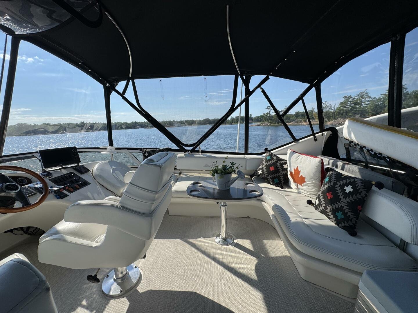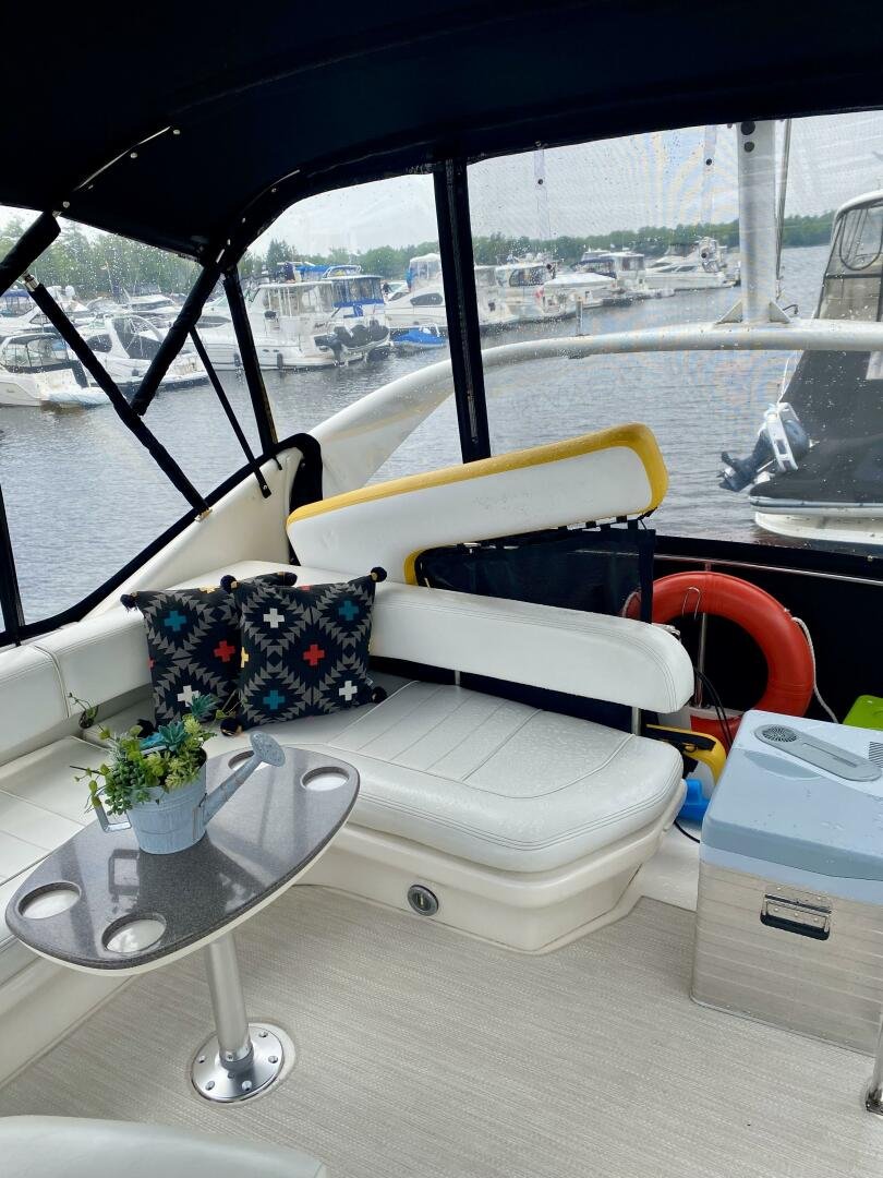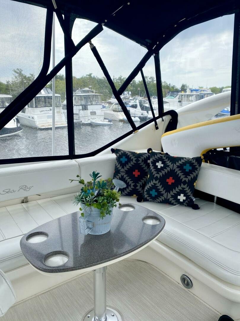 A clean, well-maintained, freshwater, Sea Ray 400 Sedan Bridge. A desirable boat and layout for cruising the Great Lakes. This example has been updated with new bridge/cockpit canvas, new interior/exterior flooring, and updated Raymarine chartplotter.