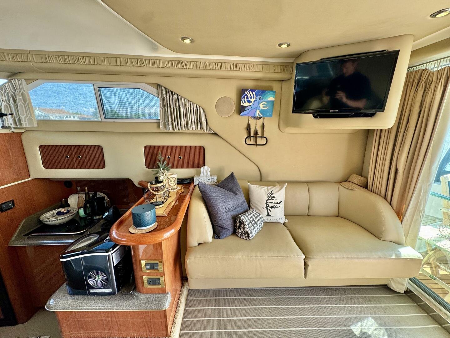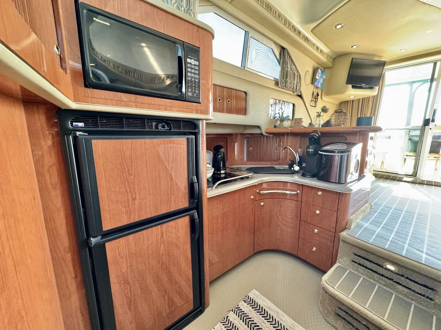 The magnificently finished galley has wood cabinetry, a new flush mounted three burner electric stove, a refrigerator with freezer and a microwave. The salon comes complete with an electric sleeper sofa, entertainment centre with flat screen TV and a full dinette.