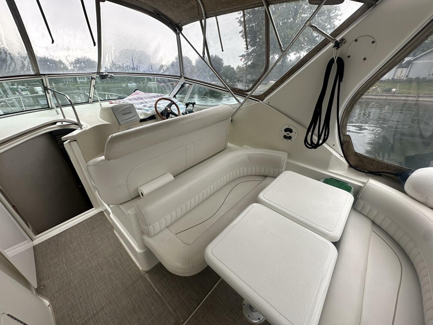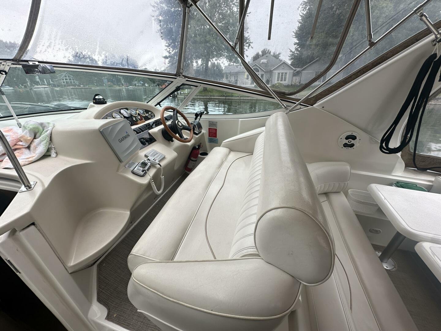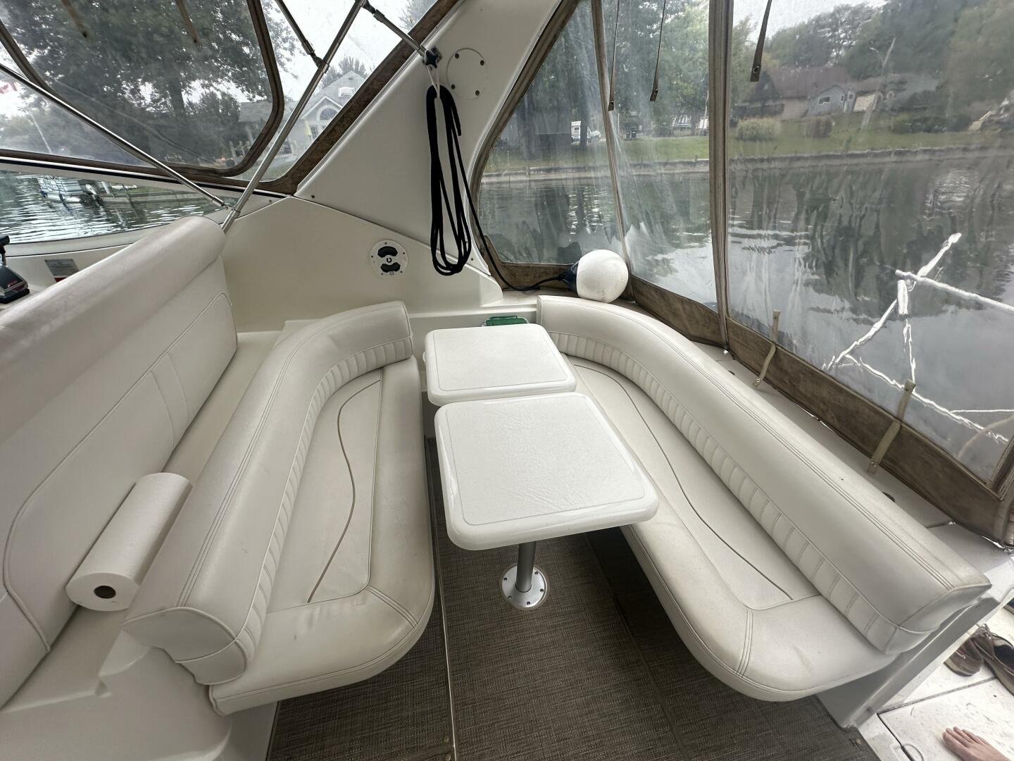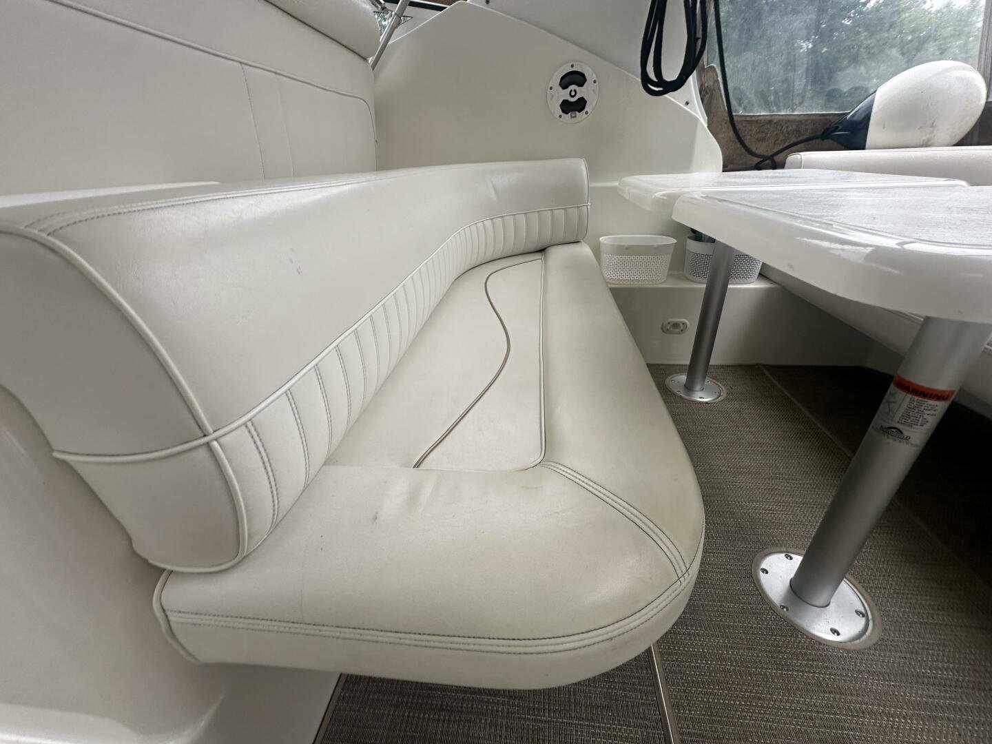 The 3075 Cruisers has a very desirable layout, with a large platform, spacious U-shaped seating that converts to a sunbed, a large helm bench seat, and a center line walkthrough.