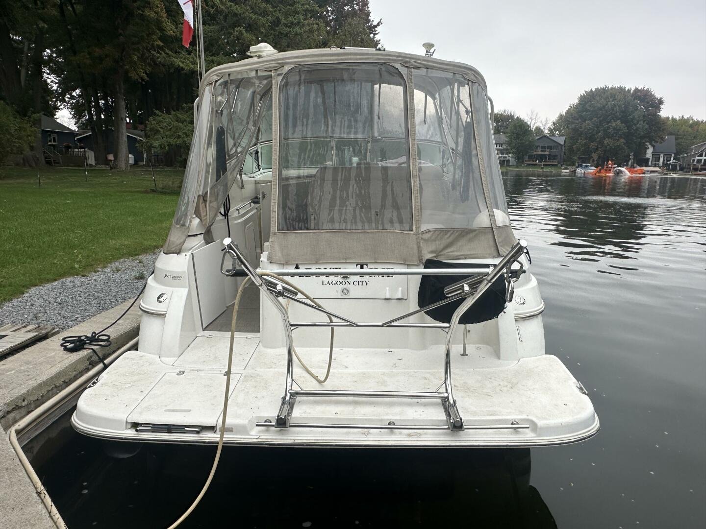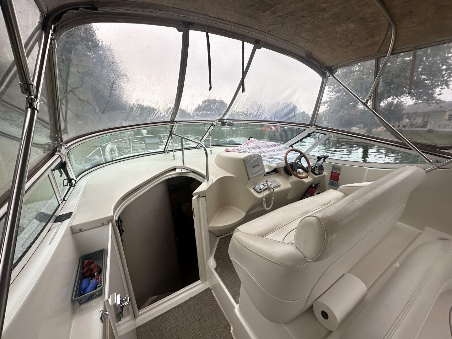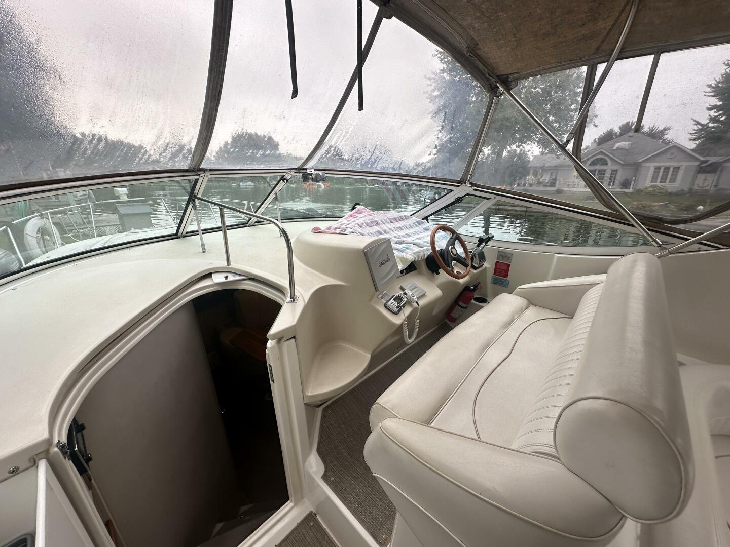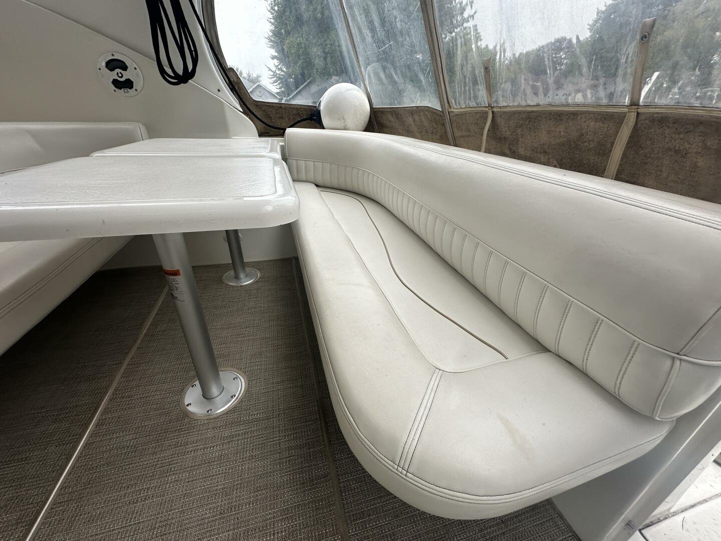 The 3075 Cruisers has a very desirable layout, with a large platform, spacious U-shaped seating that converts to a sunbed, a large helm bench seat, and a center line walkthrough.