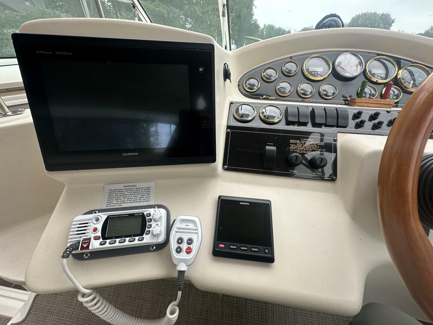 At the helm, all the electronics have been updated. Featuring a Garmin 7610XSV plotter, Garmin autopilot & electronic compass, VHF. At the controls, the shift cables have also been recently replaced.