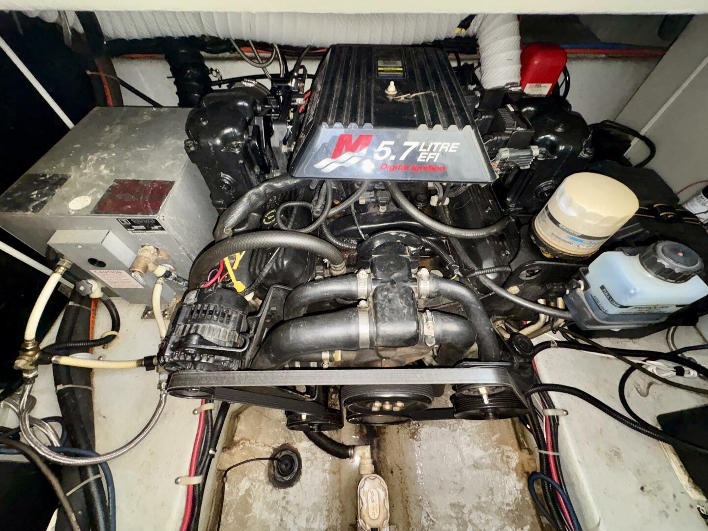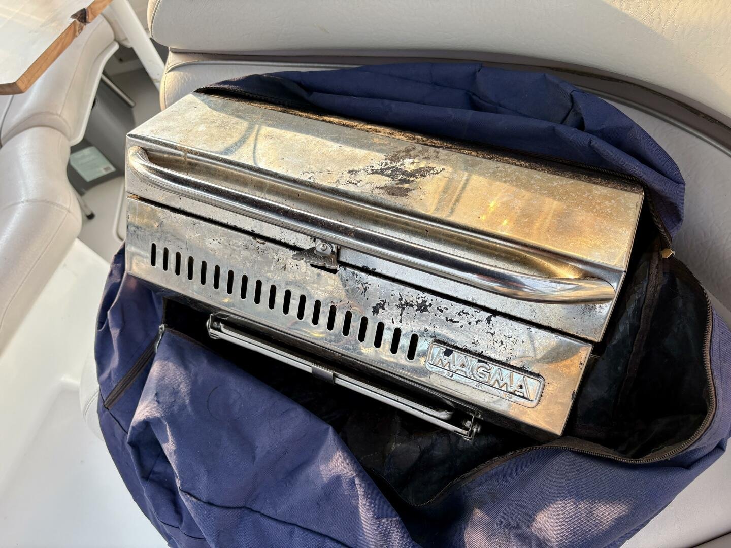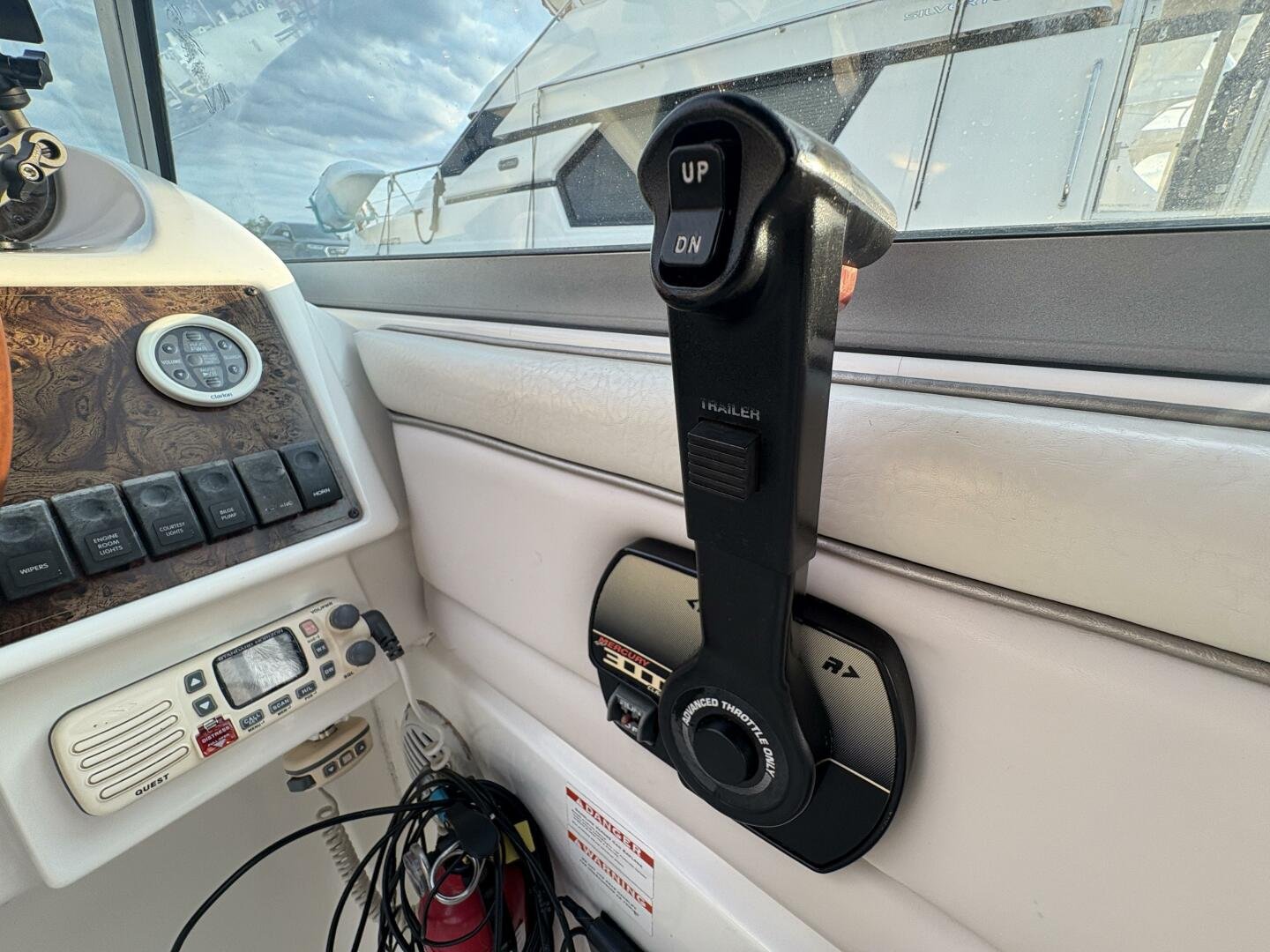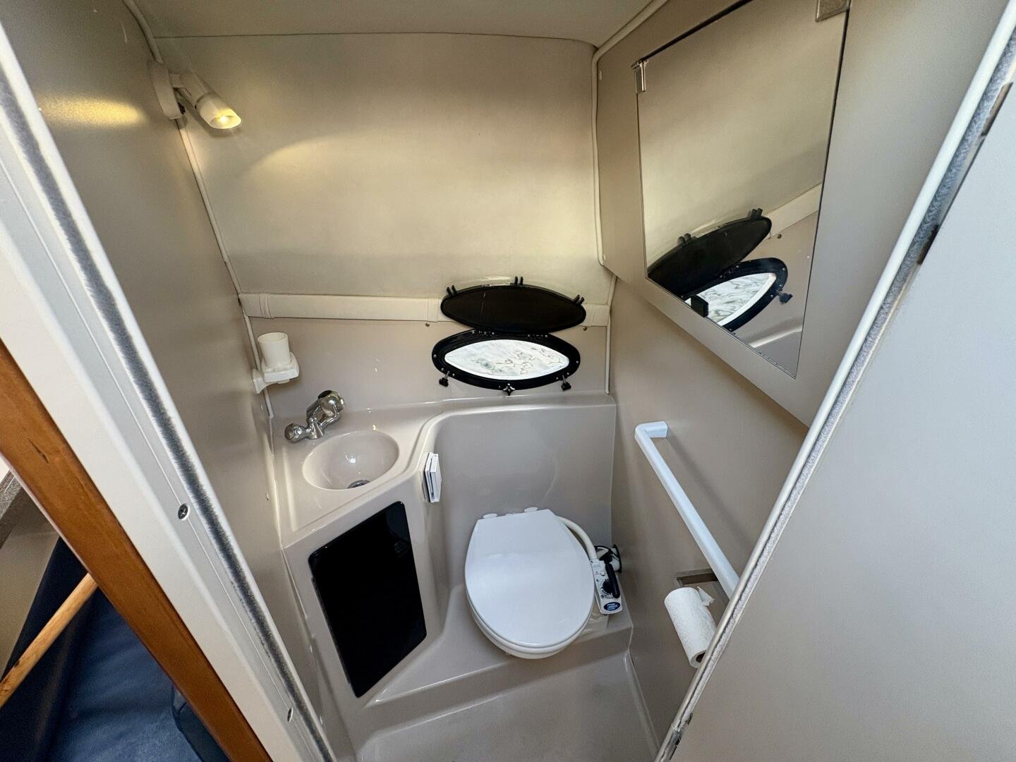 The spacious cockpit features plenty of seating, transom shower with hot water, a wet bar, fridge, and a custom made wooden table. Below deck, you’ll find a well-appointed cabin with a full galley, generous sleeping accommodations, with a large convertible dinette, queen mid-cabin berth, and enclosed head with shower. Three overhead hatches with screens provide excellent natural light and ventilation. Recent upgrades include a Raymarine charplotter, extended swimplatform, BBQ, 5000W inverter, and a 2023 gala dingy with 15hp engine with caddy included. This boat really offers great value for a 30ft express cruiser.
