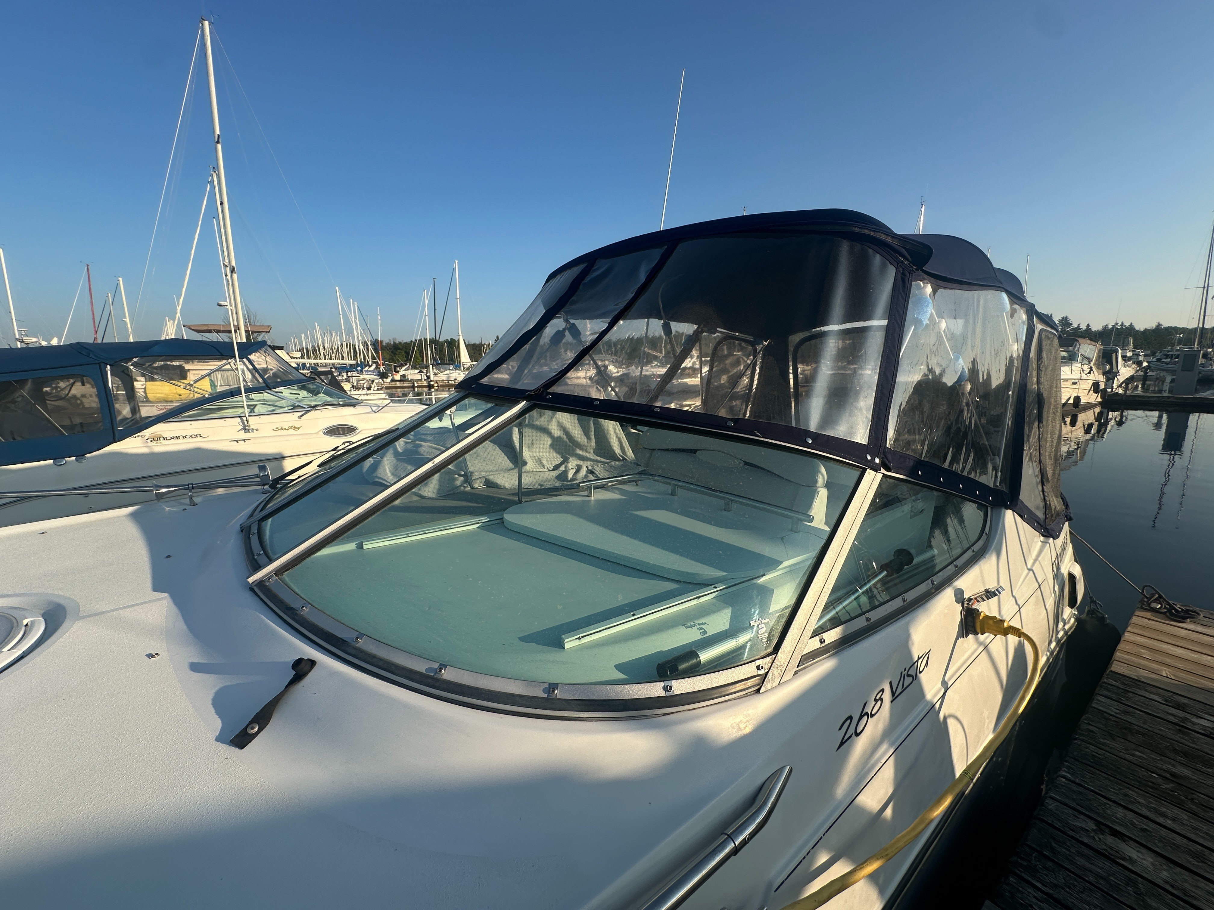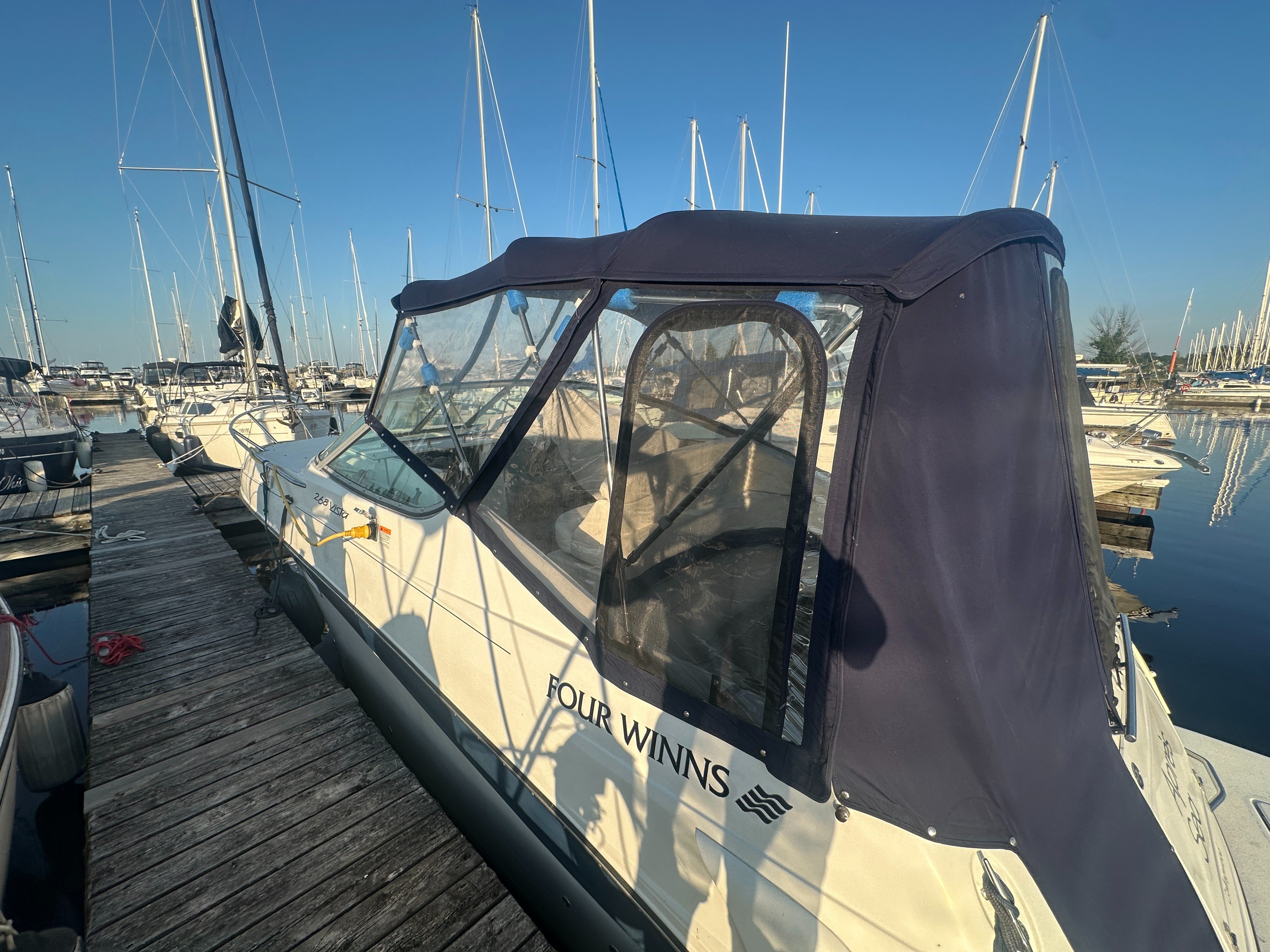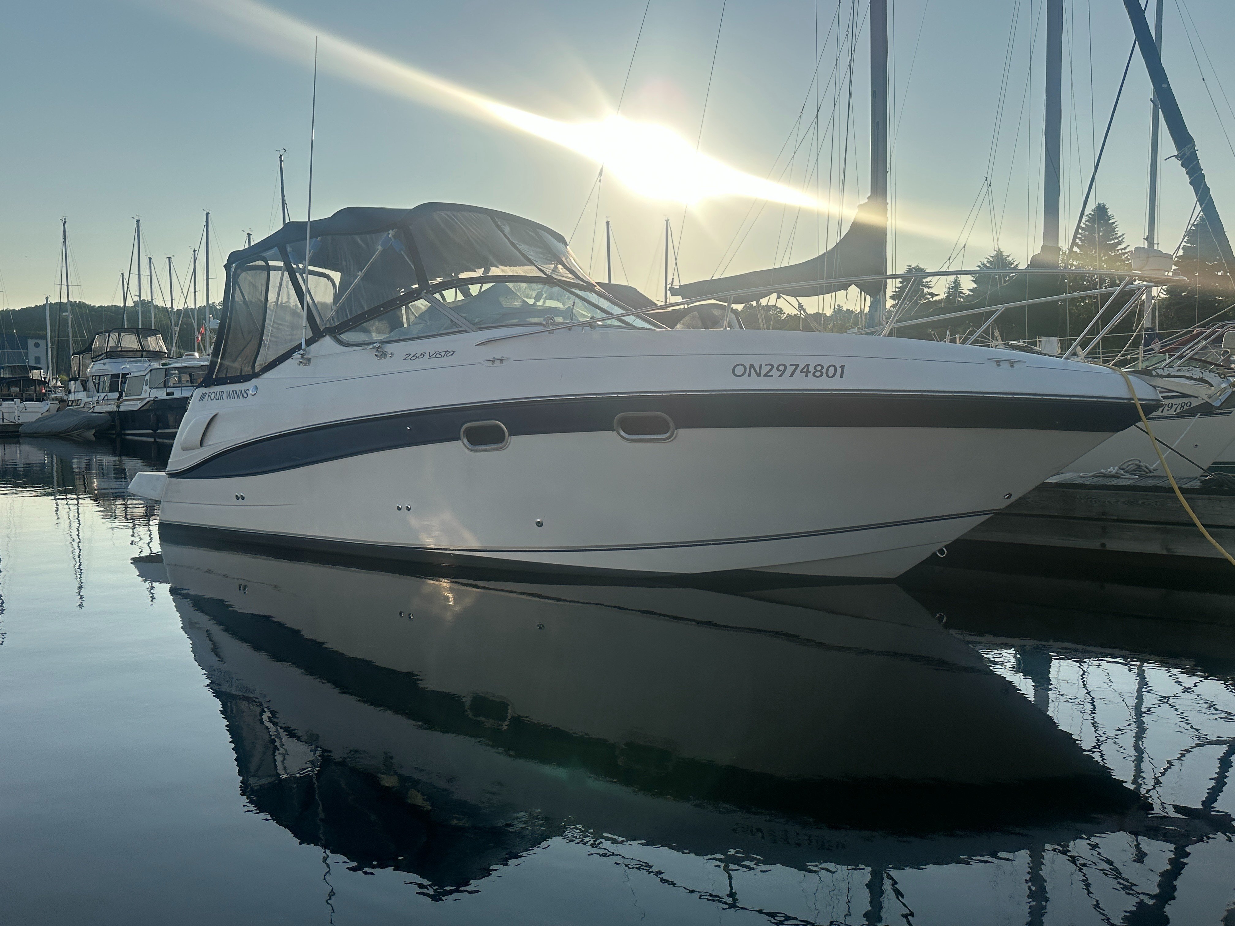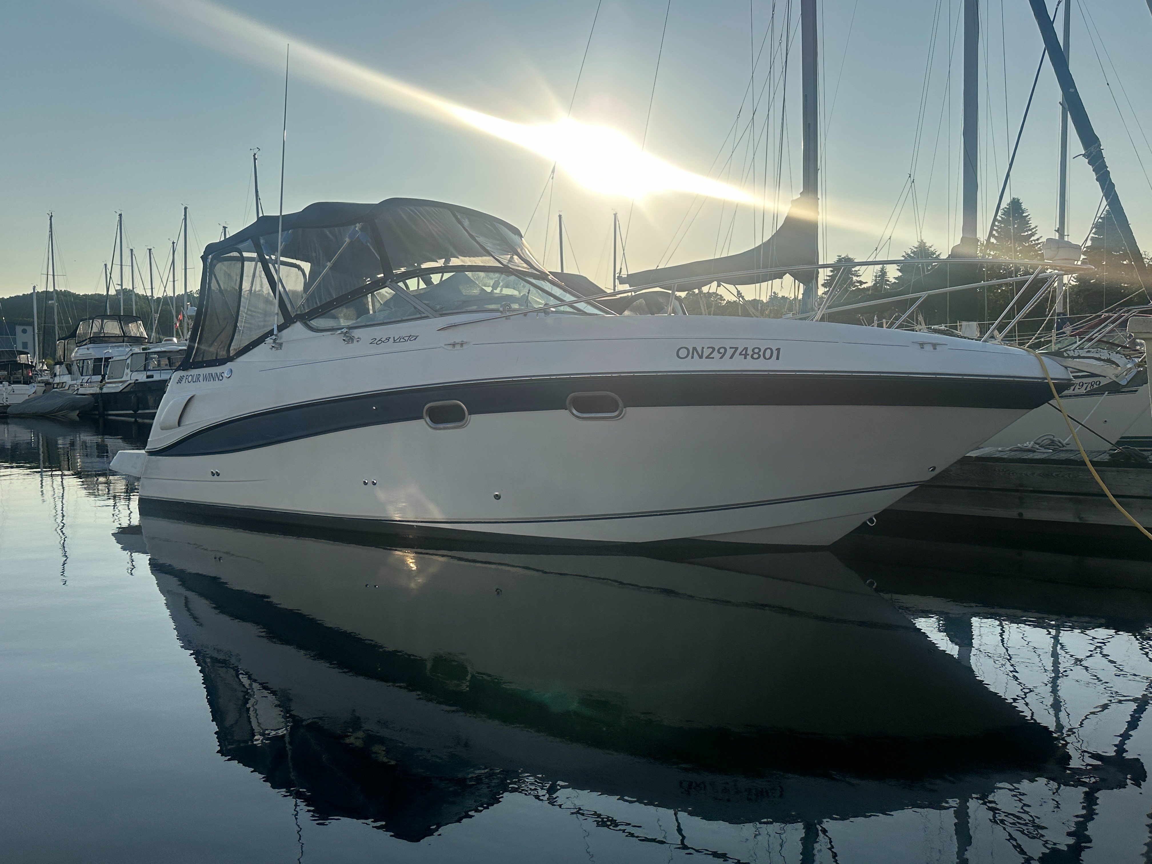Scale, balance, responsiveness - these are the hallmarks of the Four Winns 268 Vista cruiser. A blend of head-turning Four Winns styling with the convenience of full cruiser features, the 268 is an easy choice for a discriminating boater. Details like a spacious extended swim platform enhance cruising pleasure. The 268 Vista has big-boat cabin detailing, a roomy cockpit, and a complete cruiser-style helm.