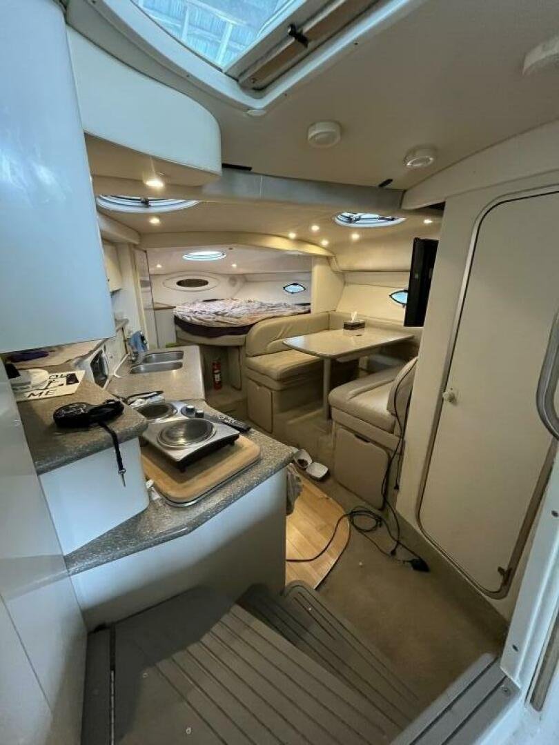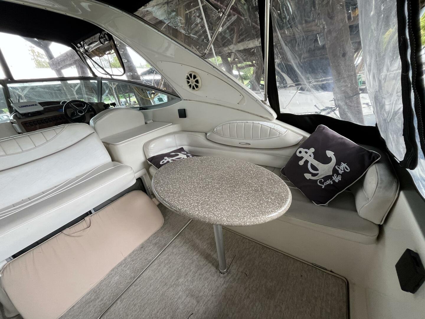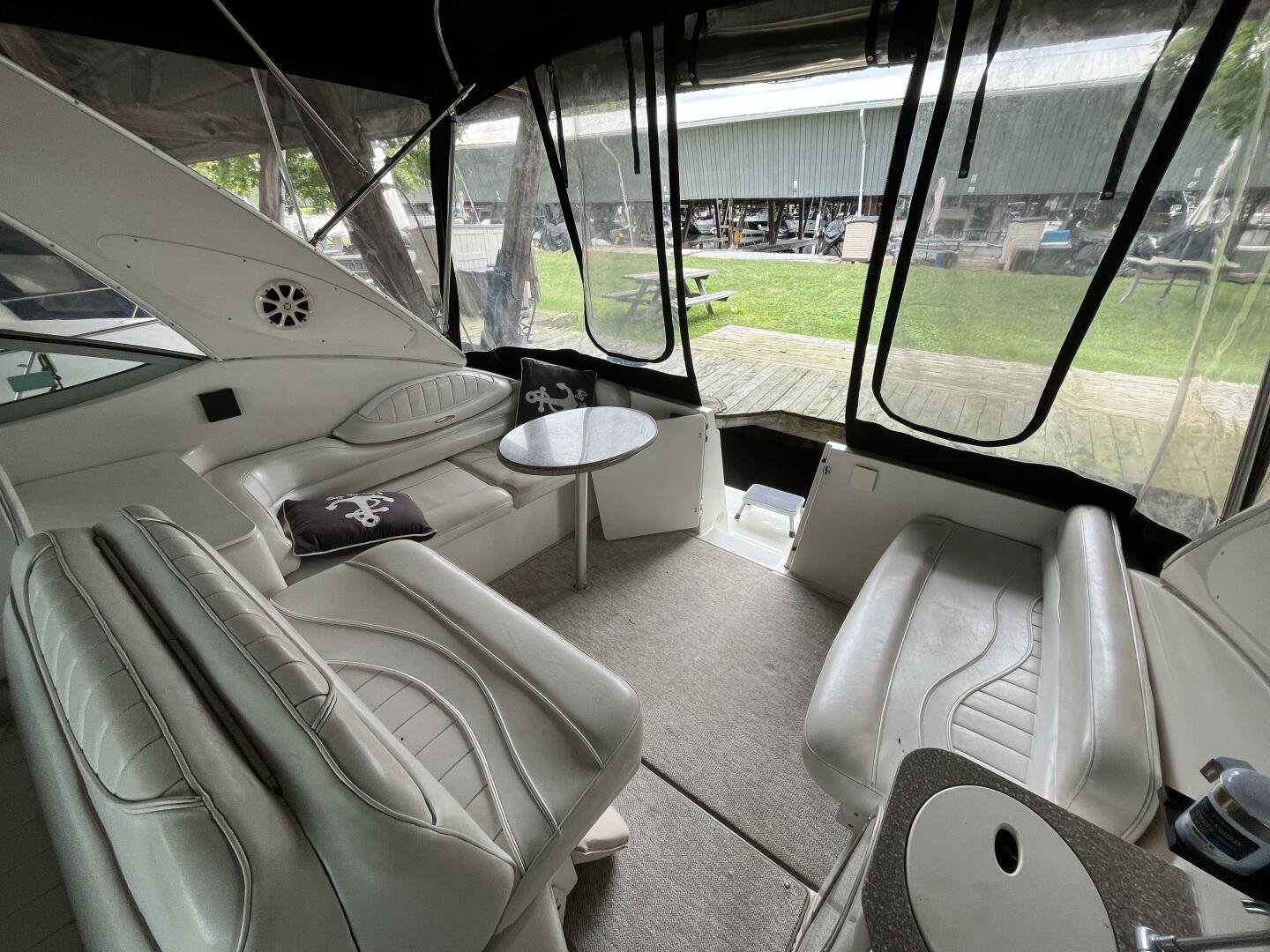 - Spacious cockpit – Ample seating for entertaining, with a wet bar and transom door