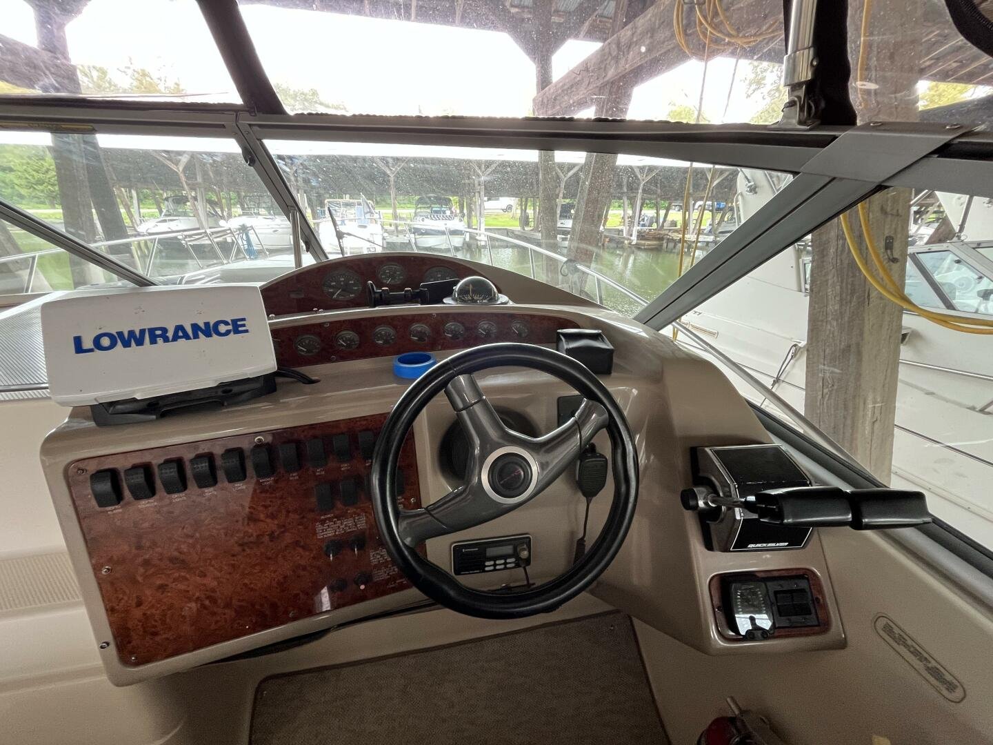 Whether you’re a seasoned boater or looking to upgrade into a larger cruiser, the Maxum 3300 SCR offers excellent value in a stylish, capable package. The boat is stored in a covered slip, helping to preserve the exterior and reduce wear from sun exposure.