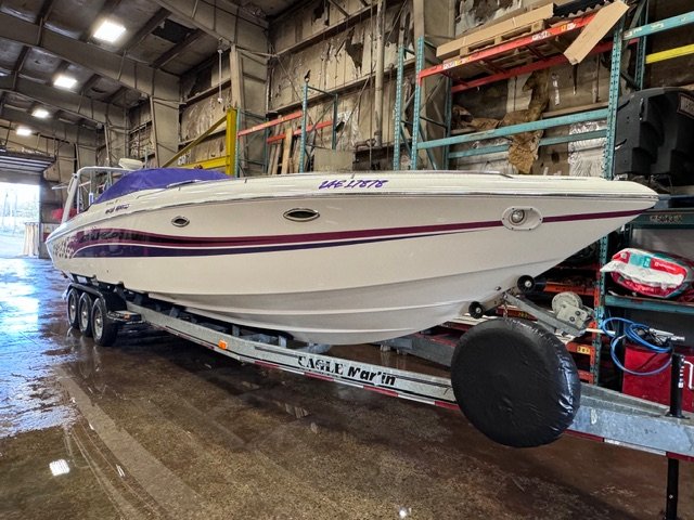 Introducing a true masterpiece of power and style, the custom-built 2000 Powerquest 380 Avenger. This exceptional offshore performance boat has been meticulously crafted with precision and attention to detail, offering an unparalleled boating experience for enthusiasts and thrill-seekers alike. No expense spared - shows 10/10.