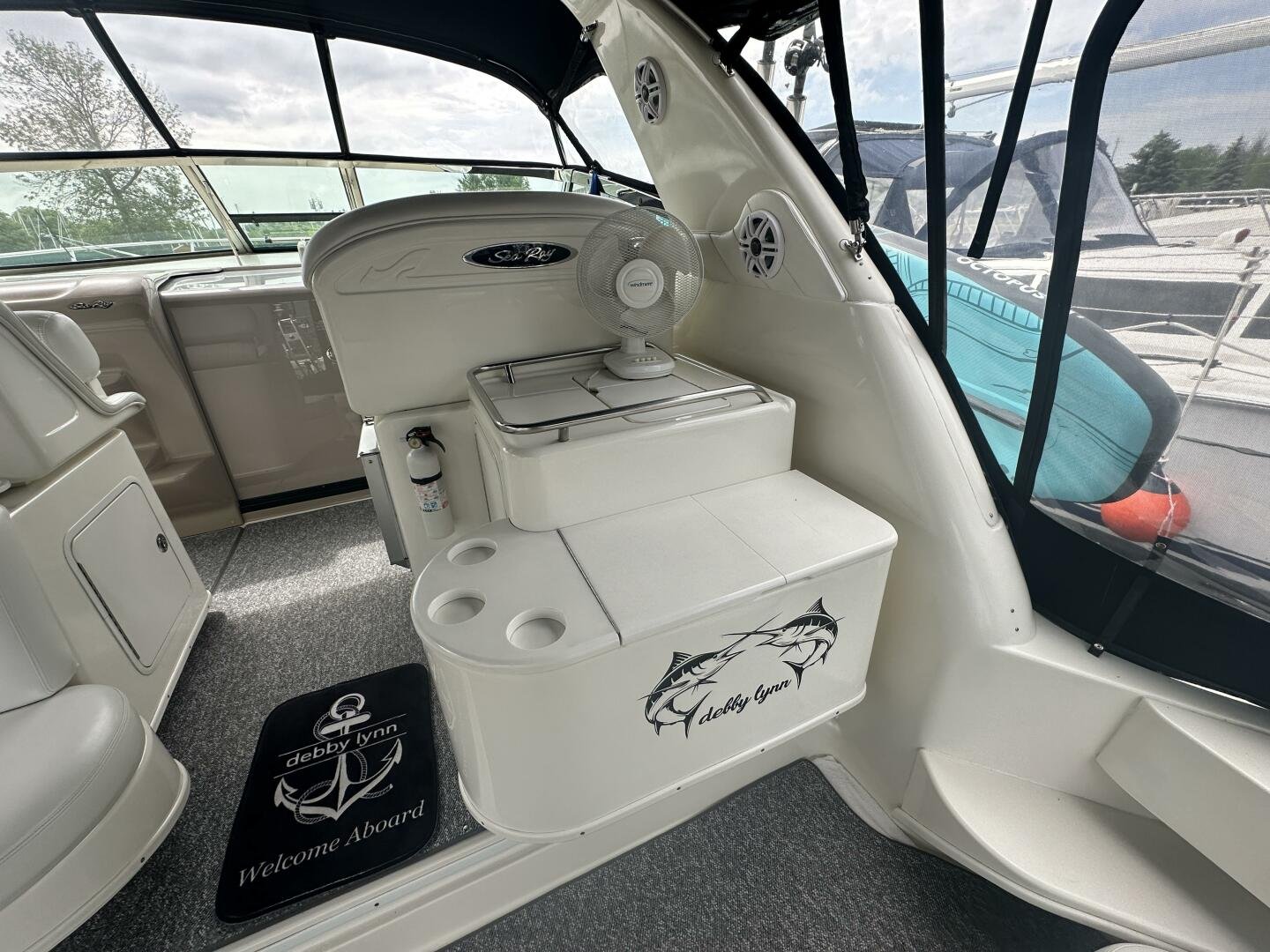 The Sea Ray 340 Amberjack is an extremely versatile boat, capable of fishing activities as well as comfortable family cruising. It is one of the roomiest boats in her class, with a 13'5'' beam. A pair of MerCruiser 8.1s push this boat to a 20-knot cruise, and a top end close to 30-knots.