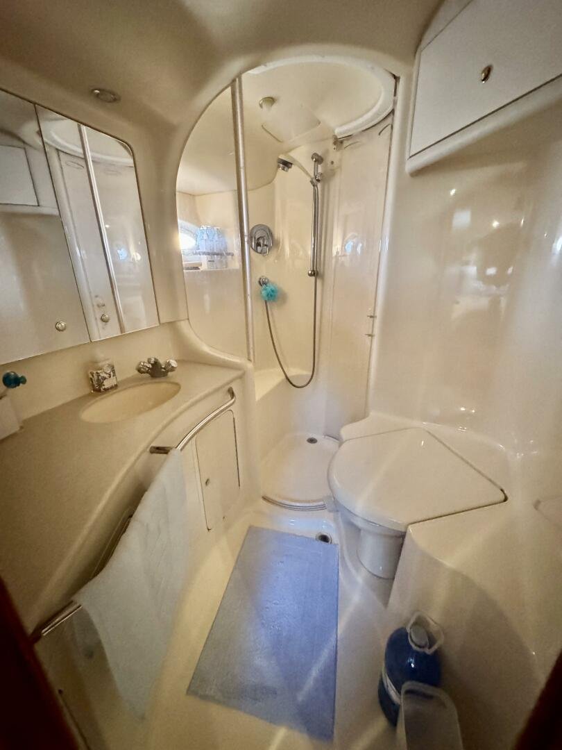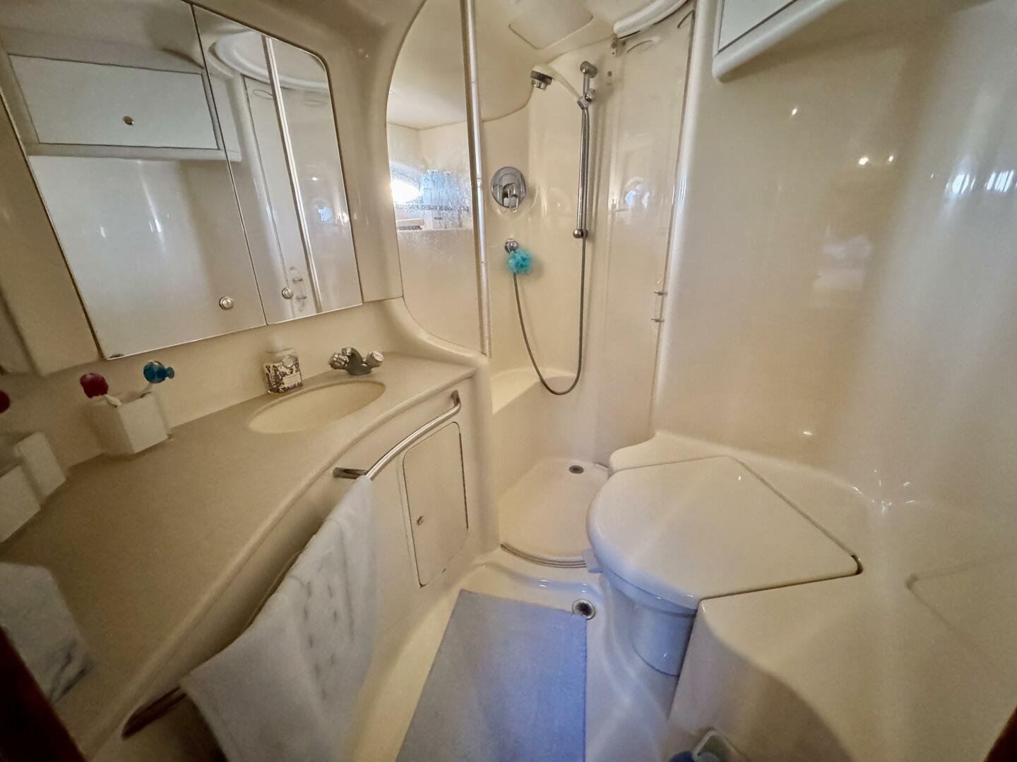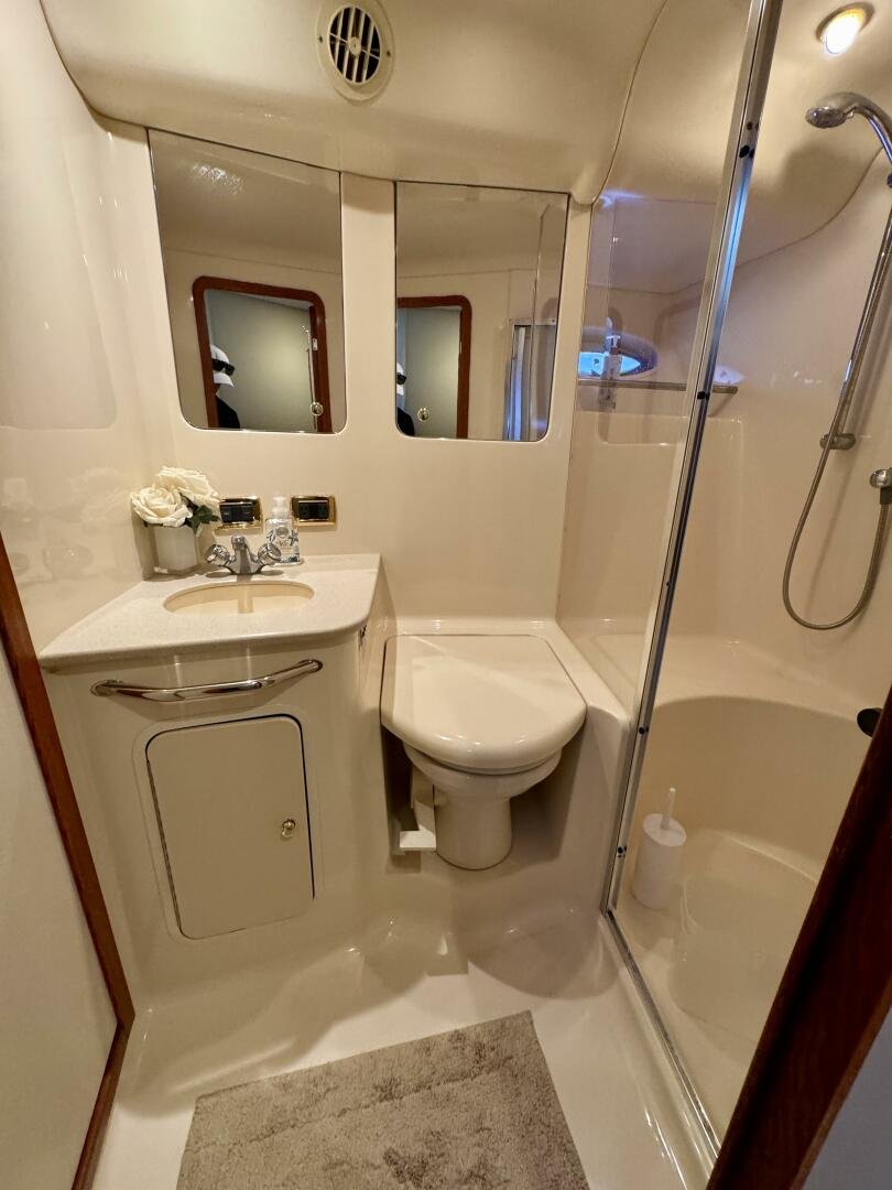 • Three staterooms, two with their own ensuite head, shower, with the third sharing with the VIP stateroom