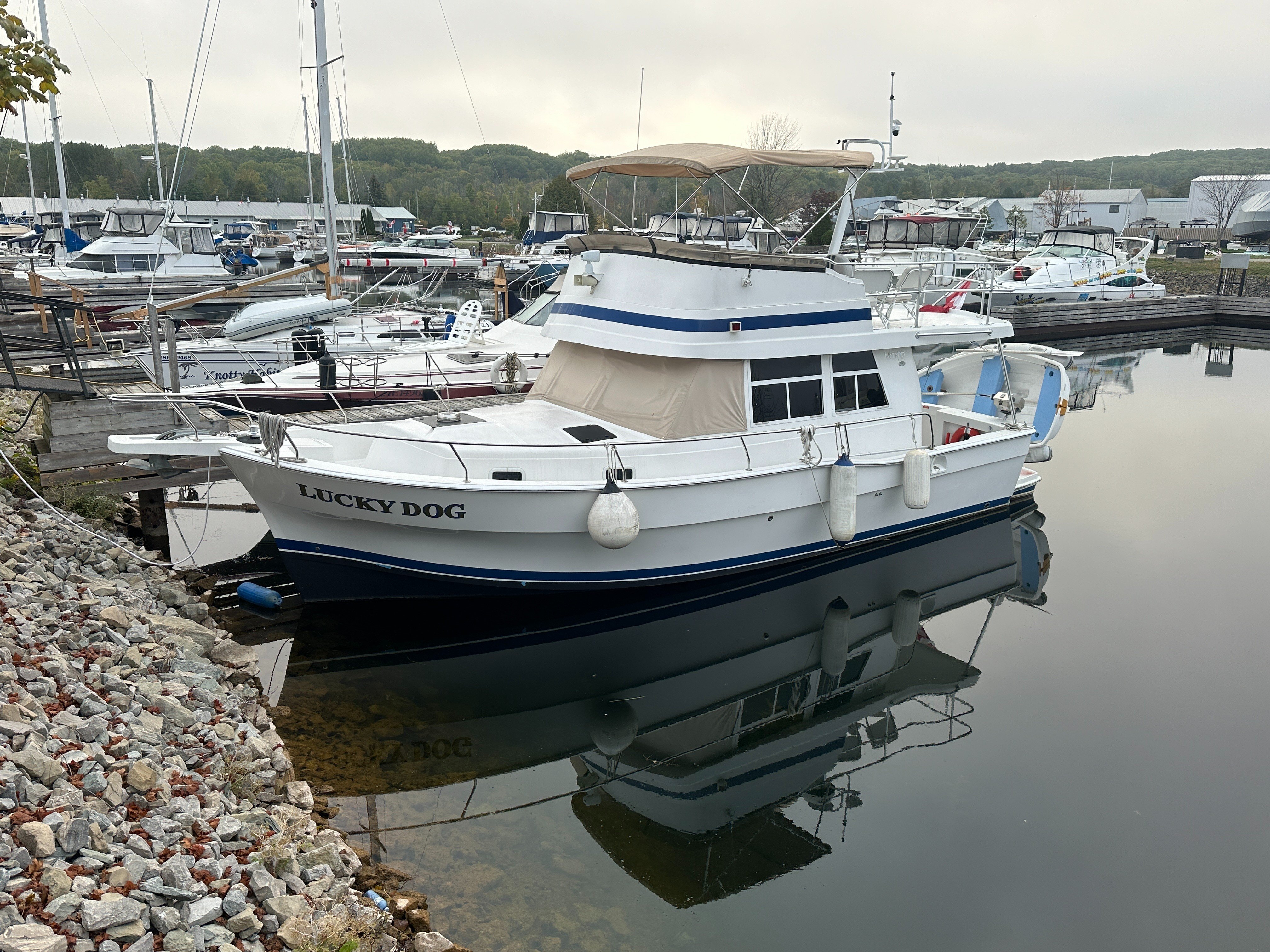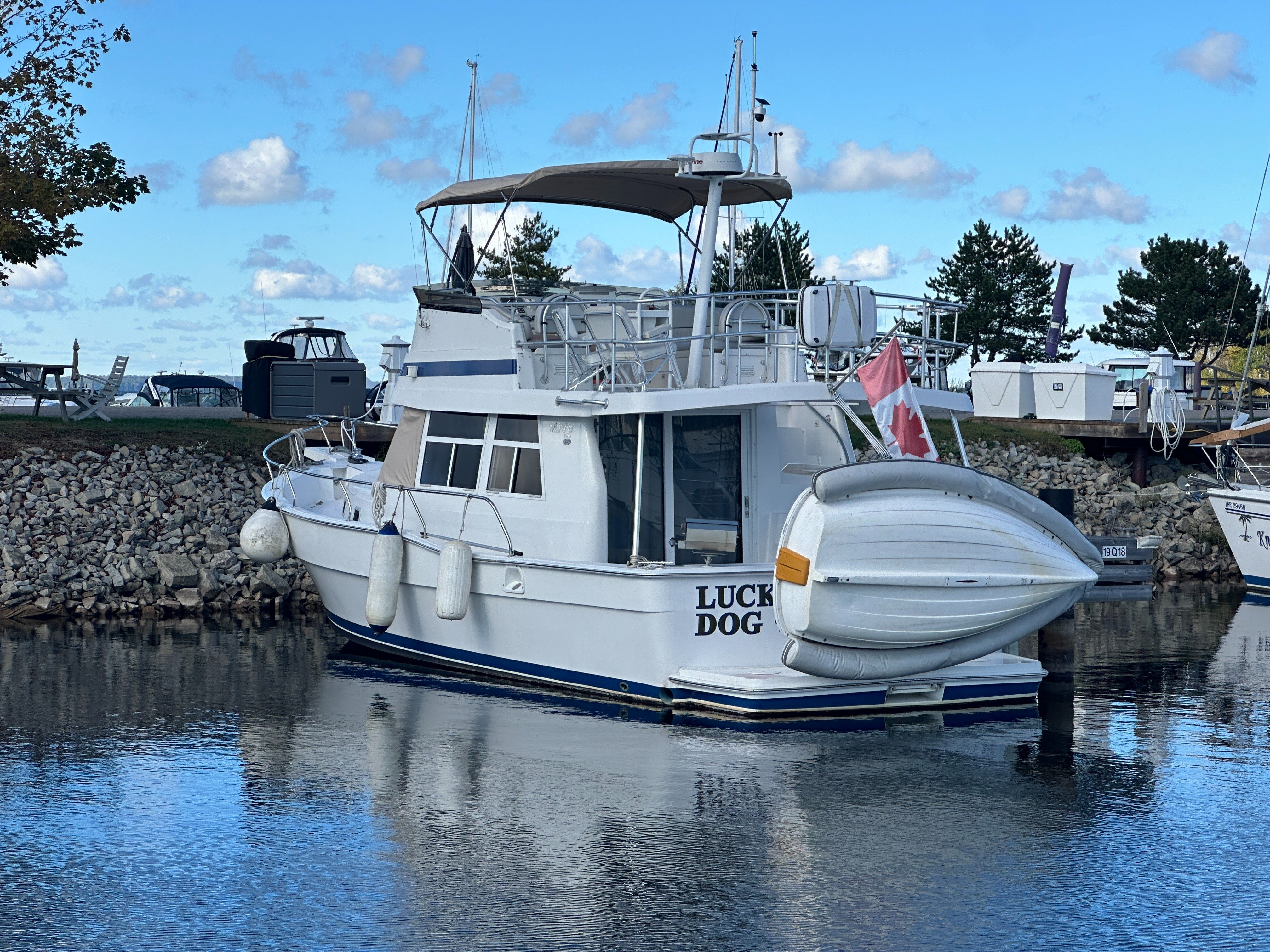 The Mainship 390 is at the top of her class for fast trawlers. Powered by twin Yanmar 4LHA-STP diesels with 1433 hours. This vessel will reach a top speed of 18 knots, and cruise at 14 knots. "LUCKY DOG" is a Federally documented vessel currently located on the freshwater Georgian Bay.