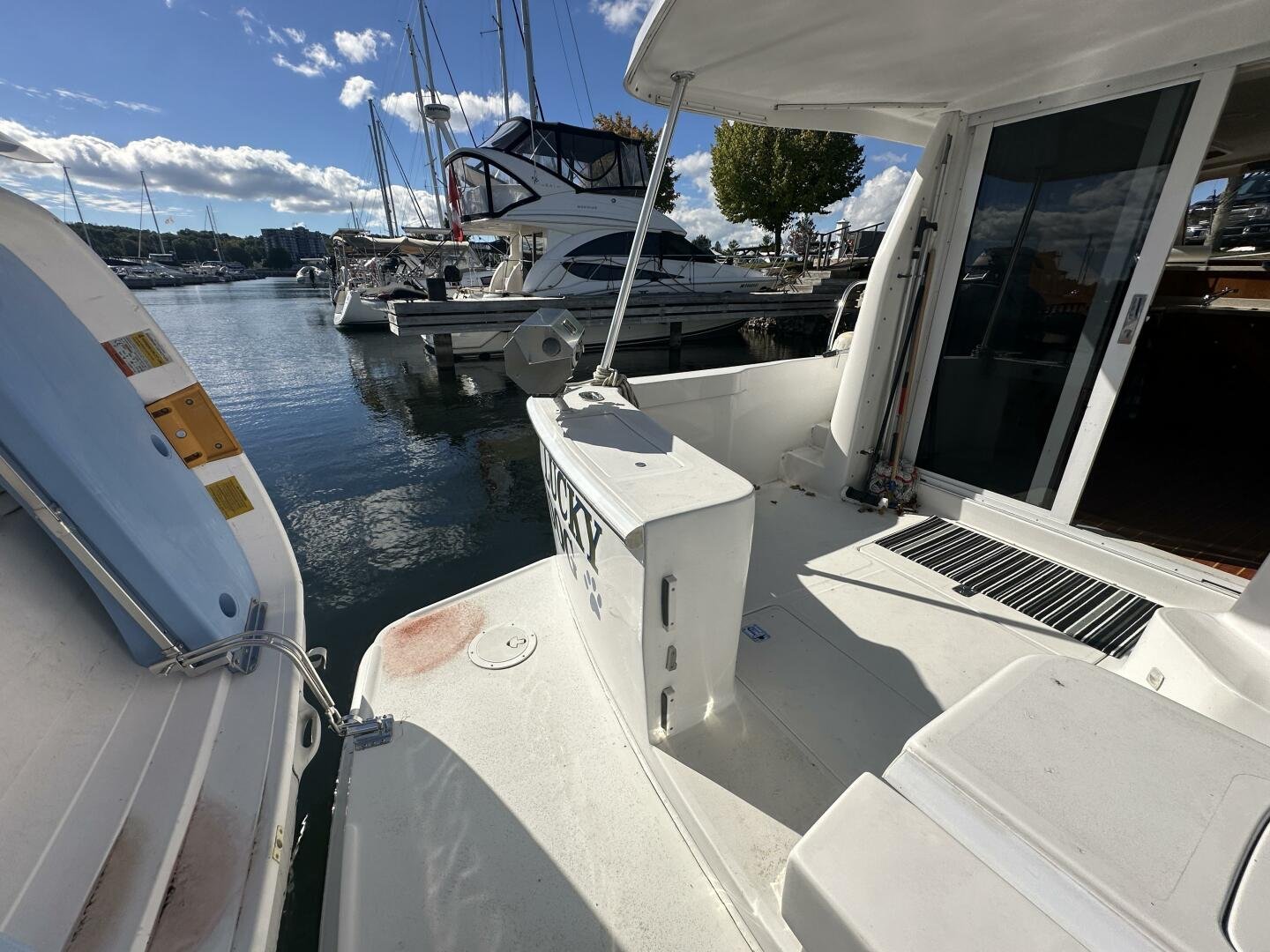 The Mainship 390 is at the top of her class for fast trawlers. Powered by twin Yanmar 4LHA-STP diesels with 1400 hours. This vessel will reach a top speed of 18 knots, and cruise at 14 knots. "LUCKY DOG" is a Federally documented vessel currently located on the freshwater Georgian Bay.