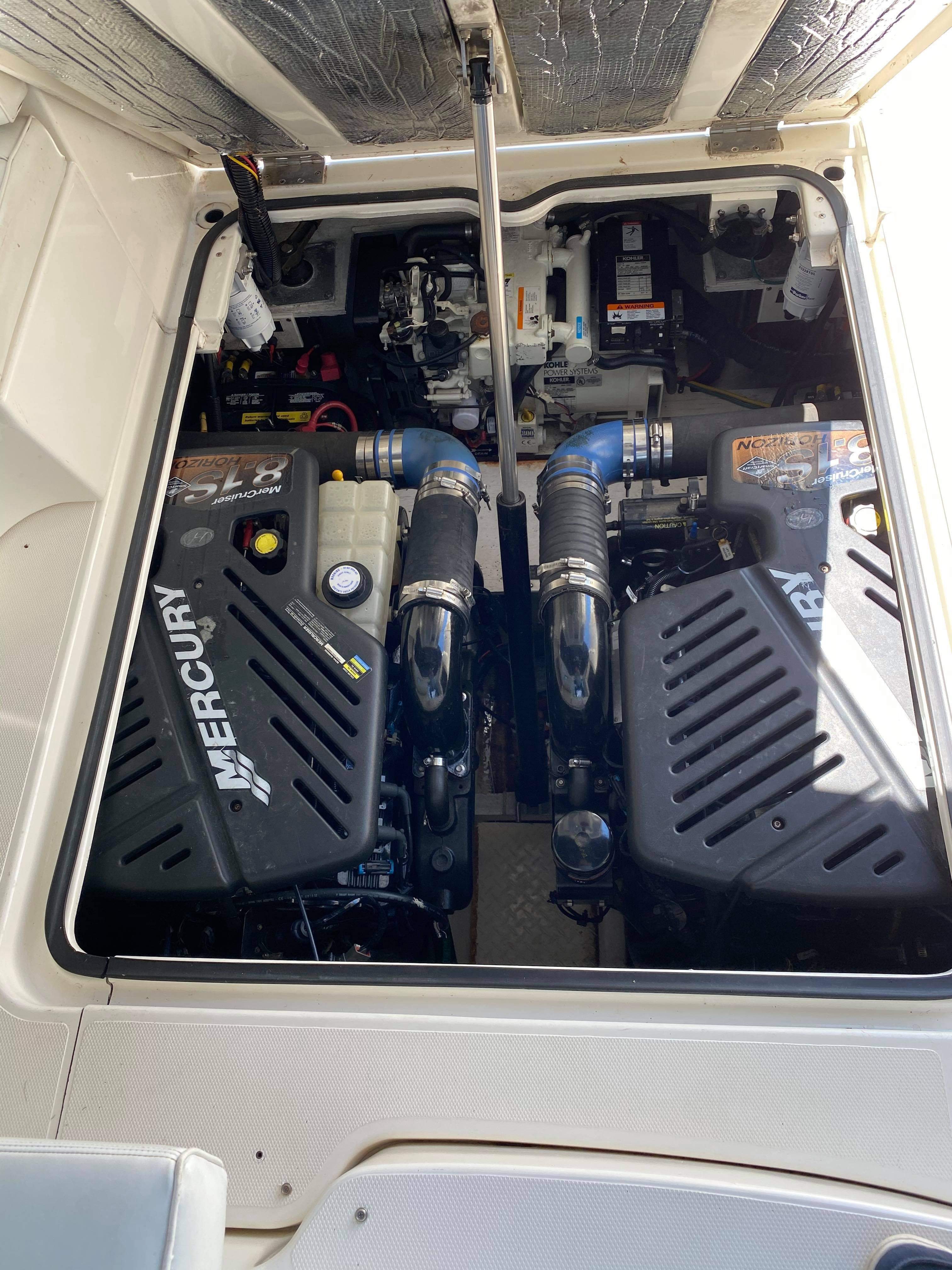 Powered by a pair of twin MerCruiser 8.L Horizons with only 470 hours aside and Kholer generator with 315 hours.