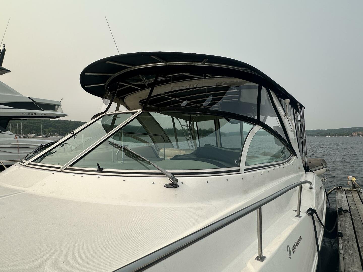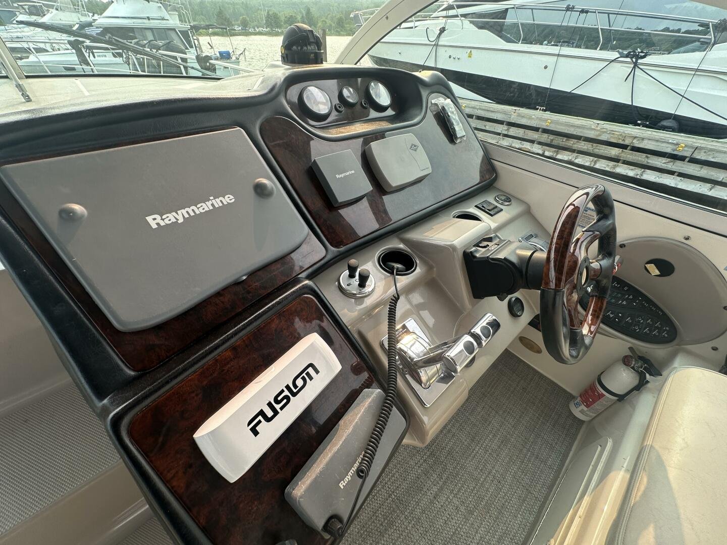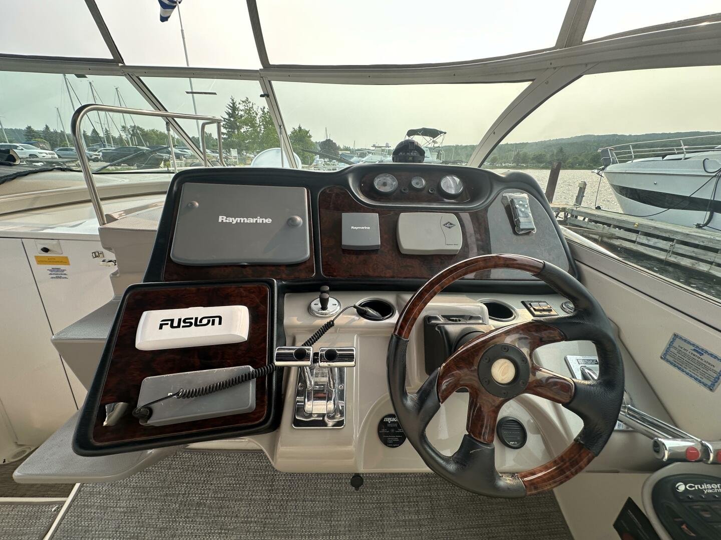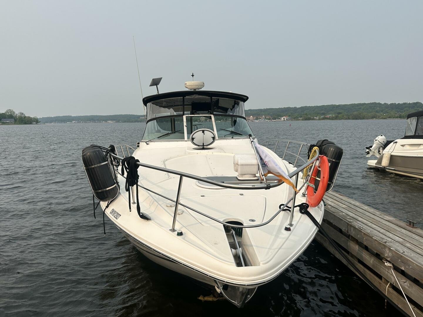 This freshwater example has a large custom aluminum canvas hardtop, fully enclosed by canvas. The cockpit provides ample seating and room for entertaining, with a bar sink and freezer. With the added bow & stern thruster, and windshield walk-through, handling this boat at the dock is a dream. The interior layout is spacious with a well-appointed galley, day head, and private forward stateroom with a separate head and shower. The vessel is also equipped with 800W in solar with a 2800W inverter, paired with 6x 428AH 6V Rolls batteries.
