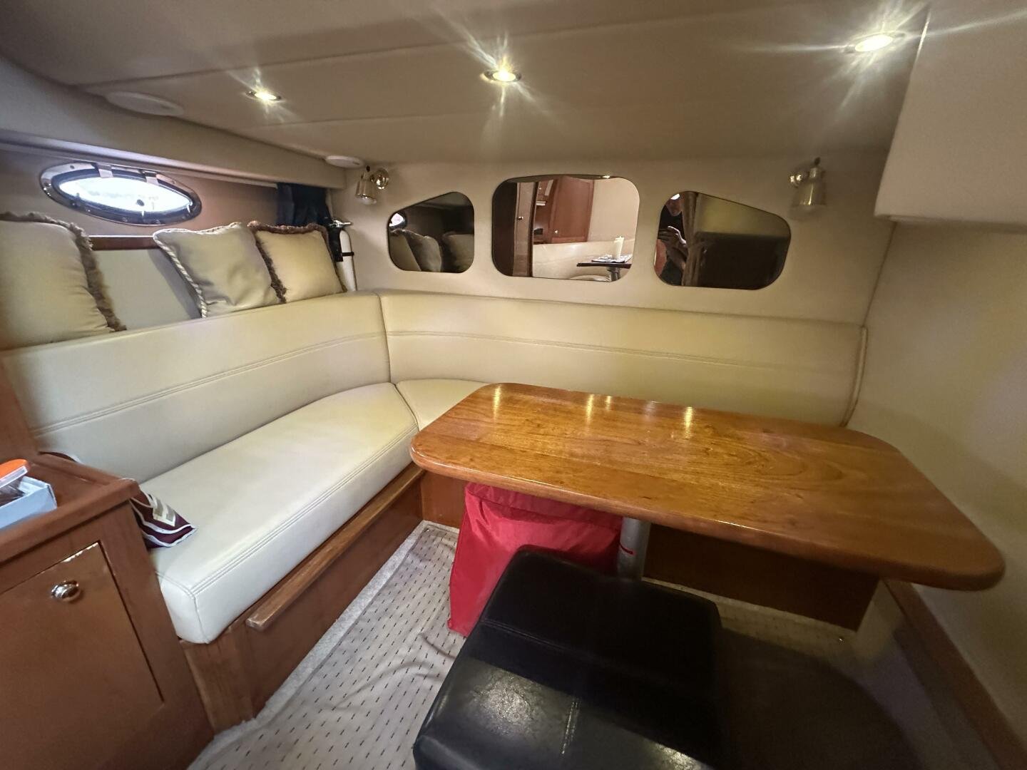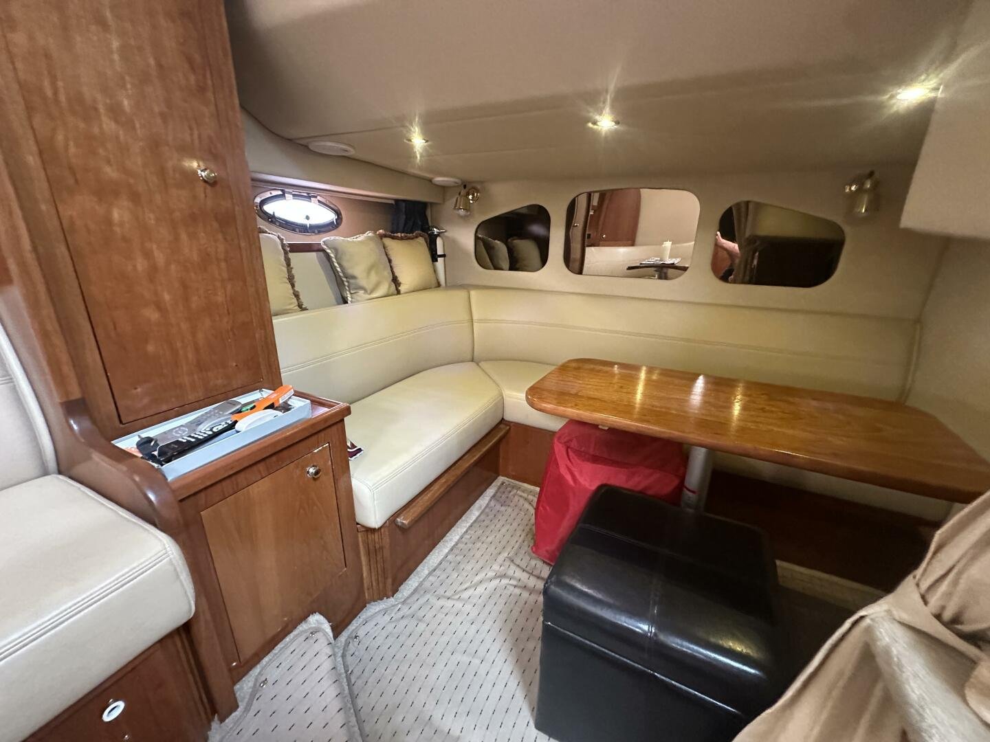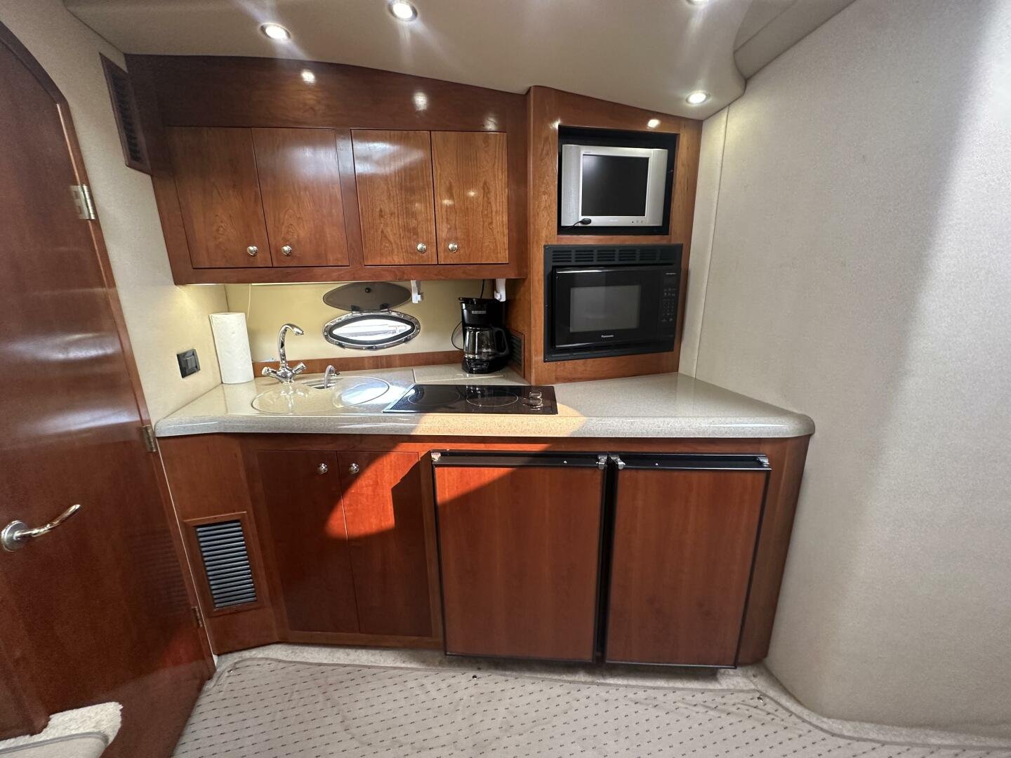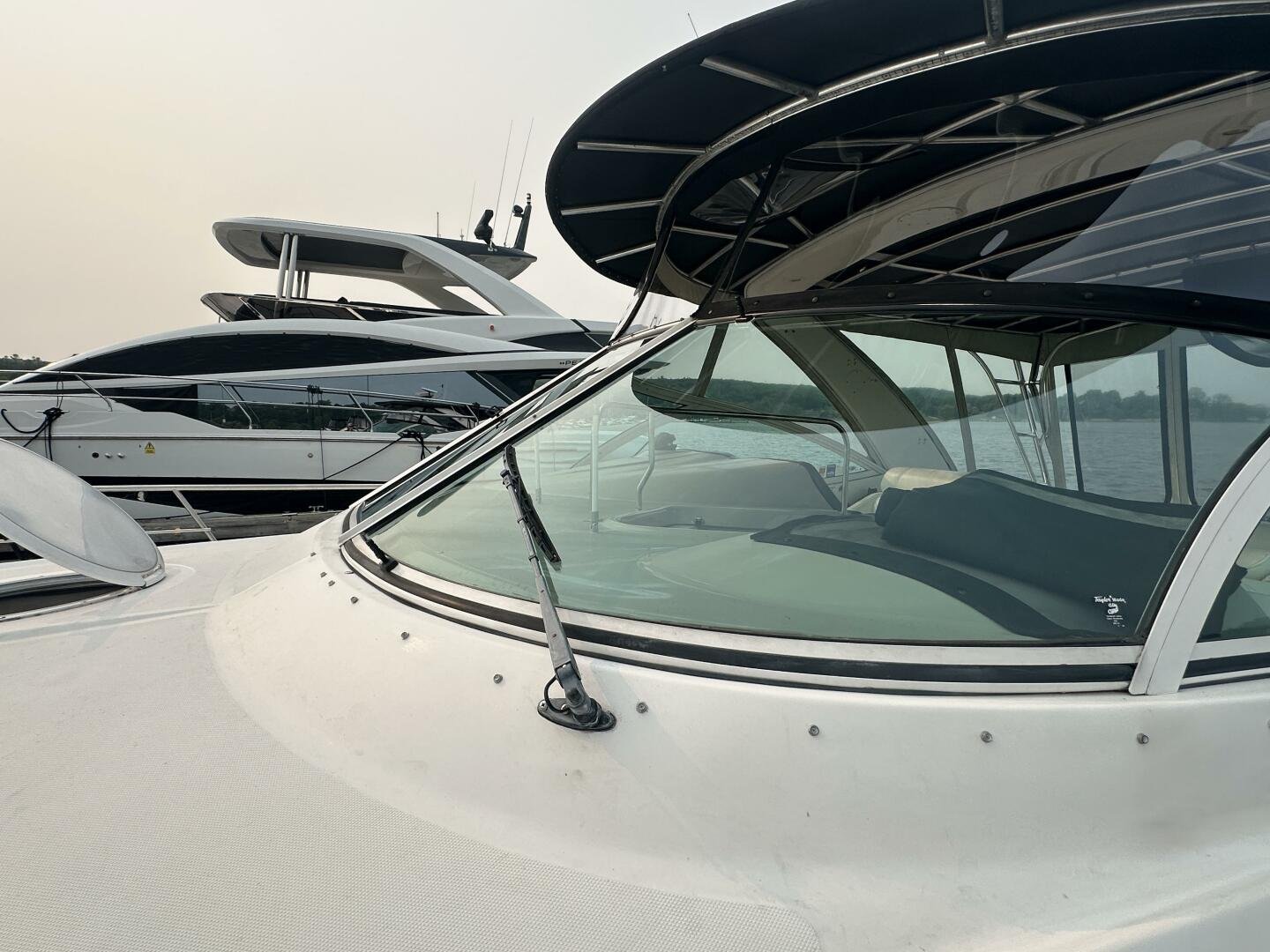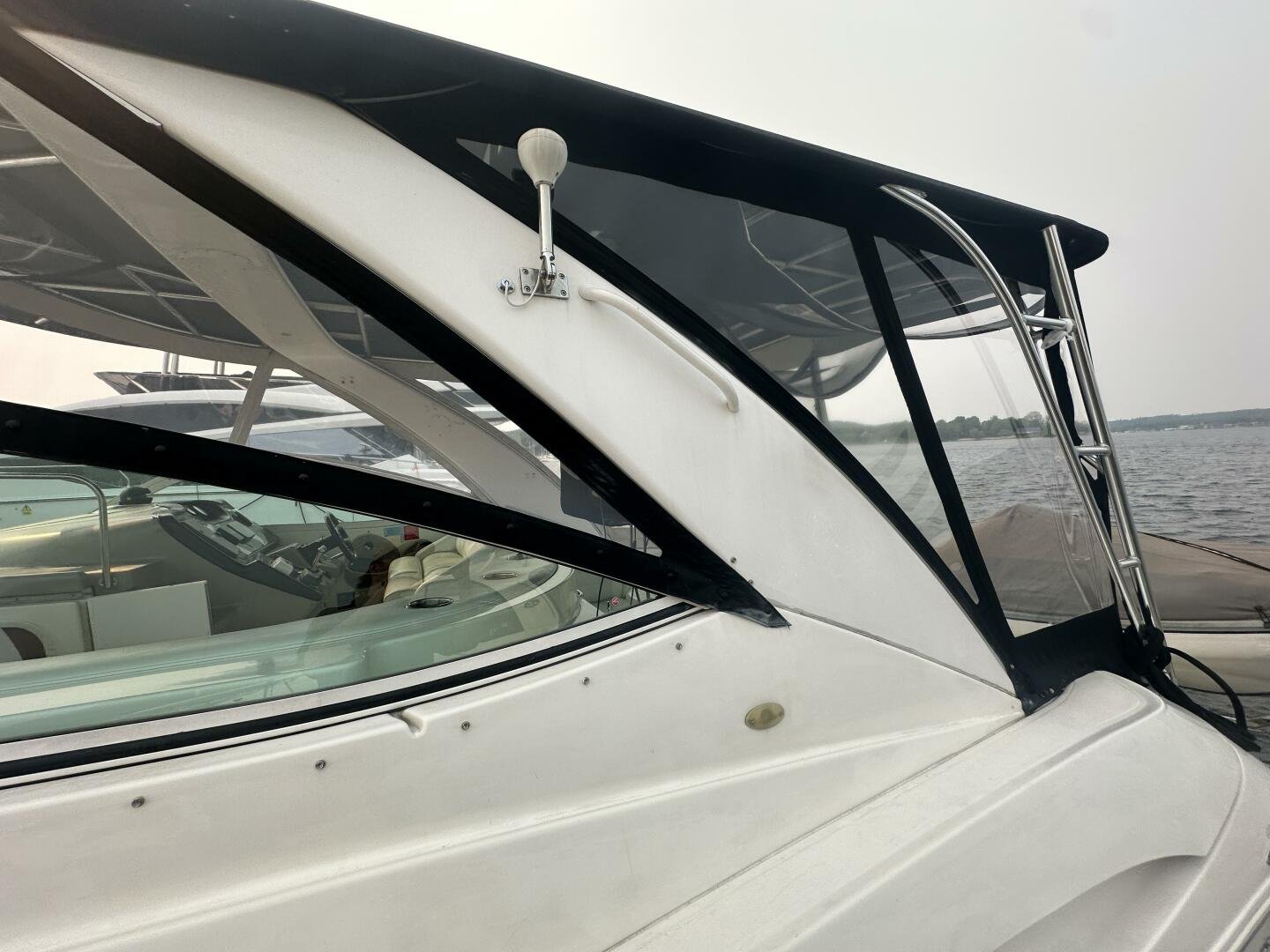 This freshwater example has a large custom aluminum canvas hardtop, fully enclosed by canvas. The cockpit provides ample seating and room for entertaining, with a bar sink and freezer. With the added bow & stern thruster, and windshield walk-through, handling this boat at the dock is a dream. The interior layout is spacious with a well-appointed galley, day head, and private forward stateroom with a separate head and shower. The vessel is also equipped with 800W in solar with a 2800W inverter, paired with 6x 428AH 6V Rolls batteries.