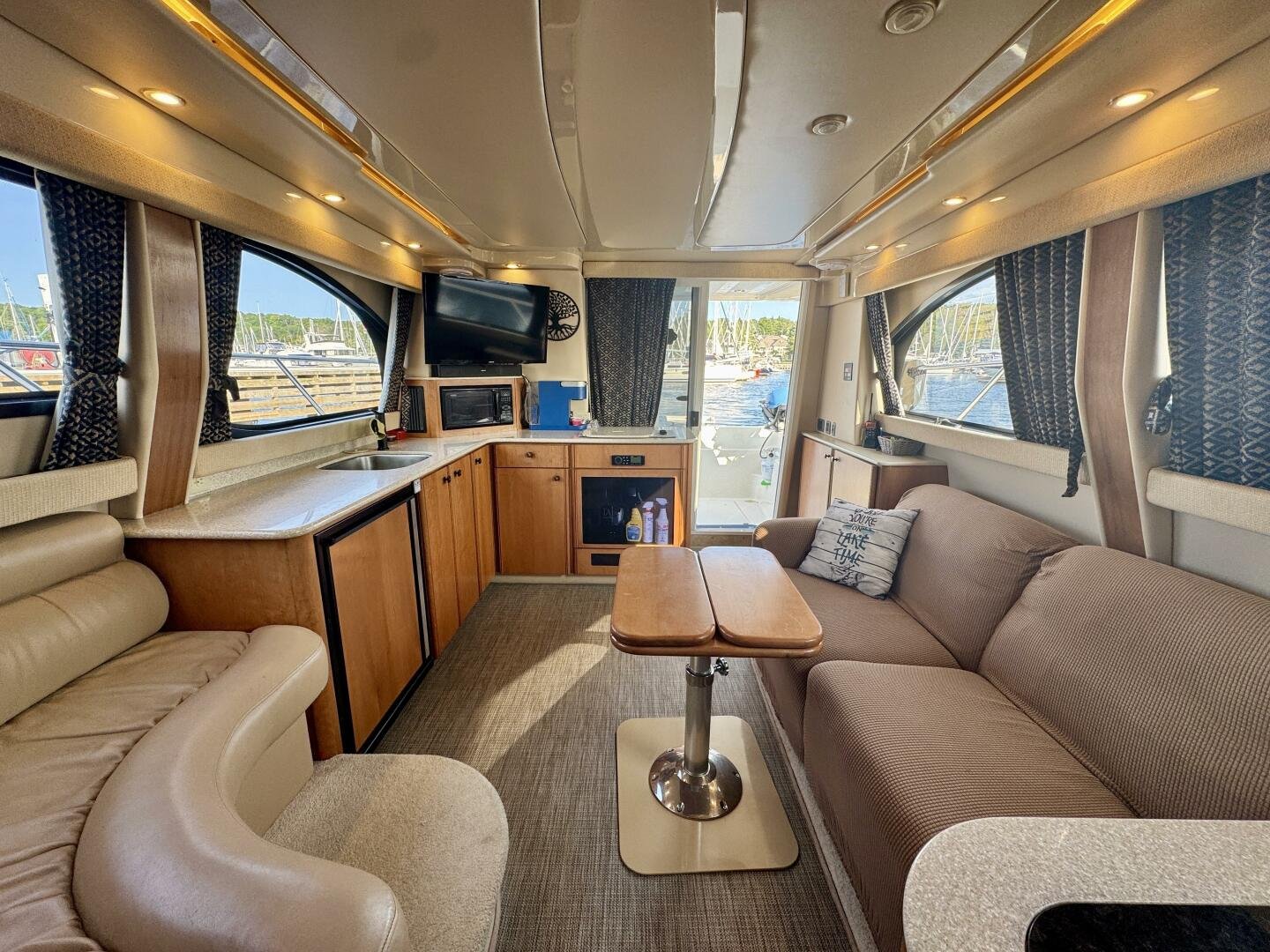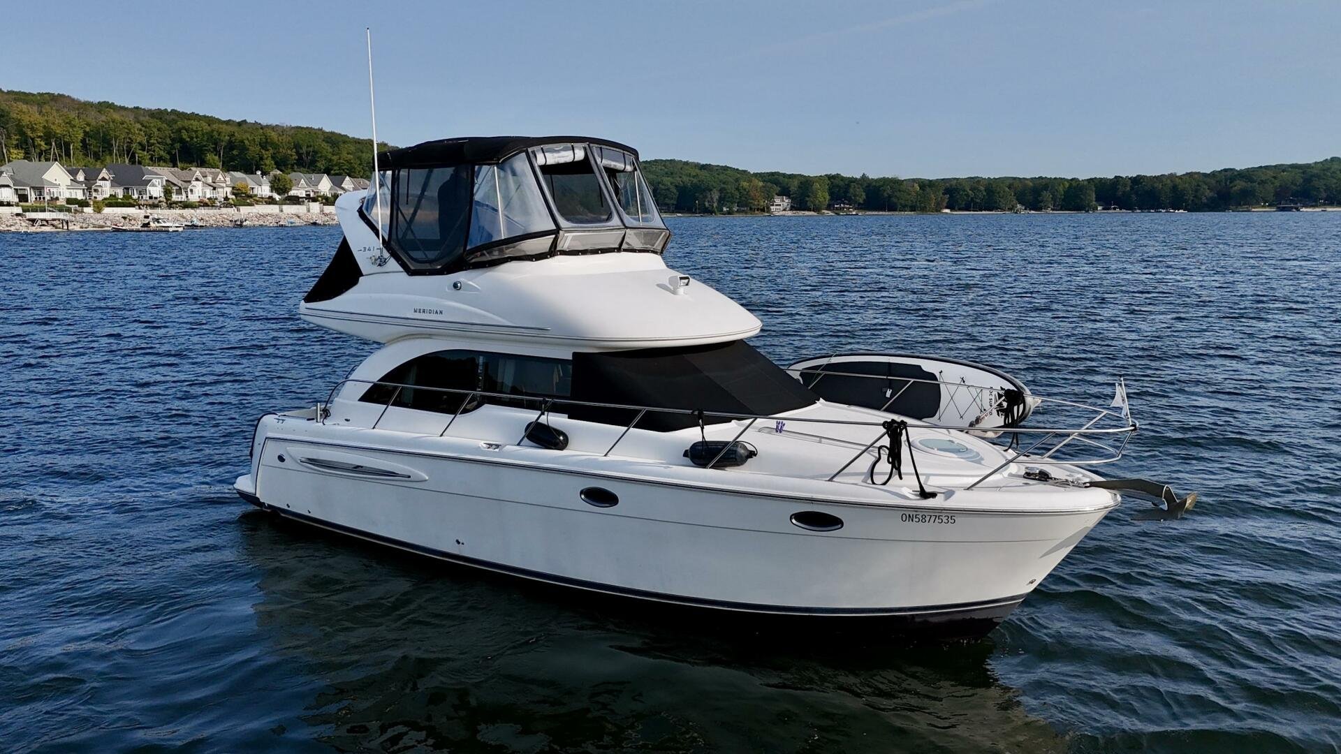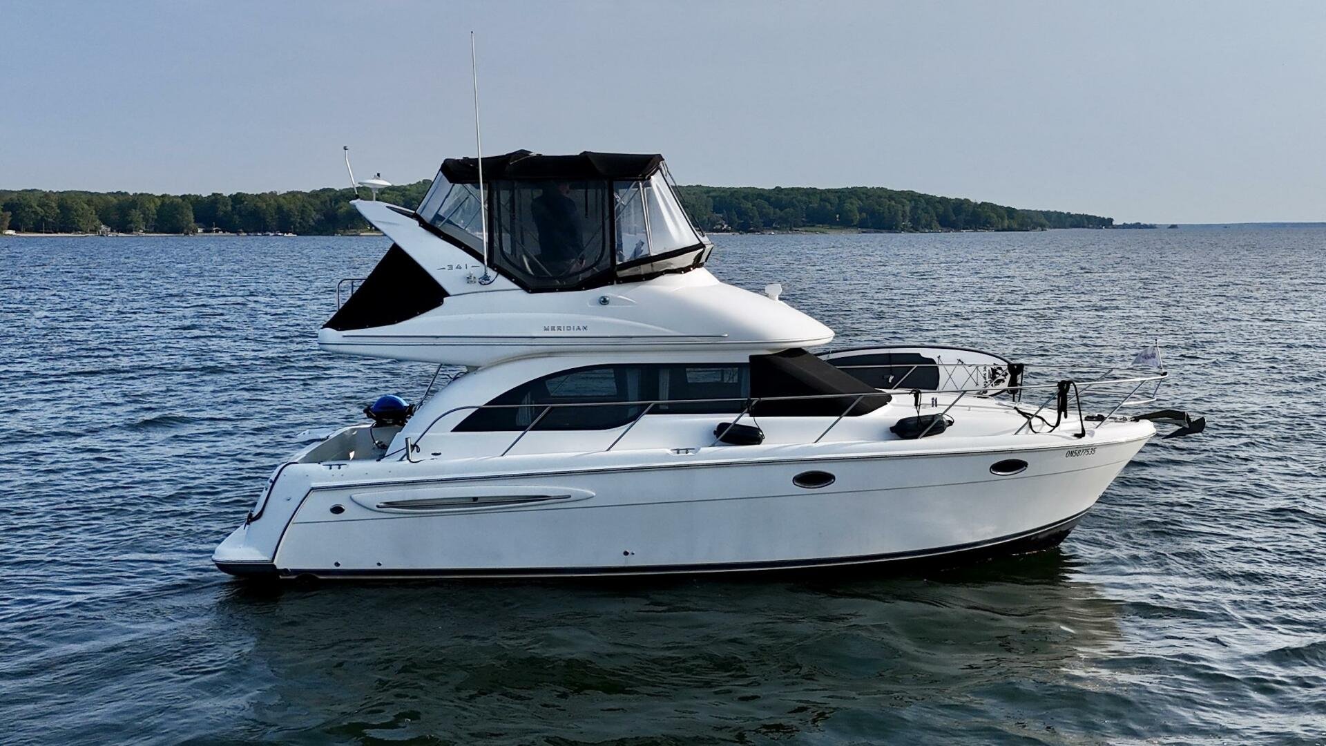Premium Meridian fit & finish in an easy-to-handle package, the 341 hits the sweet spot for new bridge owners. You get true big-boat livability—two private staterooms and an expansive, bright salon—without the intimidation at the helm. The elevated flybridge provides excellent sightlines for docking and cruising, while molded steps, wide side decks, and a sliding cockpit door make movement safe and effortless. Add Meridian’s upscale cabinetry and materials, and this 341 delivers the comfort, style, and confidence you want for weekends away or longer coastal hops.